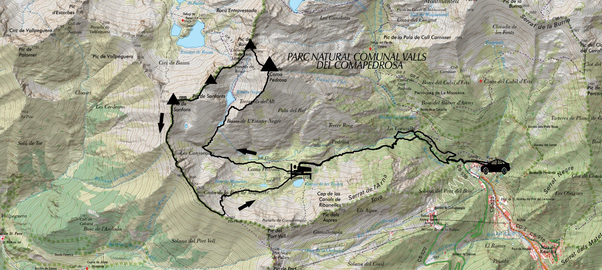 Una vez repuestos, retomamos el camino conocido para descender hasta el pueblo de Arinsal, punto final de esta magnífica excursión por las montañas más altas de Andorra.