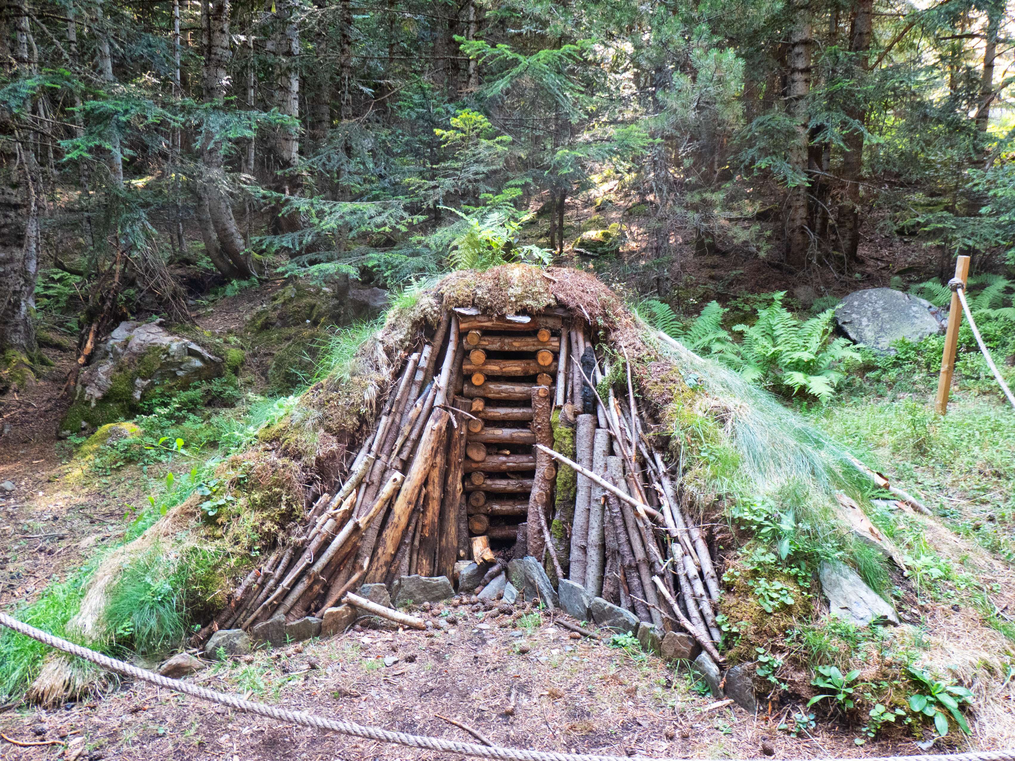 Después de cruzar el río, entramos en un tramo en el que perdemos algo de altura por un denso bosque, antes de tomar un sendero que empieza a subir con ganas por la foresta. Durante la subida, pasamos junto a un bonito ejemplo de carbonera, una antigua construcción destinada a la obtención de carbón vegetal.