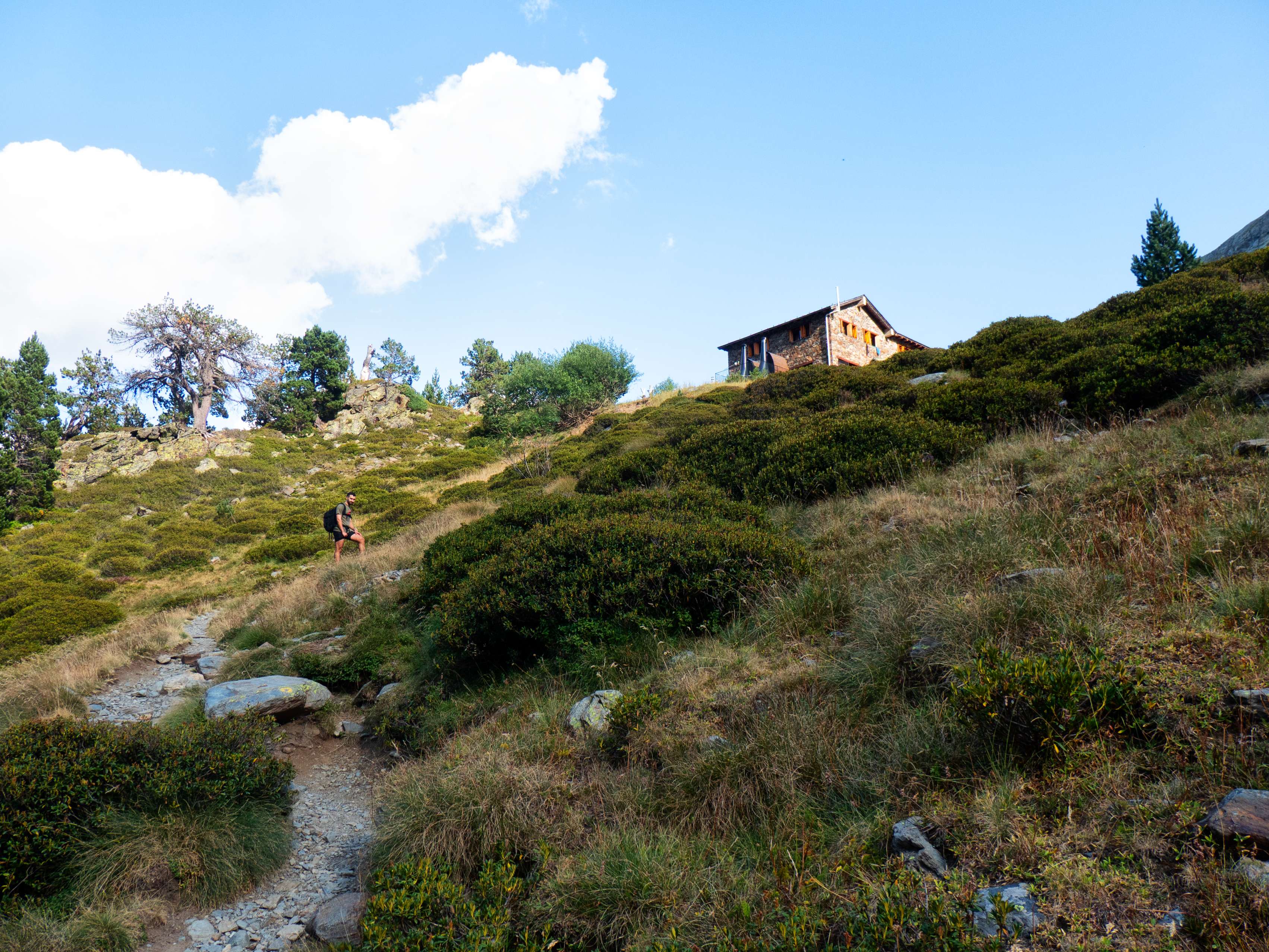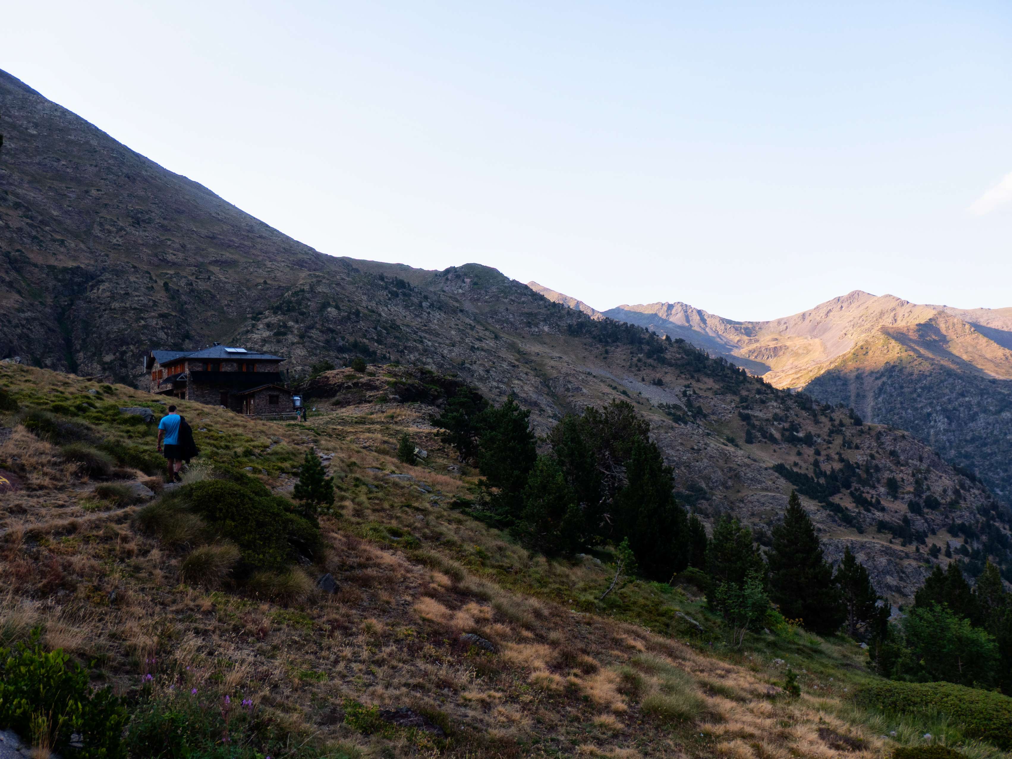 Alcanzado el collado, el Refugi de Comapedrosa aparece ya muy cercano a nuestra izquierda, erigido sobre un bonito balcón sobre el tramo inferior del valle de Comapedrosa.