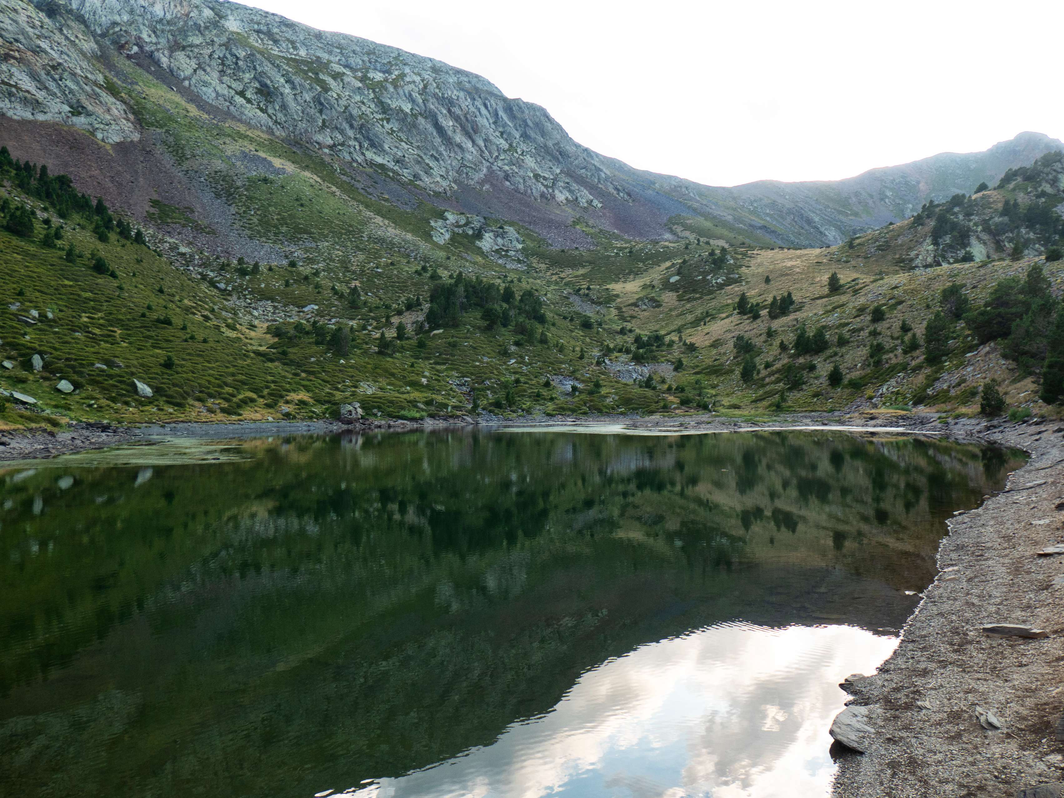 Para hacer algo de tiempo antes de la cena, nos acercamos a visitar el pequeño lago situado junto al refugio, el Estany de les Truites, con el nivel del agua bastante bajo el día de hoy. Por encima del lago divisamos el Port Vell, el collado donde mañana finalizaremos el largo cresteo que iniciaremos en el Comapedrosa y que nos llevará por varias de las cimas más importantes de Andorra.