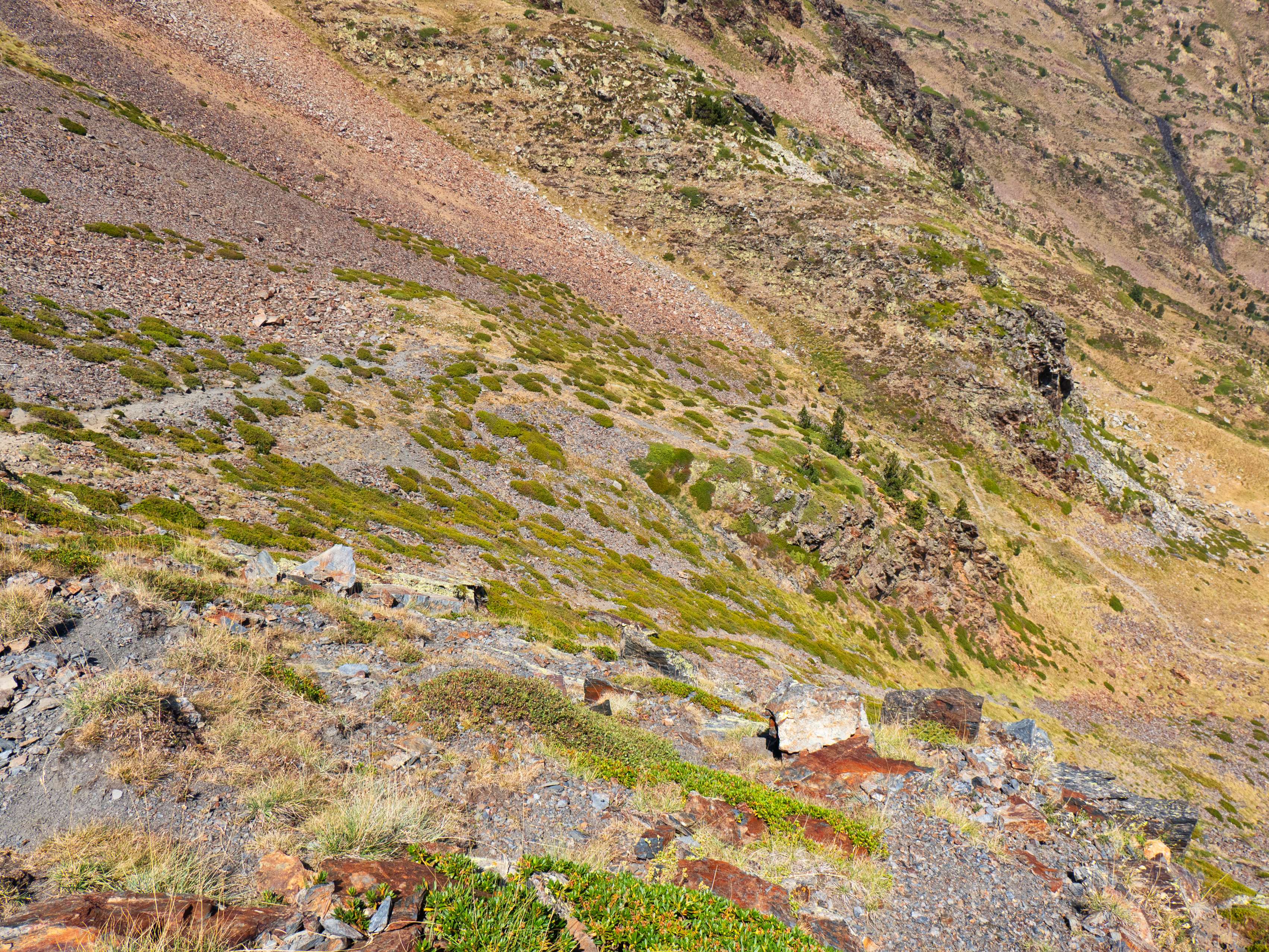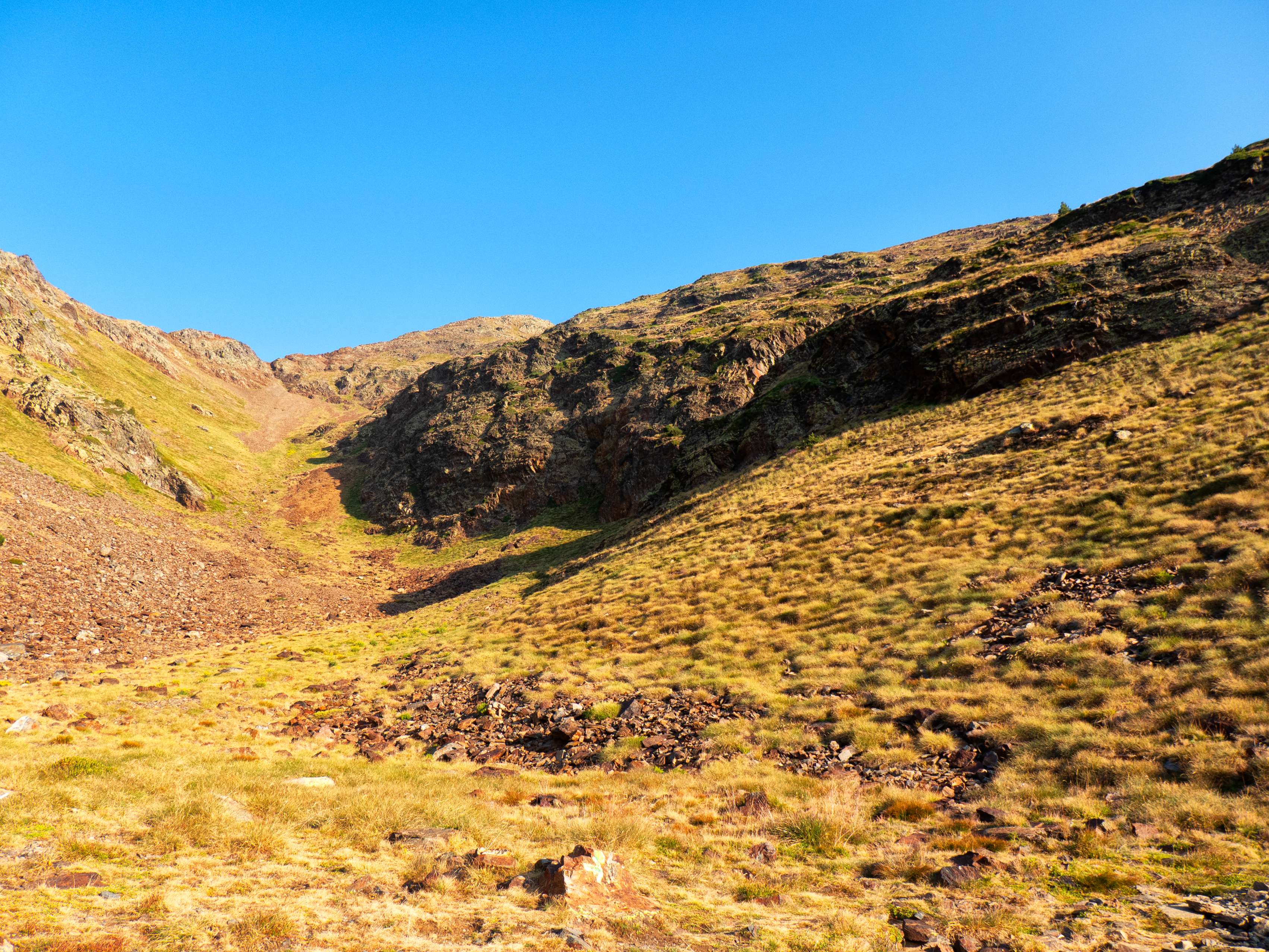 Después de rodear el promontorio por la izquierda y superar un tramo algo más angosto, el terreno se vuelve a abrir justo antes de la subida final al Collet de Comapedrosa, del que nos separan un centenar de metros de desnivel.