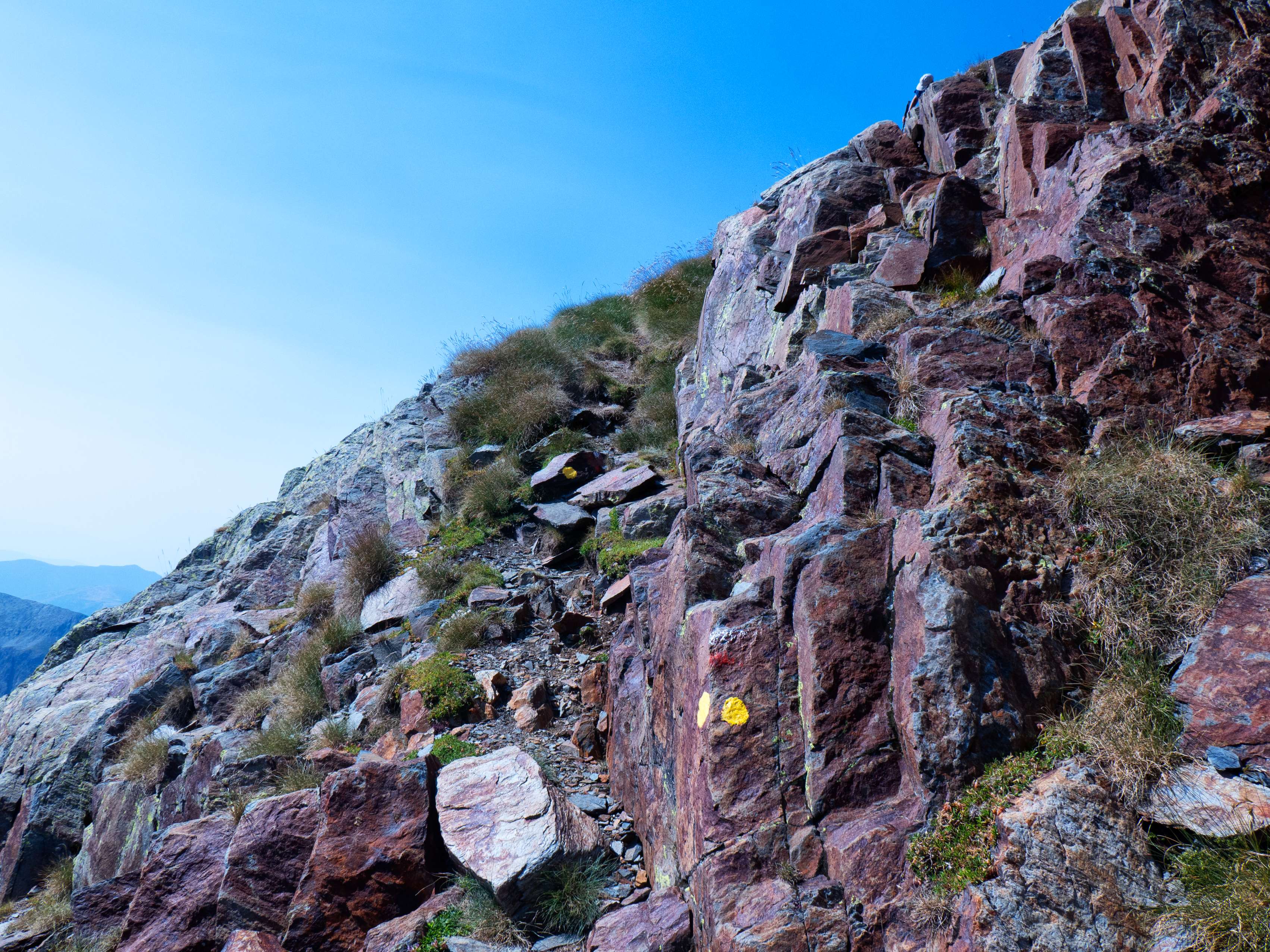 Superamos algún paso más escabroso, aunque nunca realmente difícil. Encontramos incluso marcas de pintura que confirman que el paso por aquí no es raro.
