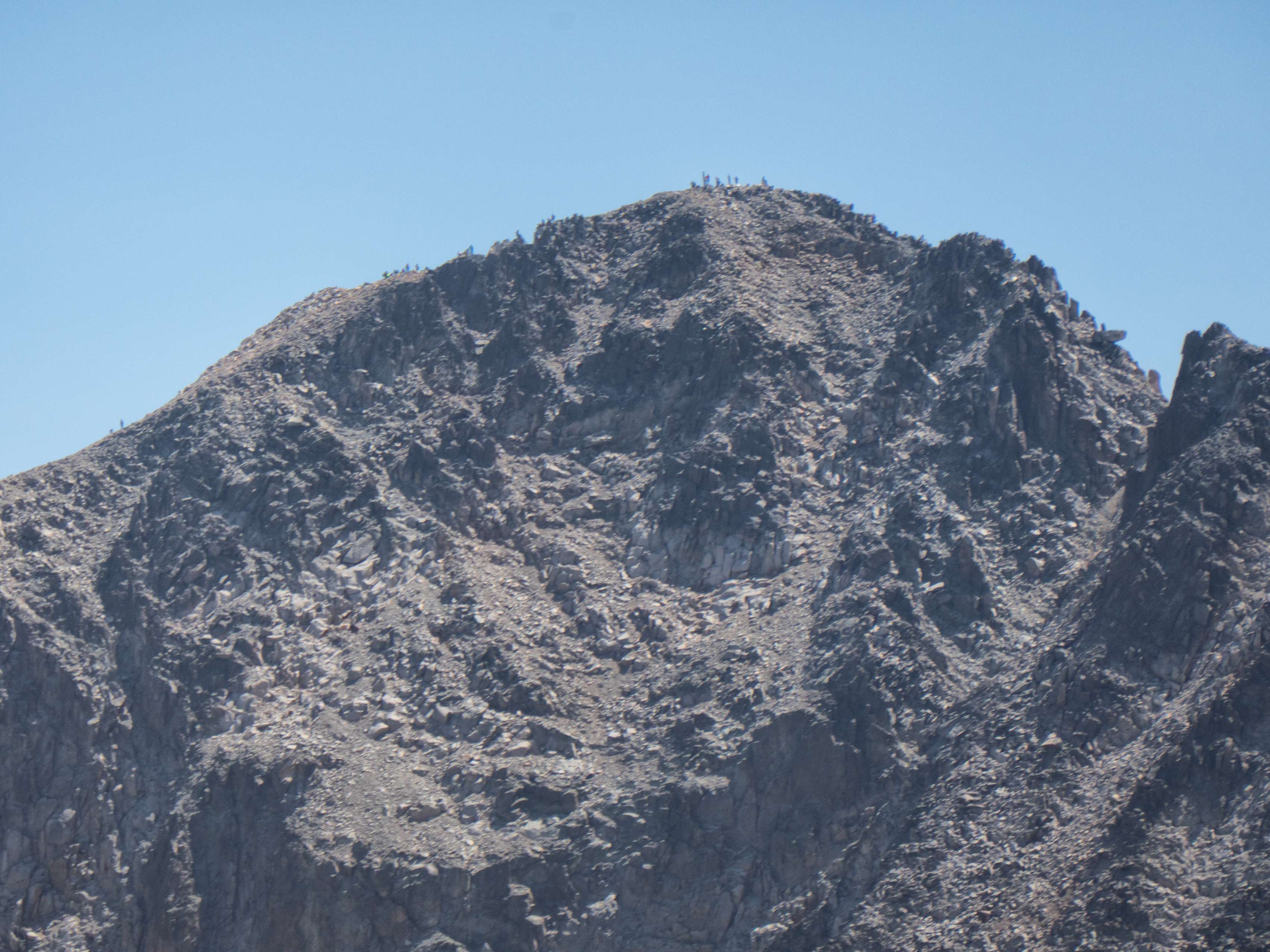 De hecho, estamos tan cerca del Aneto que distinguimos la cola de montañeros formada alrededor de la cruz para hacerse la foto. Vemos incluso a la gente superando el Paso de Mahoma, situado justo a la izquierda de la cima.