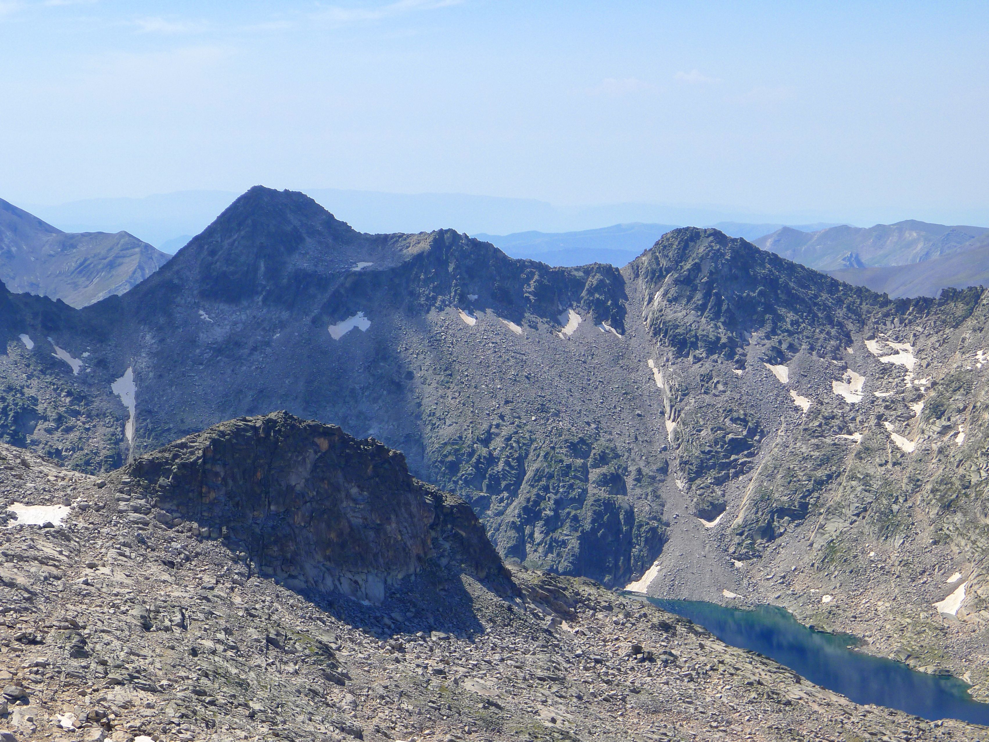 ...culminan en el Pico de la Maladeta, que queda totalmente ensombrecido por dos brutales paredones: el del Pico Abadías y, sobre todo, por el oscuro paredón del Pico Maldito, uno de los grandes abismos del Pirineo.