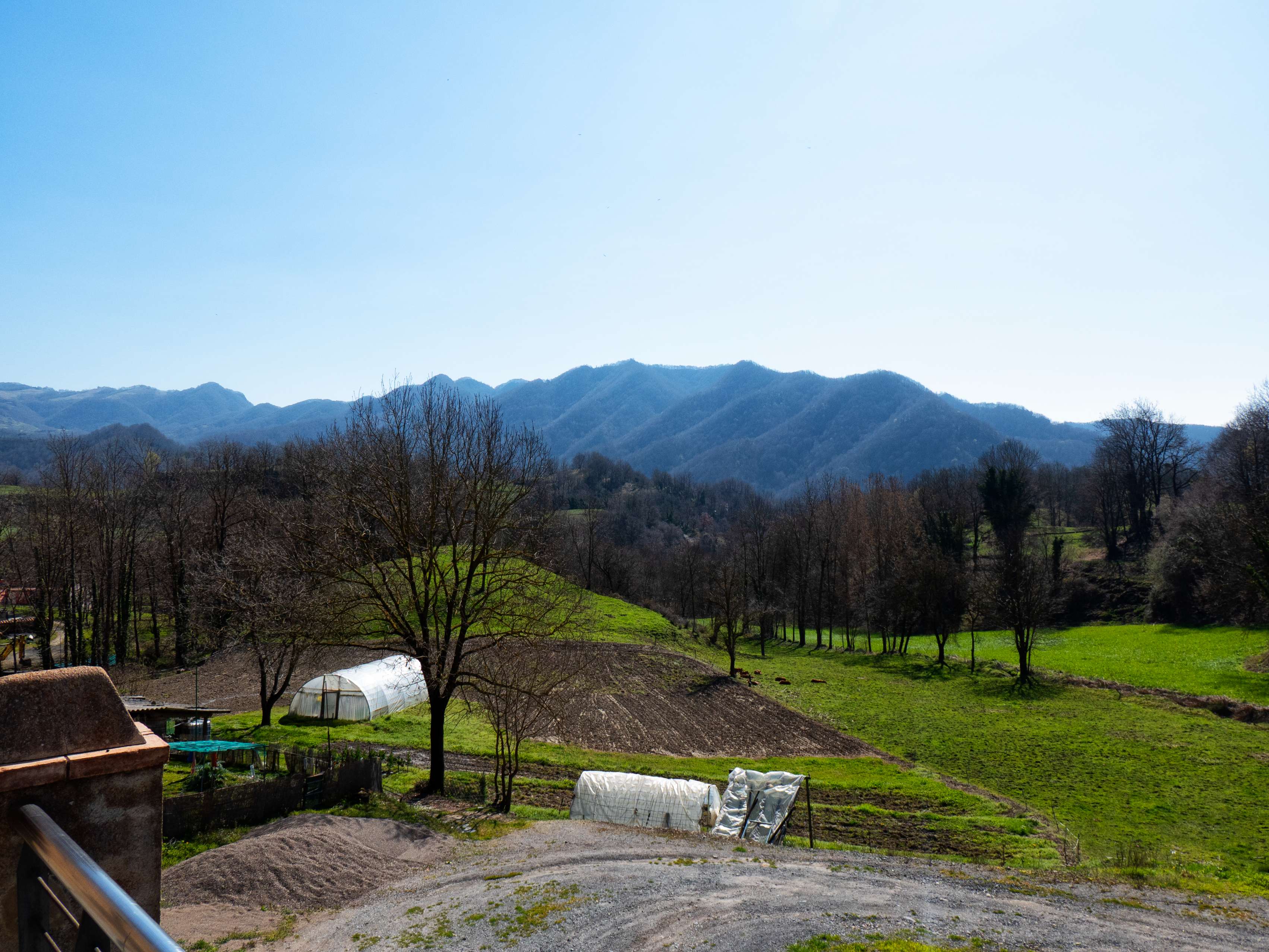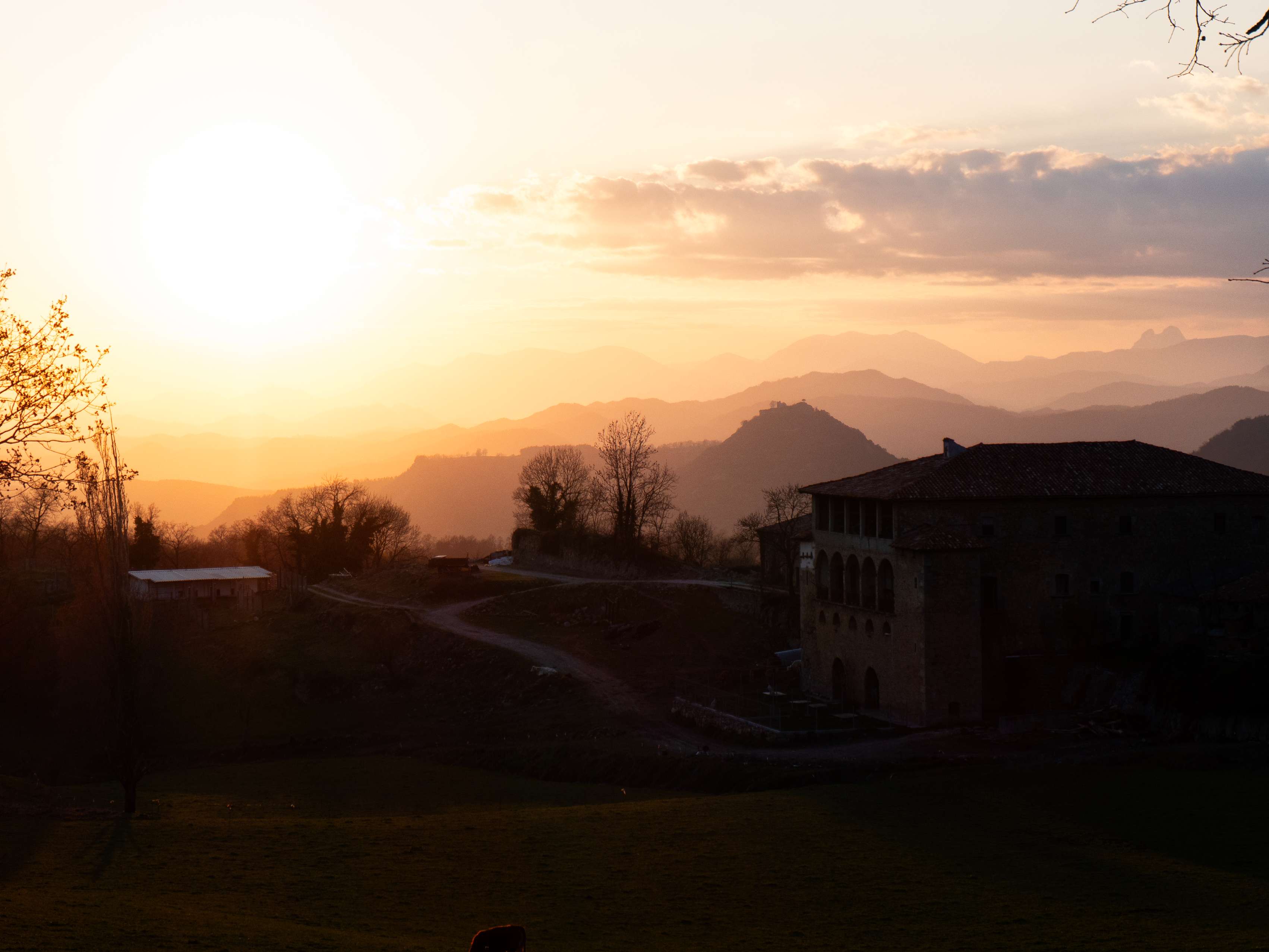 Como despedida, queda esta imagen que resume la amplitud de vistas desde este rincón de Osona: alineados tras la masía del Coll, el Castell de Besora, el Puig Cornador y la lejana sierra de Ensija, con el Pedraforca asomándose a la derecha. Simplemente impresionante.