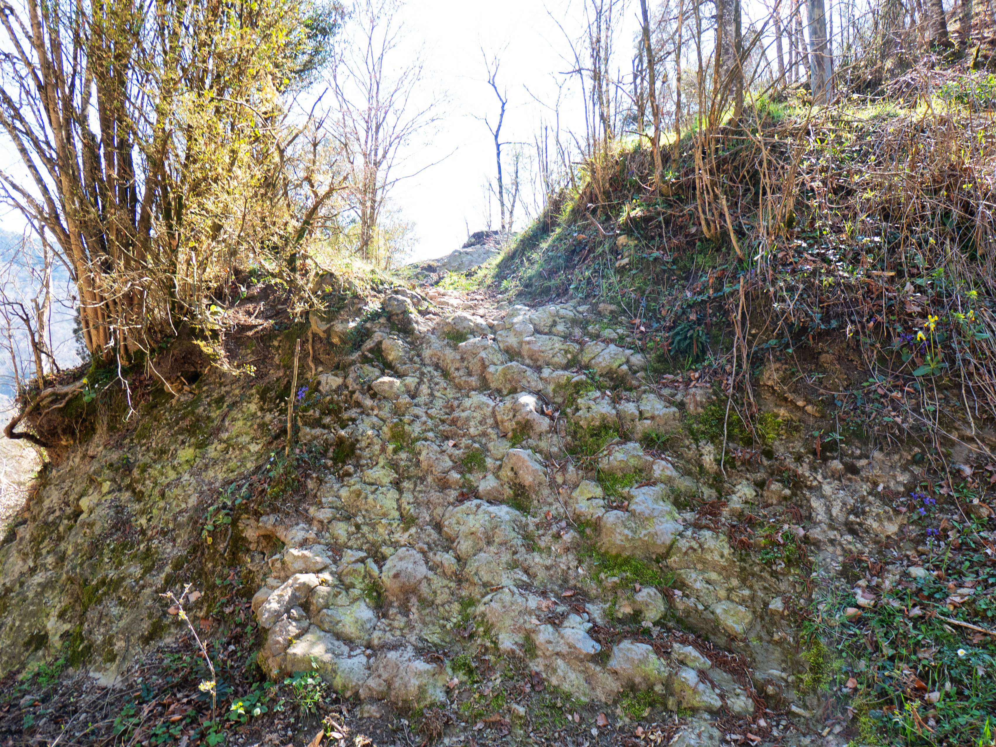 Muy cerca de la cima, un tramo empedrado nos permite acortar la última curva de la pista y alcanzar de forma más directa...