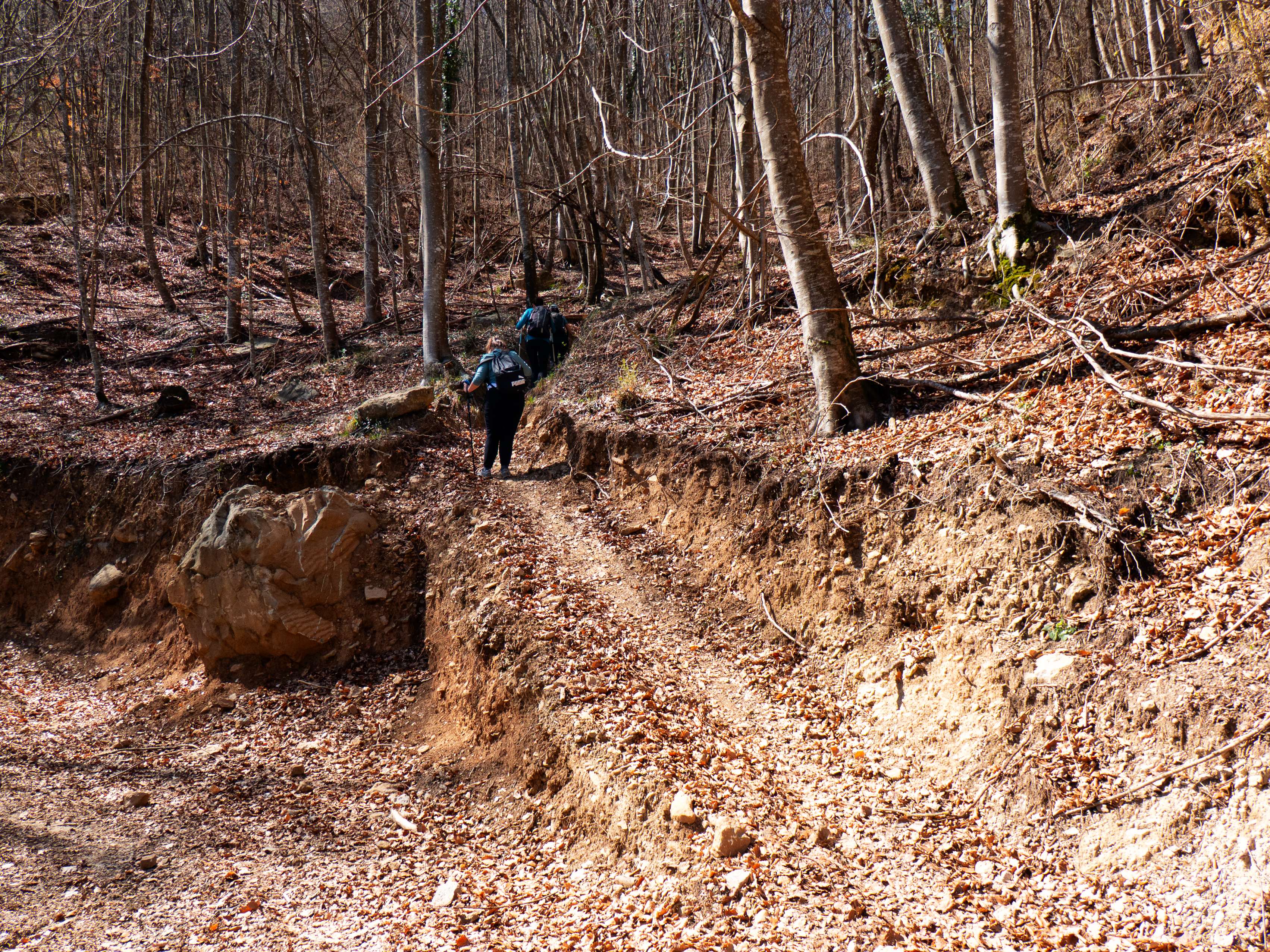 ...su continuación, que vuelve a remontar en fuerte pendiente el bosque.