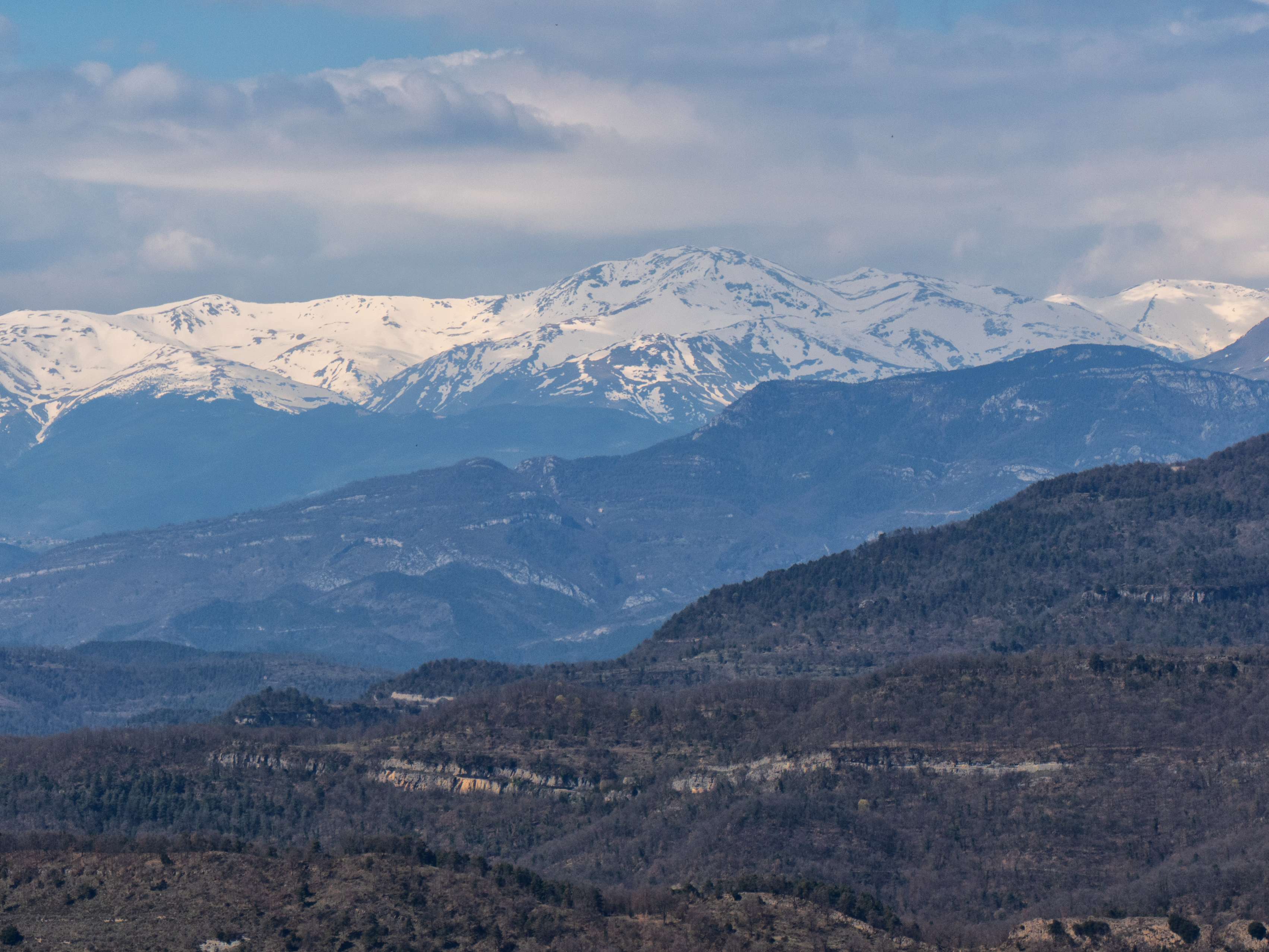 Bellmunt, con el Pedraforca y Ensija de fondo, desde Cabrera
