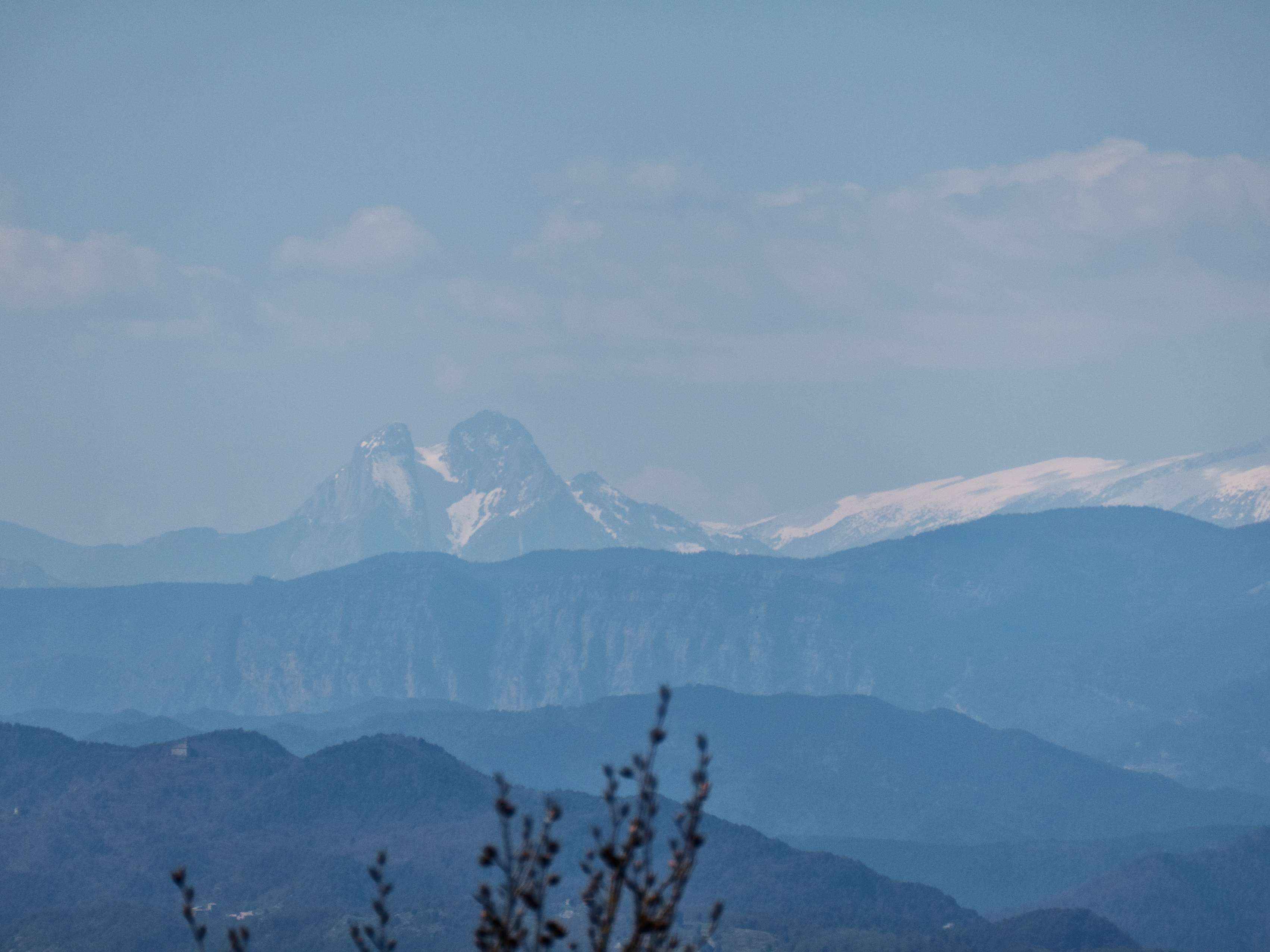 ...el Montseny, siempre imponente, con sus dos núcleos principales, el del Turó de l'Home y les Agudes, y el del Matagalls, elevándose más de un millar de metros sobre los pueblos de Osona.
