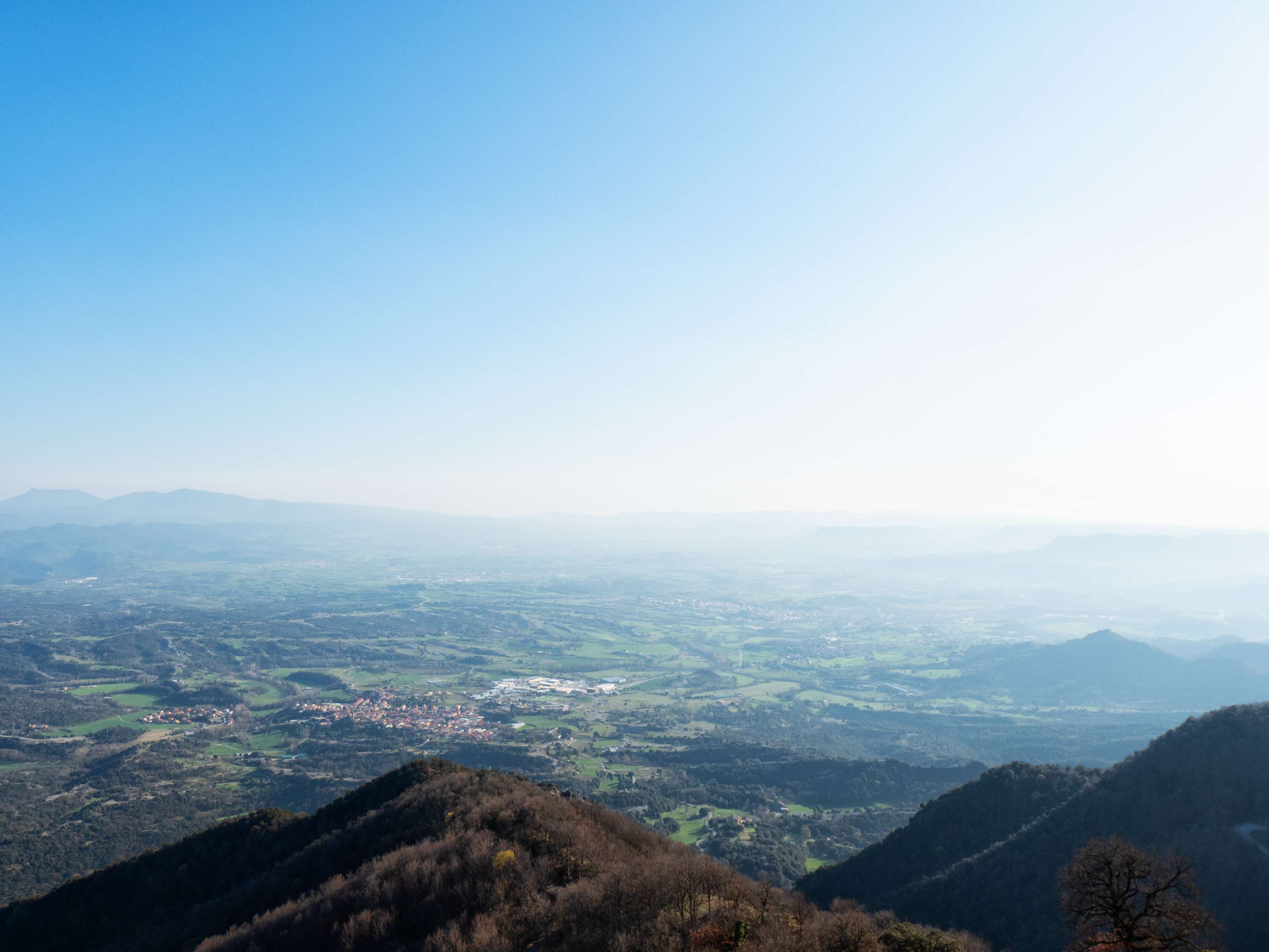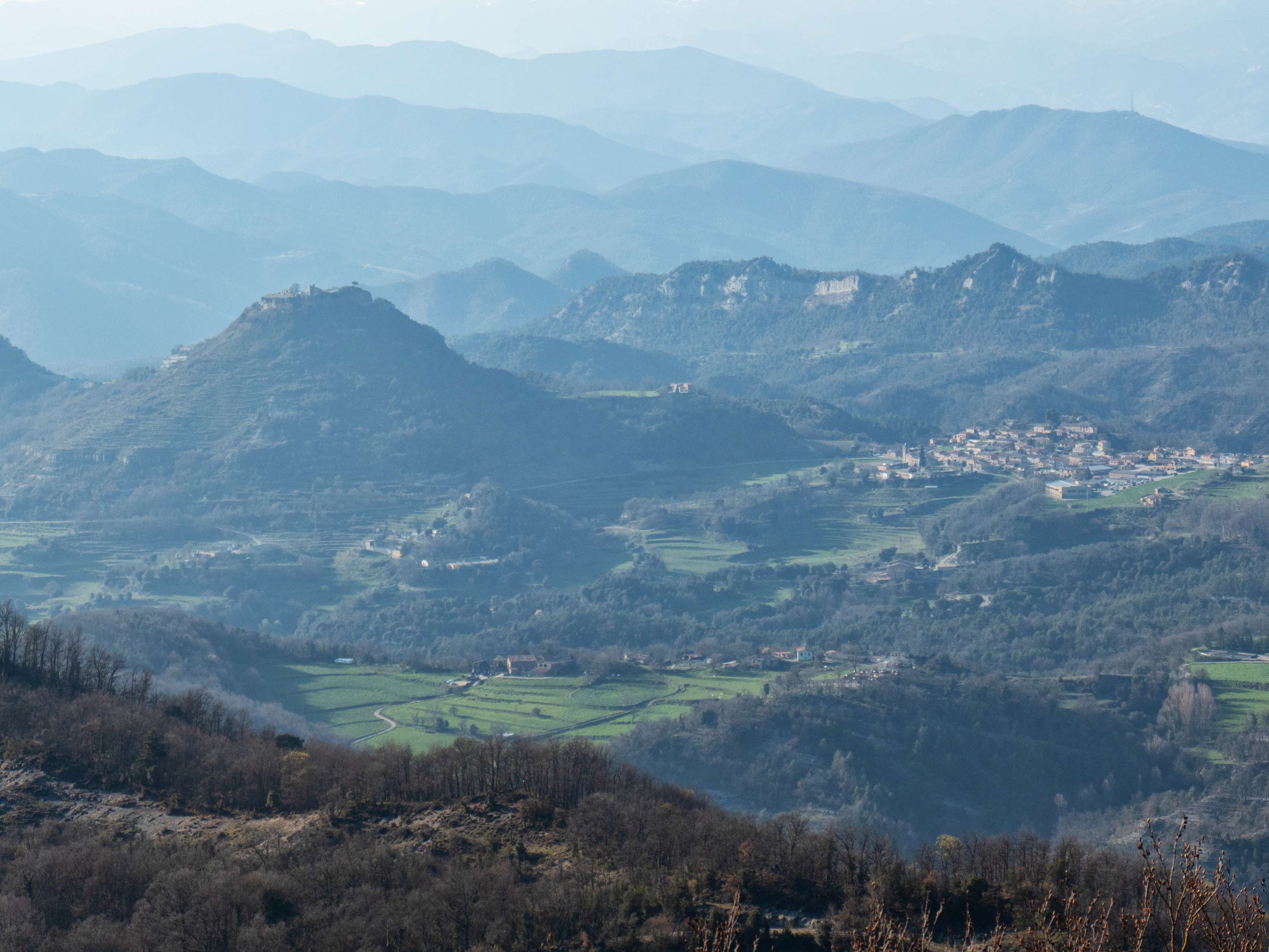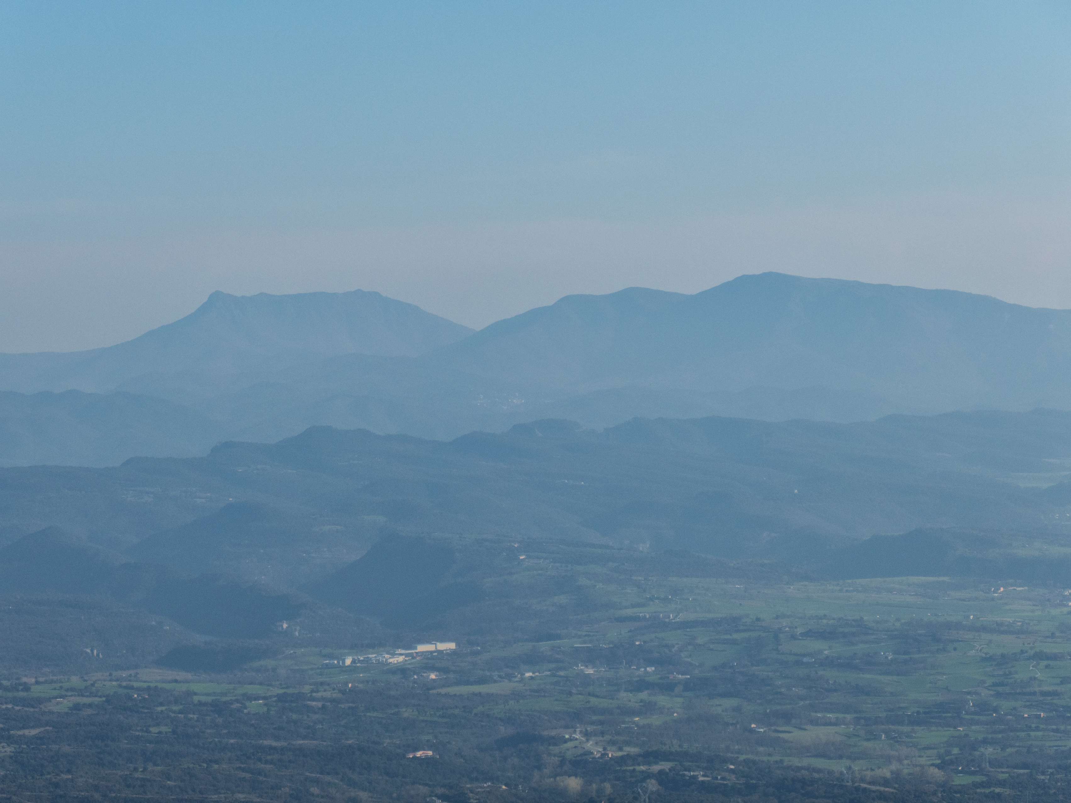 Al sur, el protagonismo se lo lleva la hoy aparentemente infinita Plana de Vic, desdibujada por la turbidez de la atmosfera. Apenas distinguimos los confines de esta depresión interior, salvo por una notable excepción, pues en el vértice suroriental de la llanura emerge...