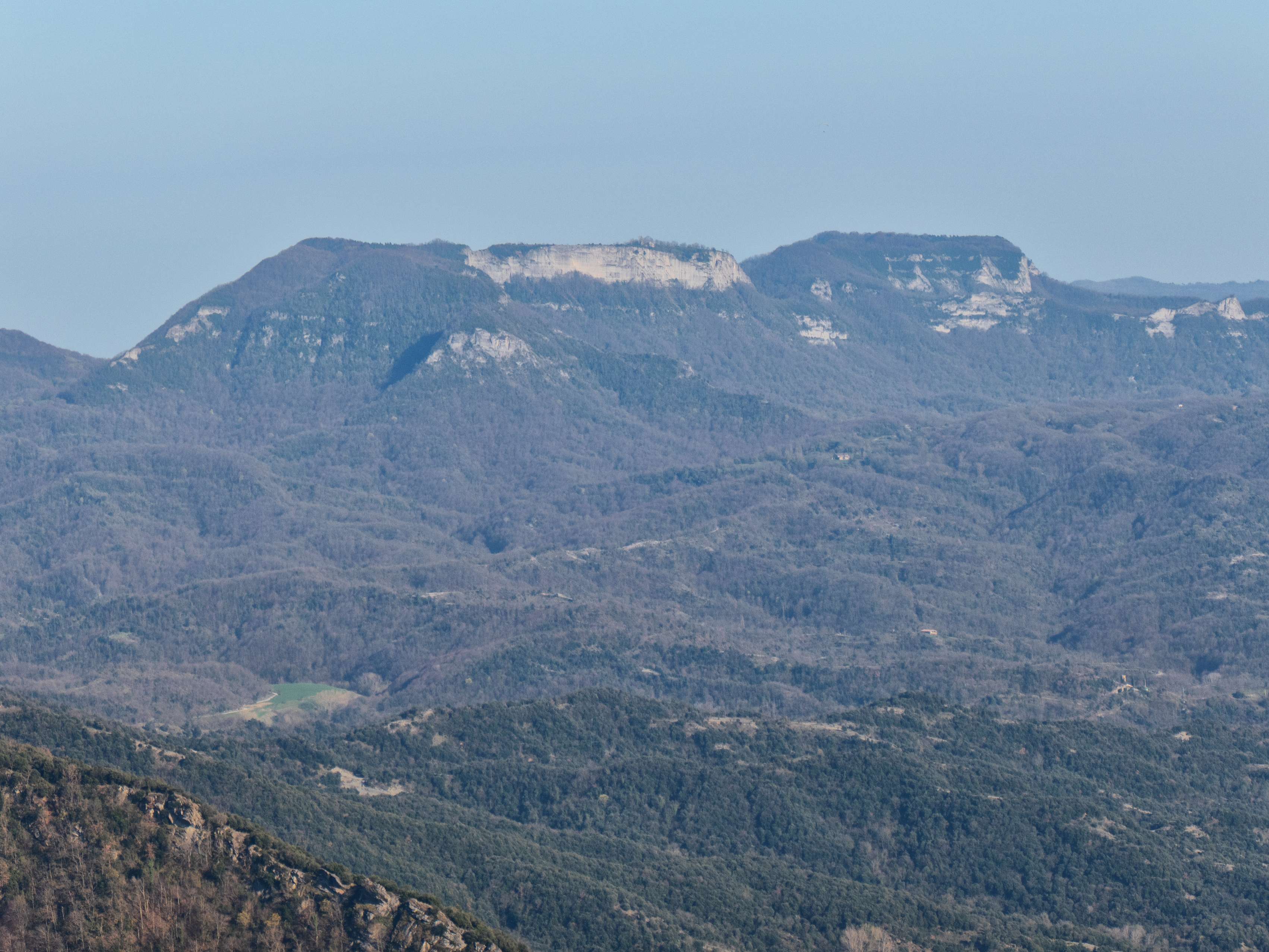 La Cordillera Transversal prosigue hacia el sur desde el Puigsacalm para adentrarse en el Collsacabra, donde destaca un cordal especialmente llamativo...