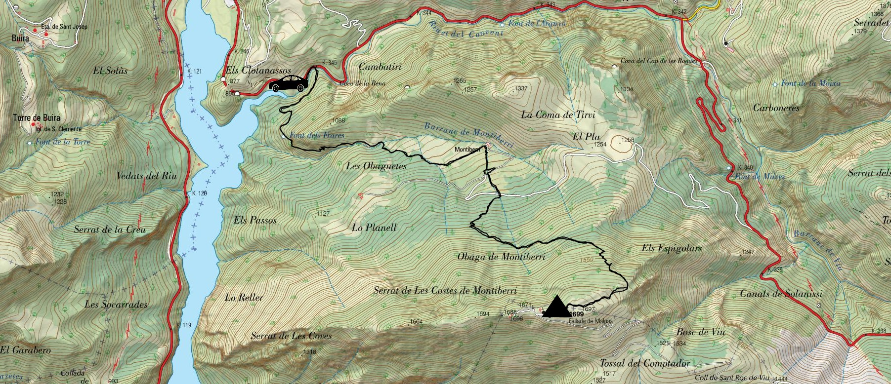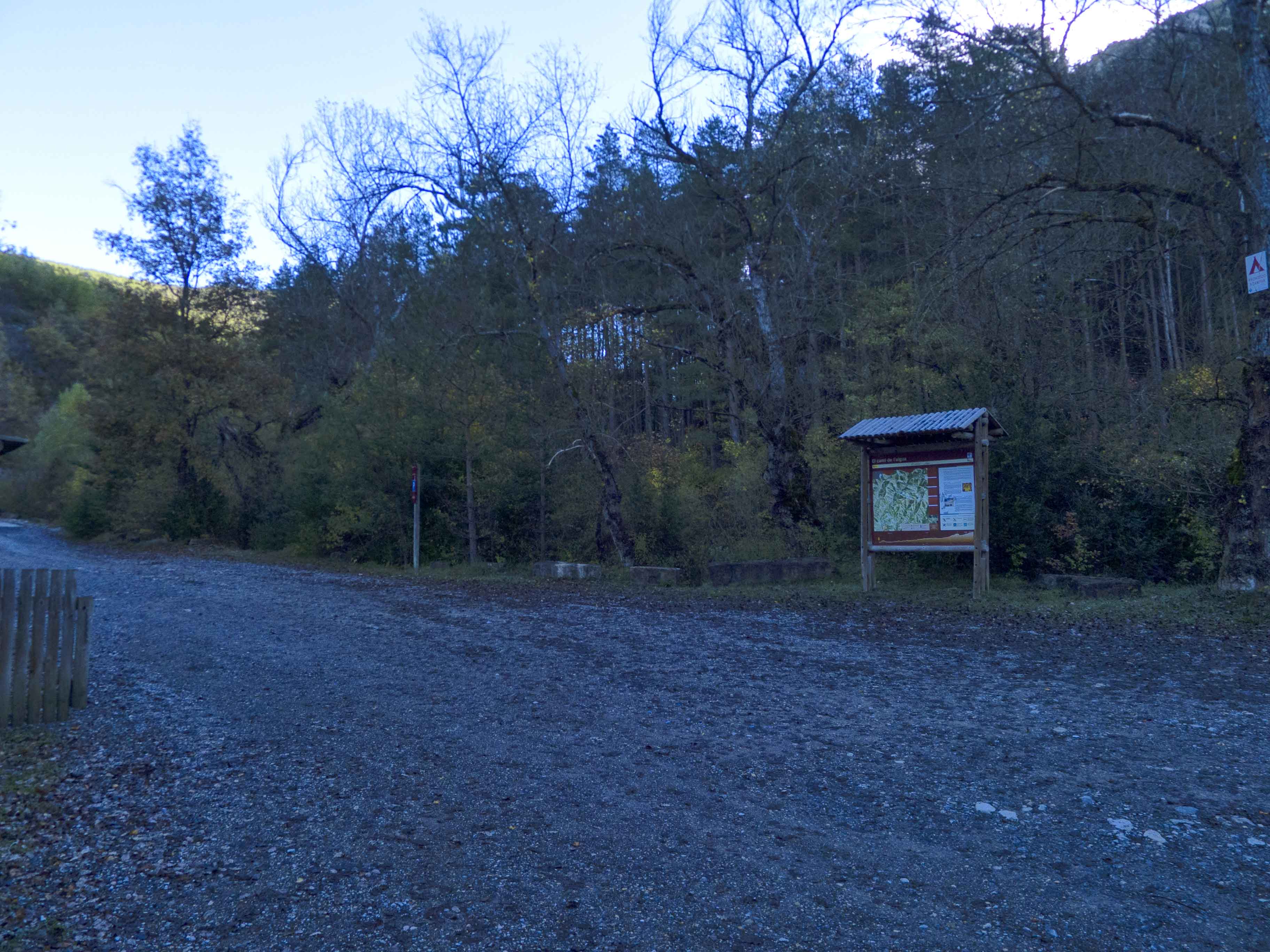 El punto de inicio es la área recreativa de la Font de la Mena, en la carretera de Pont de Suert a la Pobla de Segur. Hay bastante sitio para aparcar. Calcula la ruta desde cualquier punto de inicio pulsando este enlace de Google Maps.