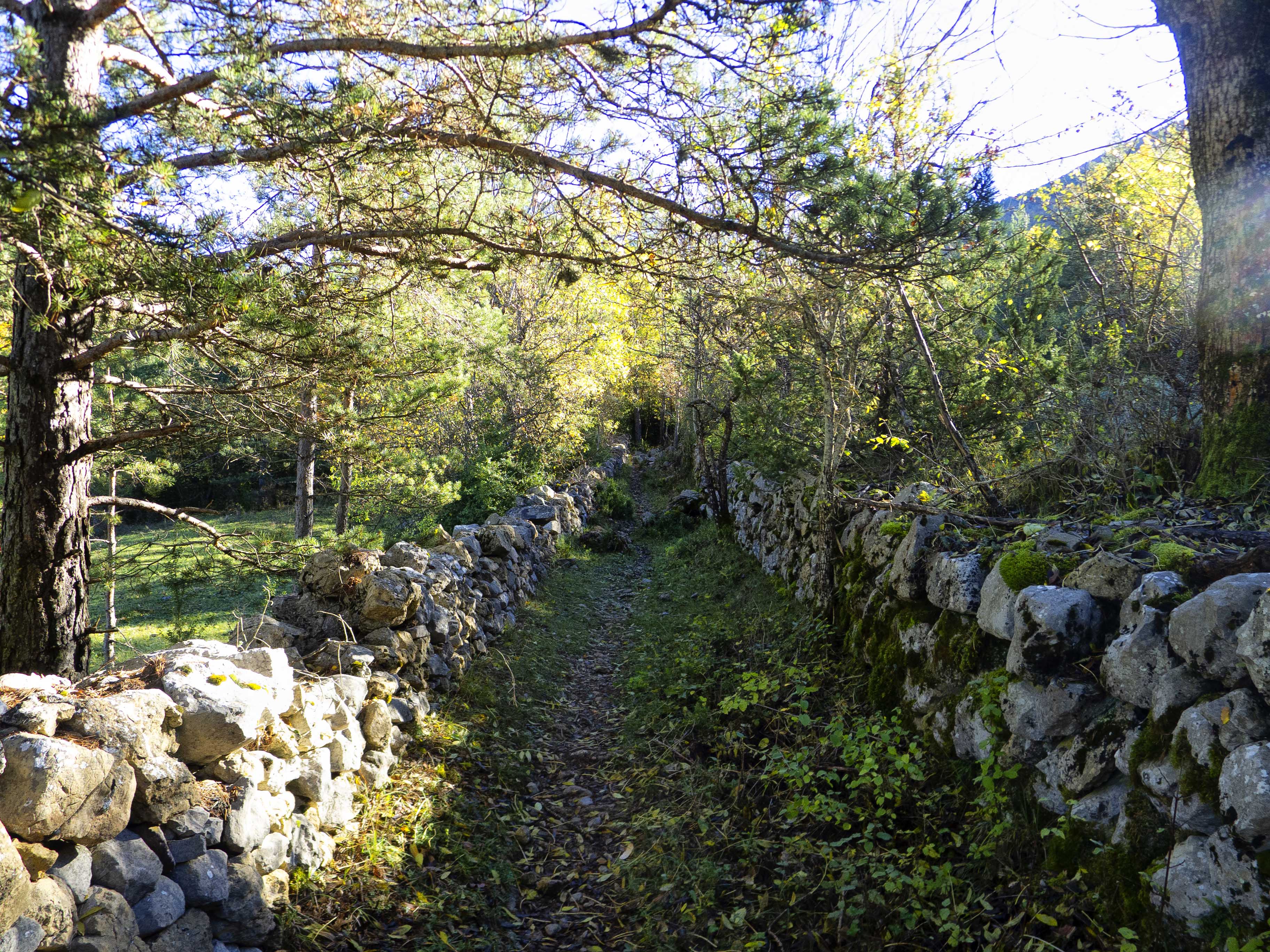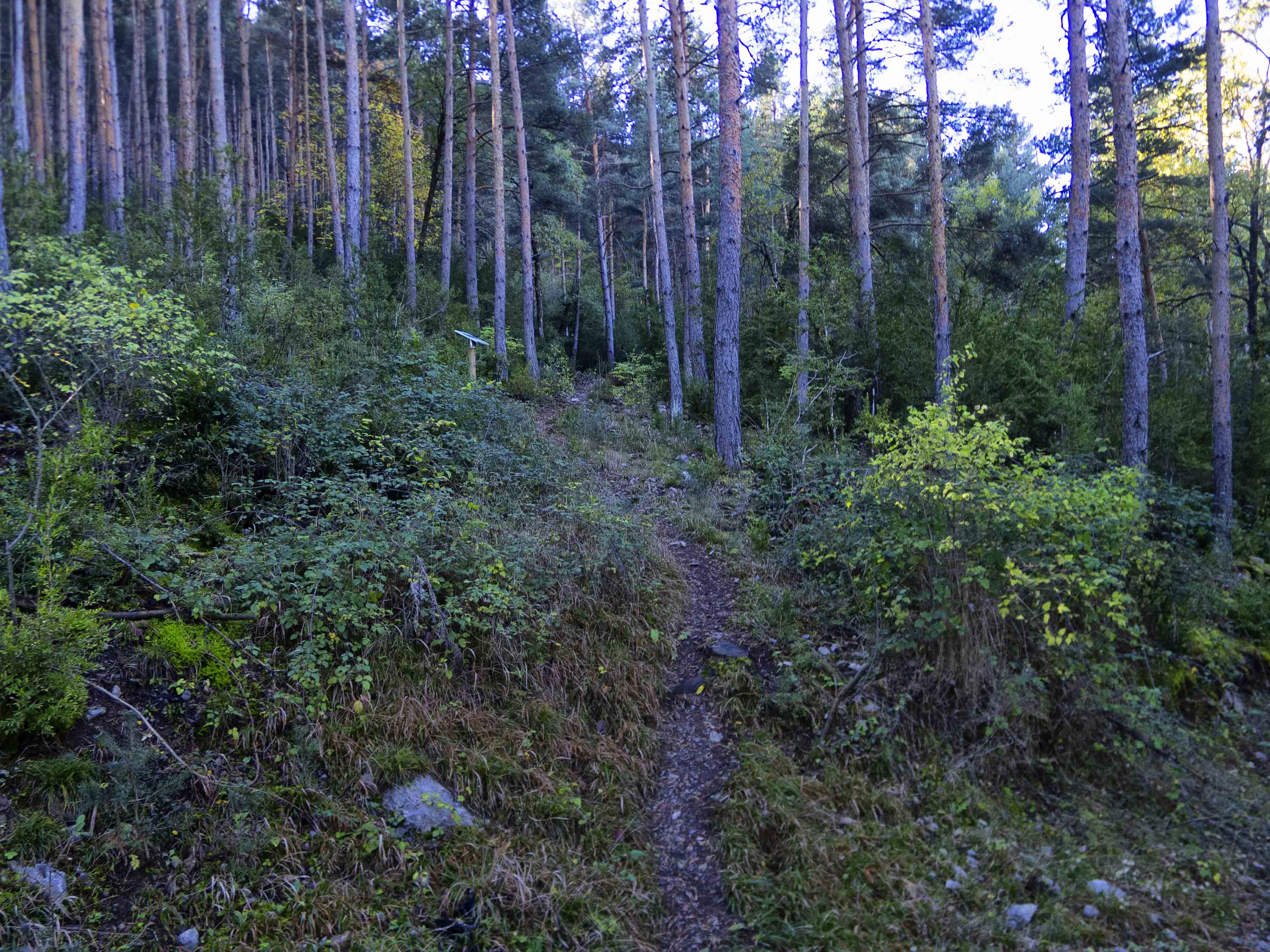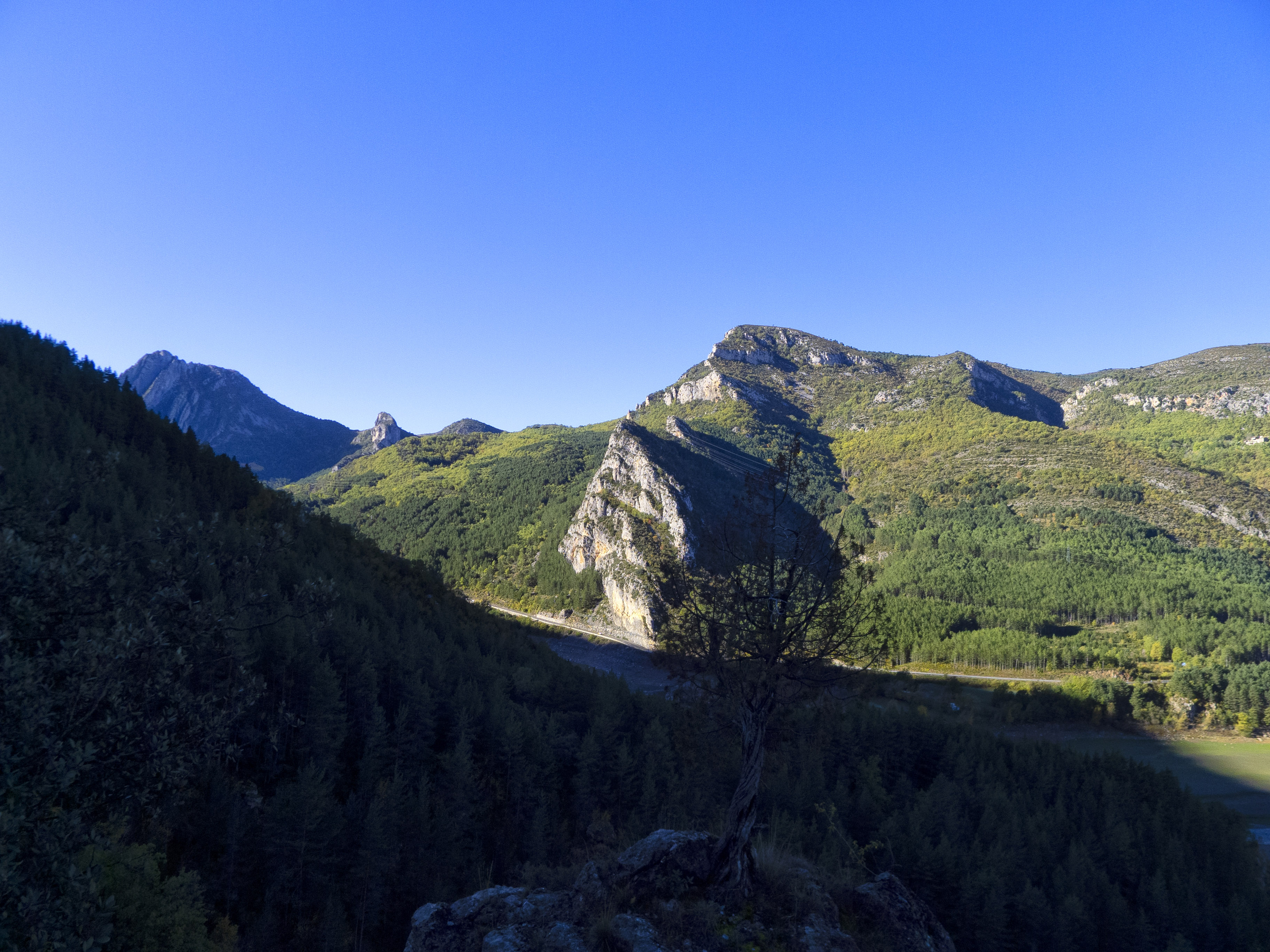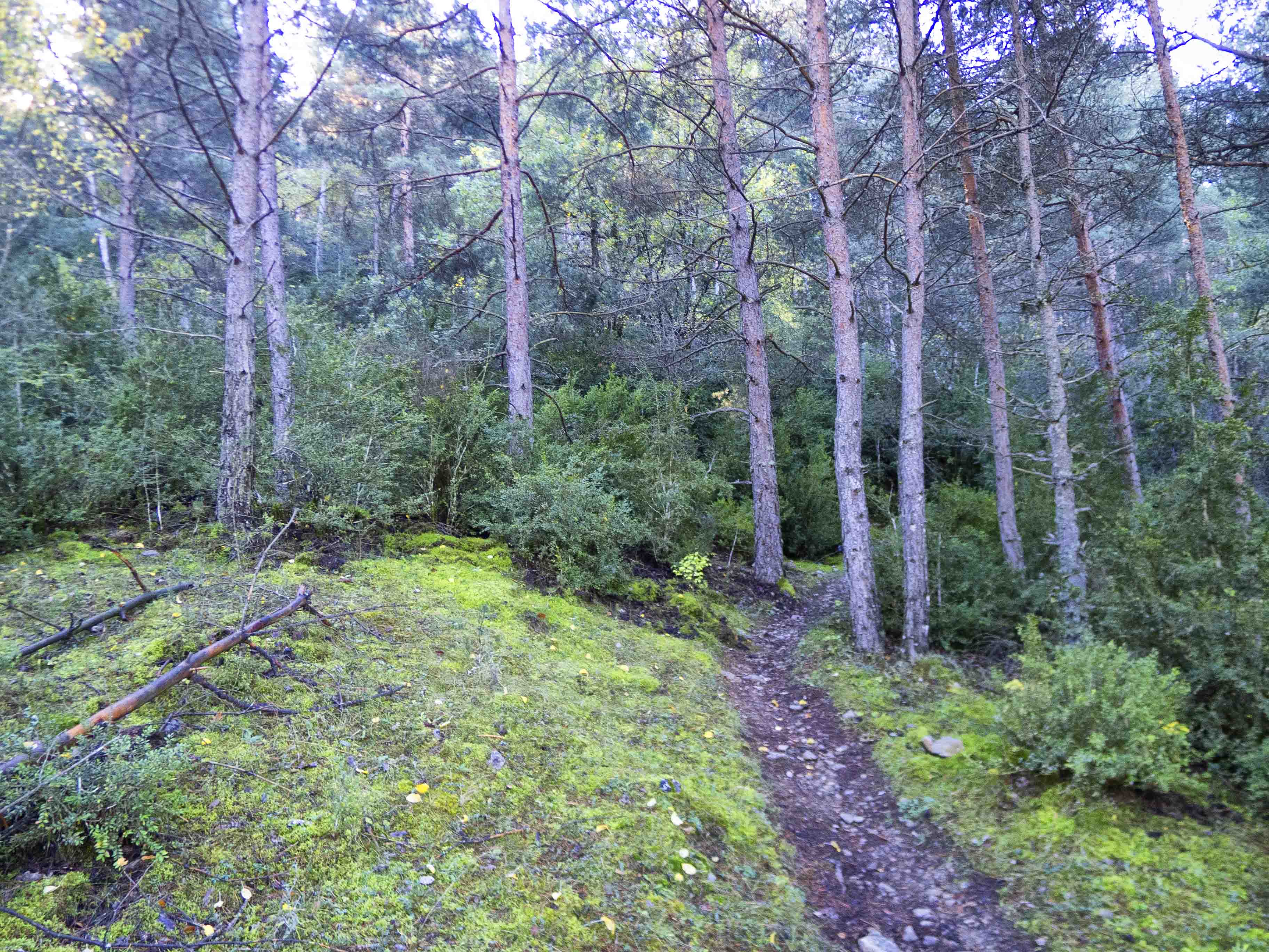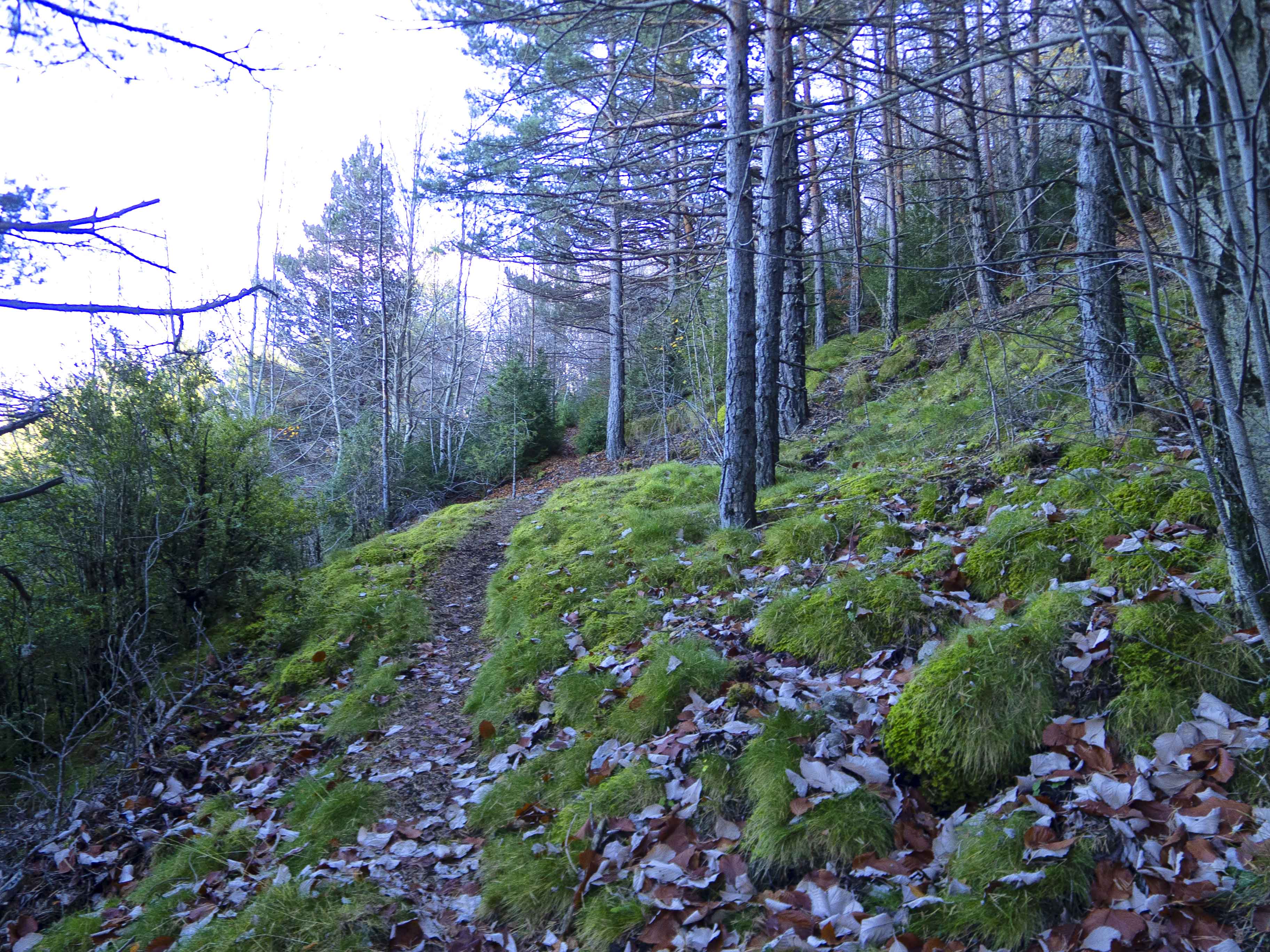 Seguiremos ahora el antiguo camino que iba de Pont de Suert a Montiberri, cuando este poblado aún estaba habitado. Vamos rodeando la Roca de la Savina por el oeste mientras vemos como al otro lado de la Noguera Ribagorçana el Sol ya toca de pleno.