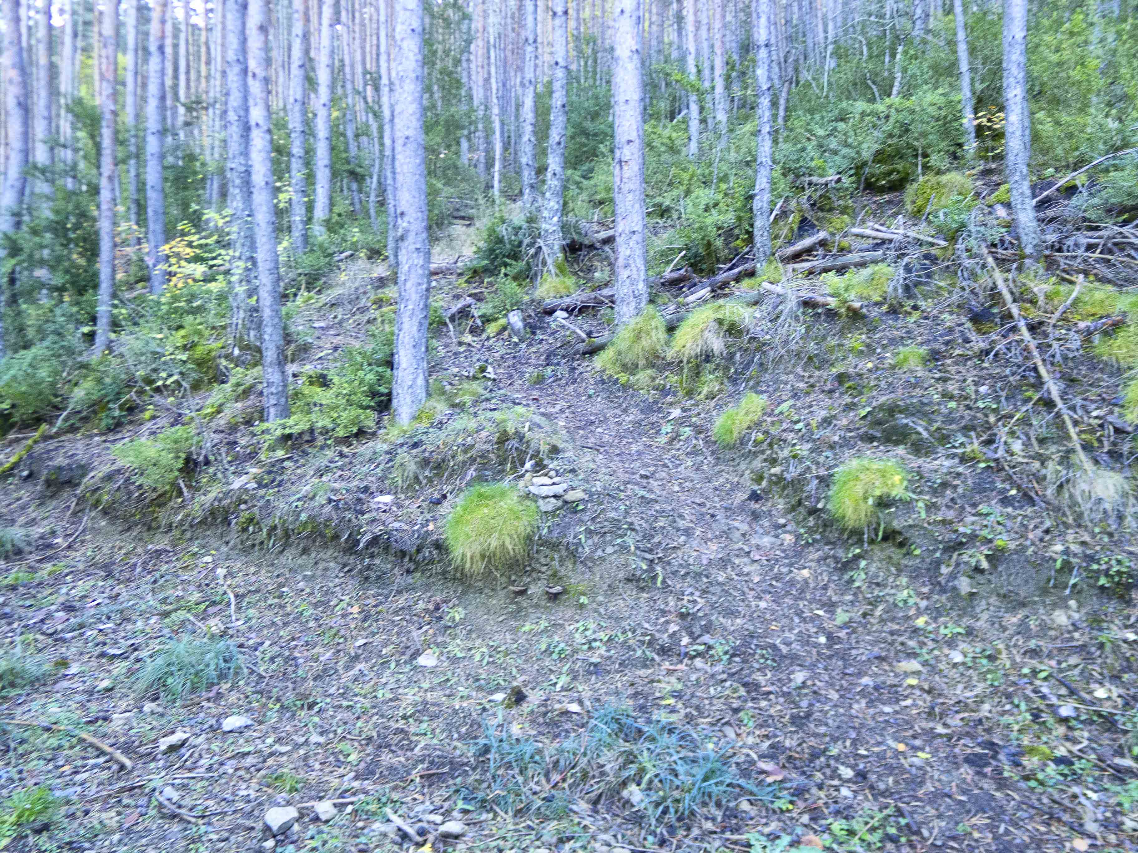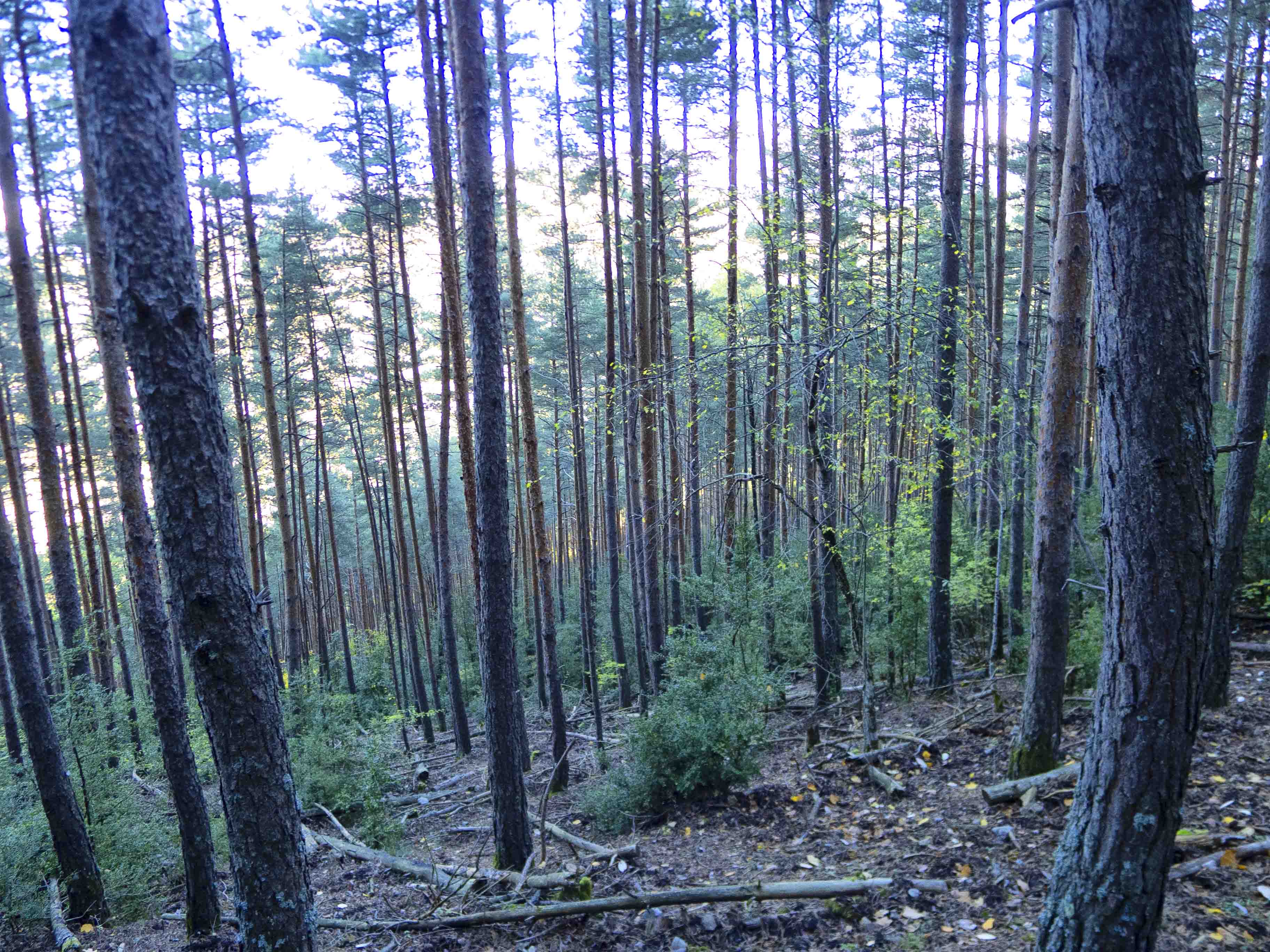 En un primer momento, el bosque está formado mayoritariamente por pinos, entre los que aparece algún abeto perdido. Como se puede observar, el bosque está muy bien cuidado.