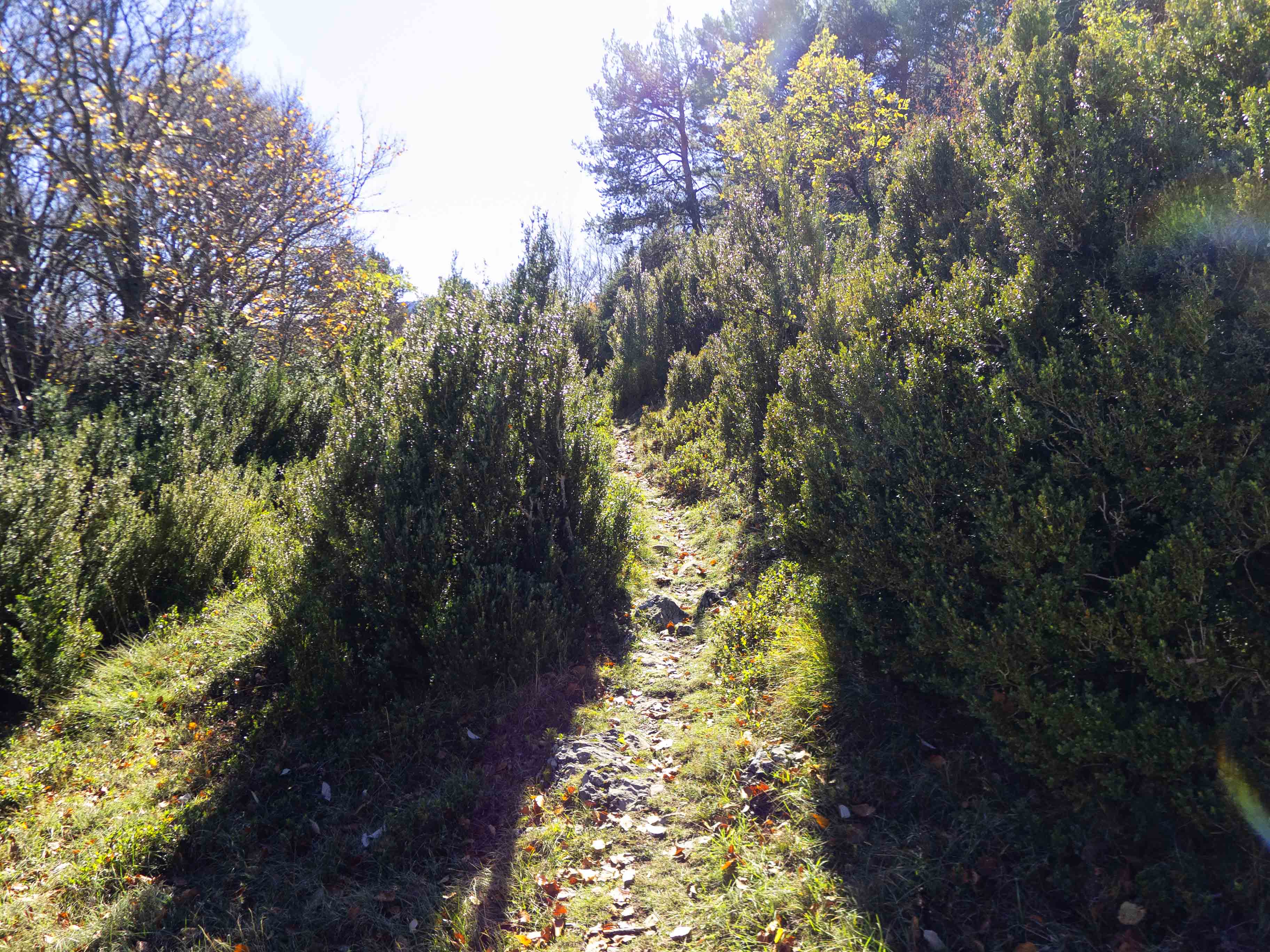 En el mismo momento que divisamos la antena del Cap de la Faiada encontramos esta bellísima haya que se resiste a perder sus últimas hojas y forma un pequeño rincón dorado que destaca sobremanera entre este matorral tan propio del Prepirineo de Lleida.