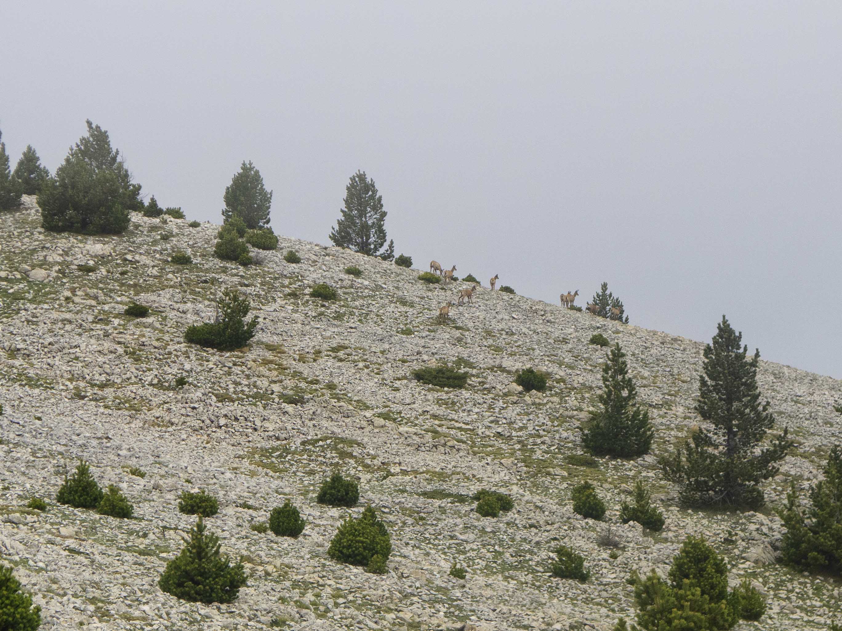 Manadas de sarrios corretean por las desoladas cumbres de la sierra, mucho más cómodos en este terreno kárstico que nosotros.