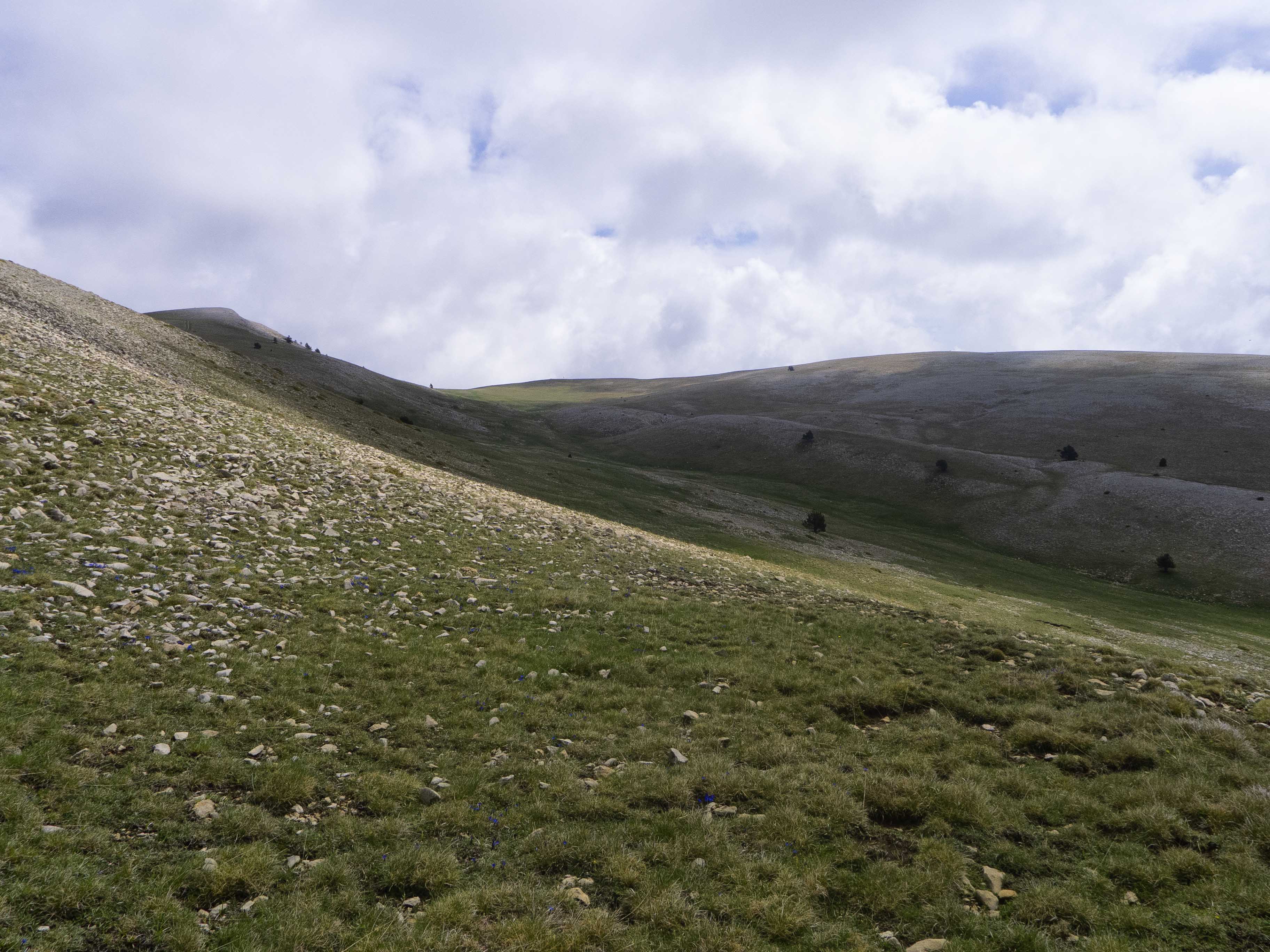 Empezamos el ascenso por la loma este de la Tossa Pelada.