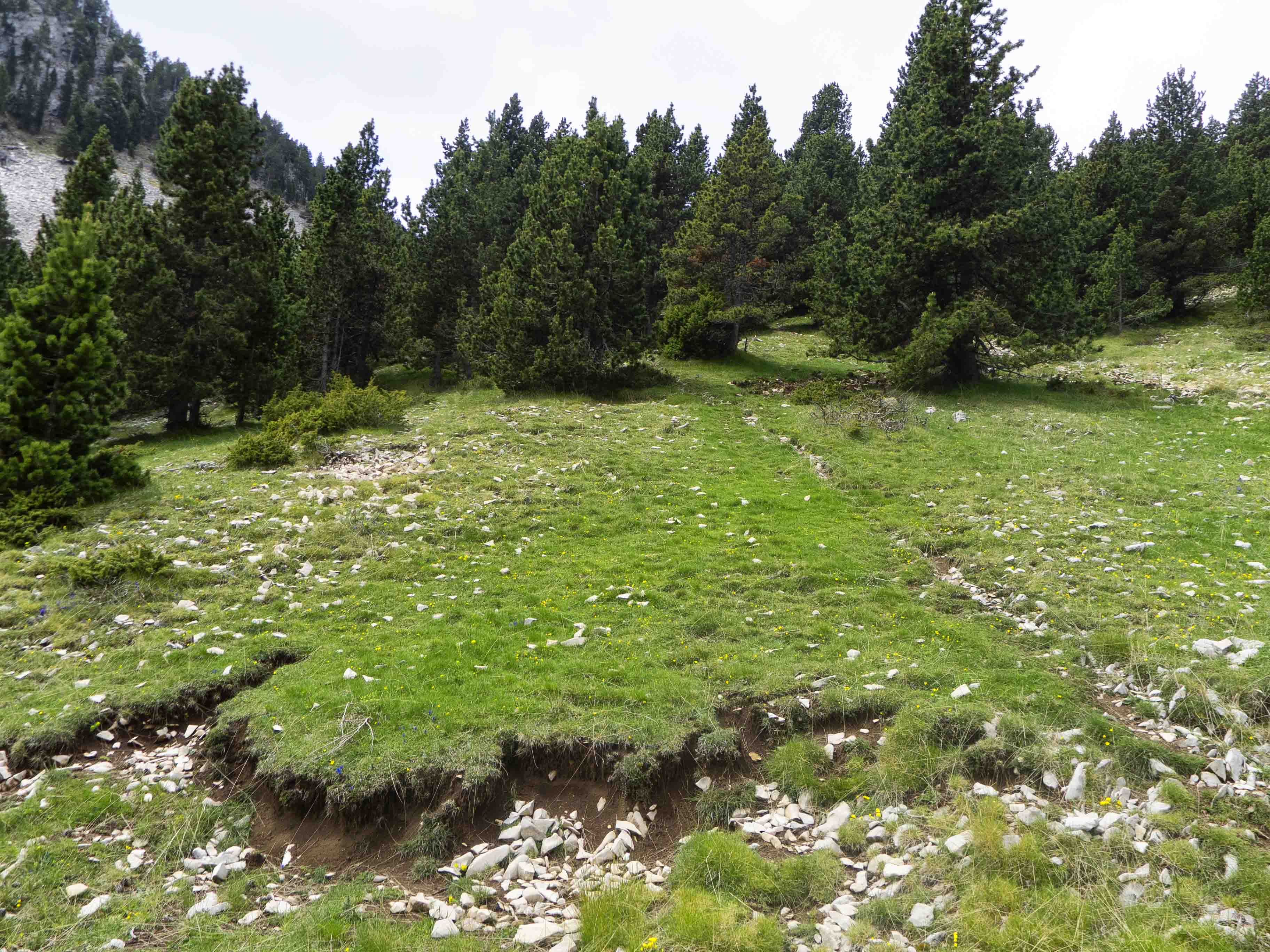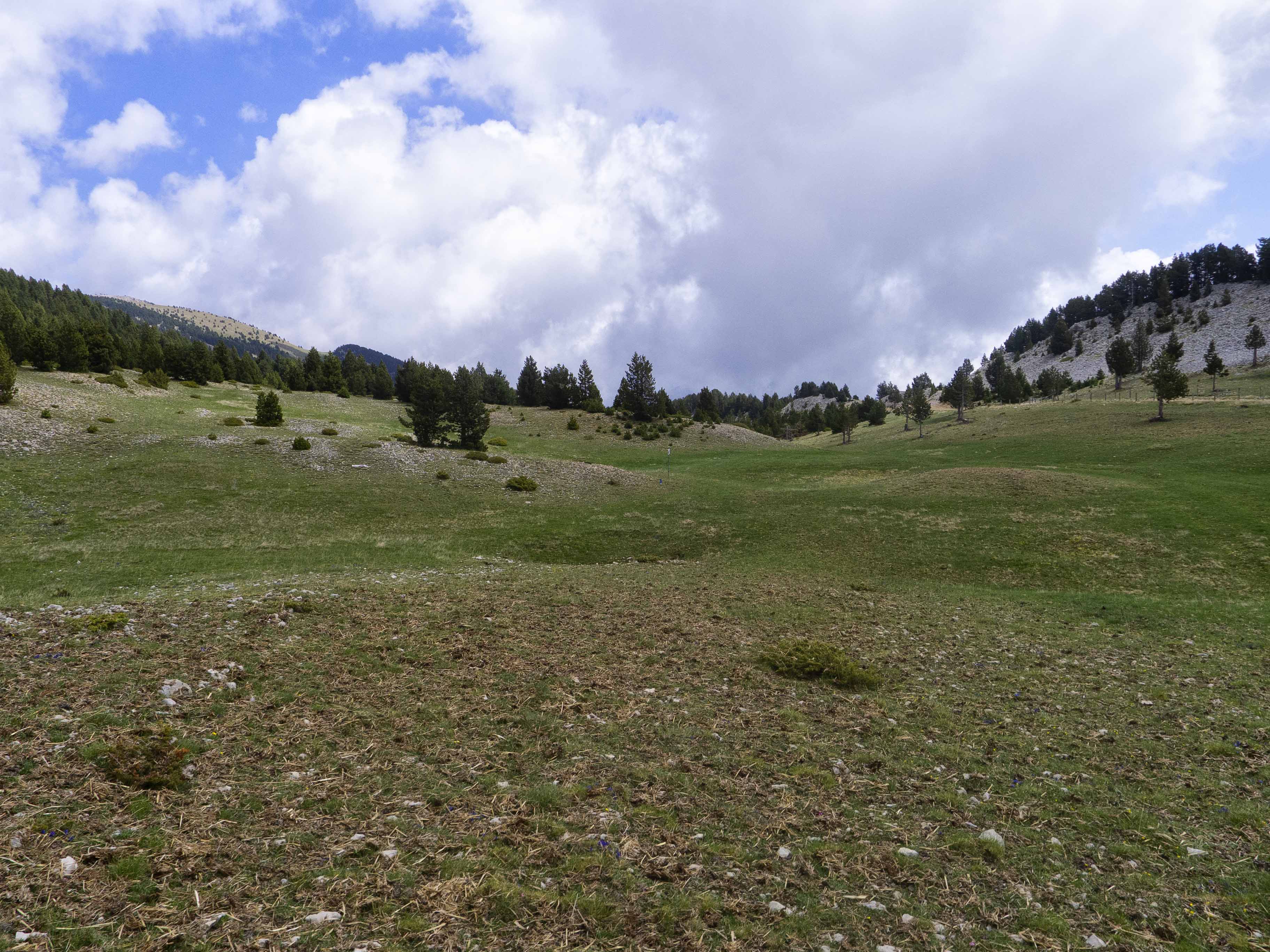 Una vez en los mismos, avanzamos hacia el frente, hacia la colina que vemos delante y que forma la loma este de la Tossa Pelada.