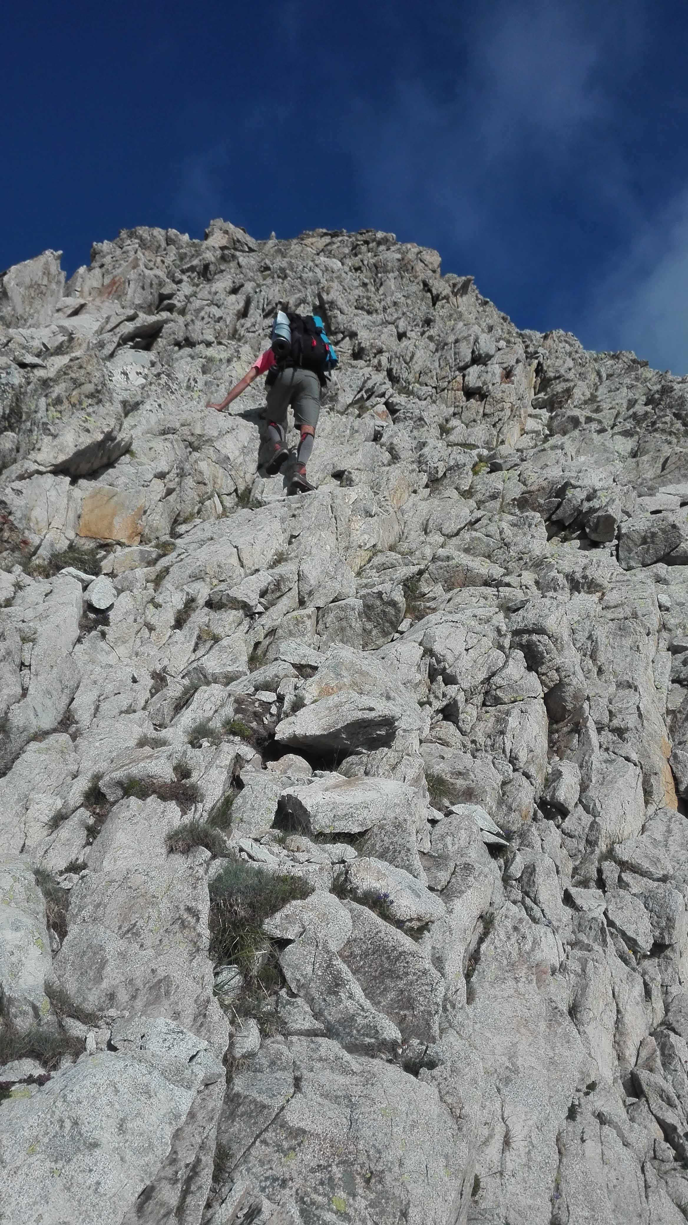 Después de un buen rato de trepada, nos situamos en el filo de la misma arista y, desde allí, ya nos queda muy pocos metros para llegar a la cumbre del Eriste Norte.
