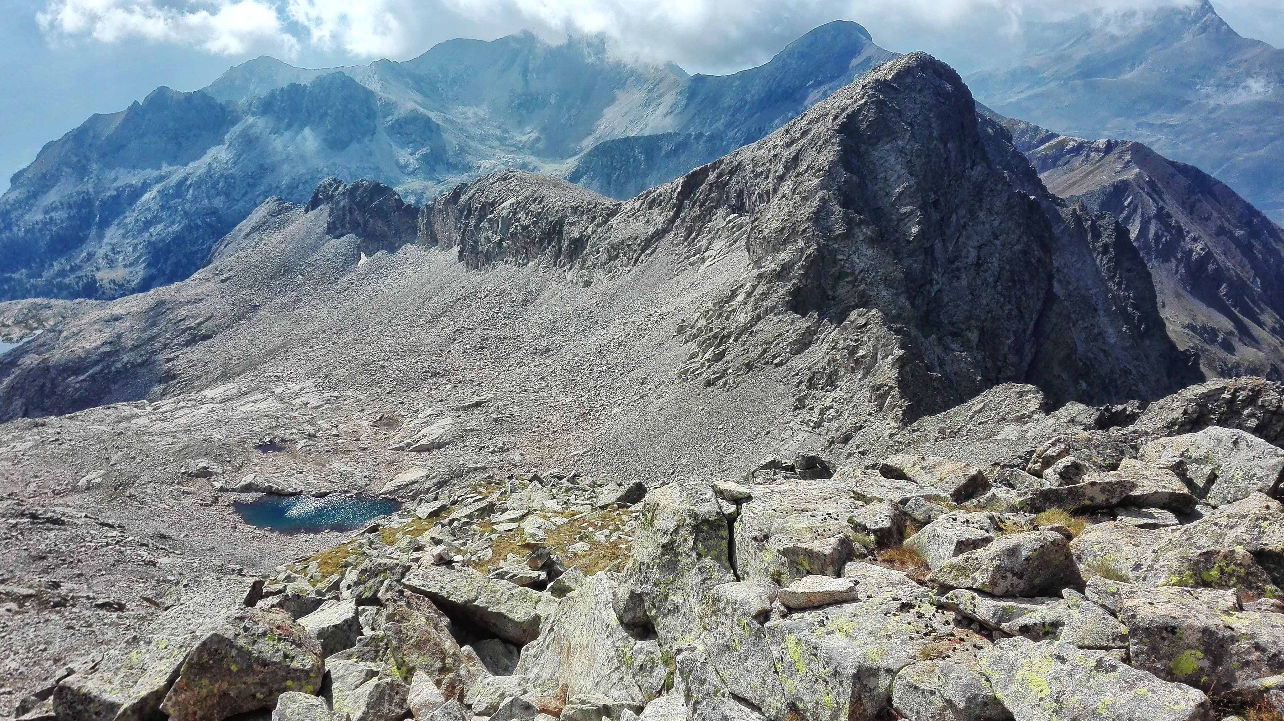 Desde la cumbre del Pico Beraldi, la vista sobre el Eriste Central y el Eriste Sur es grandiosa, igual que sobre los ibones de Millares y Leners.