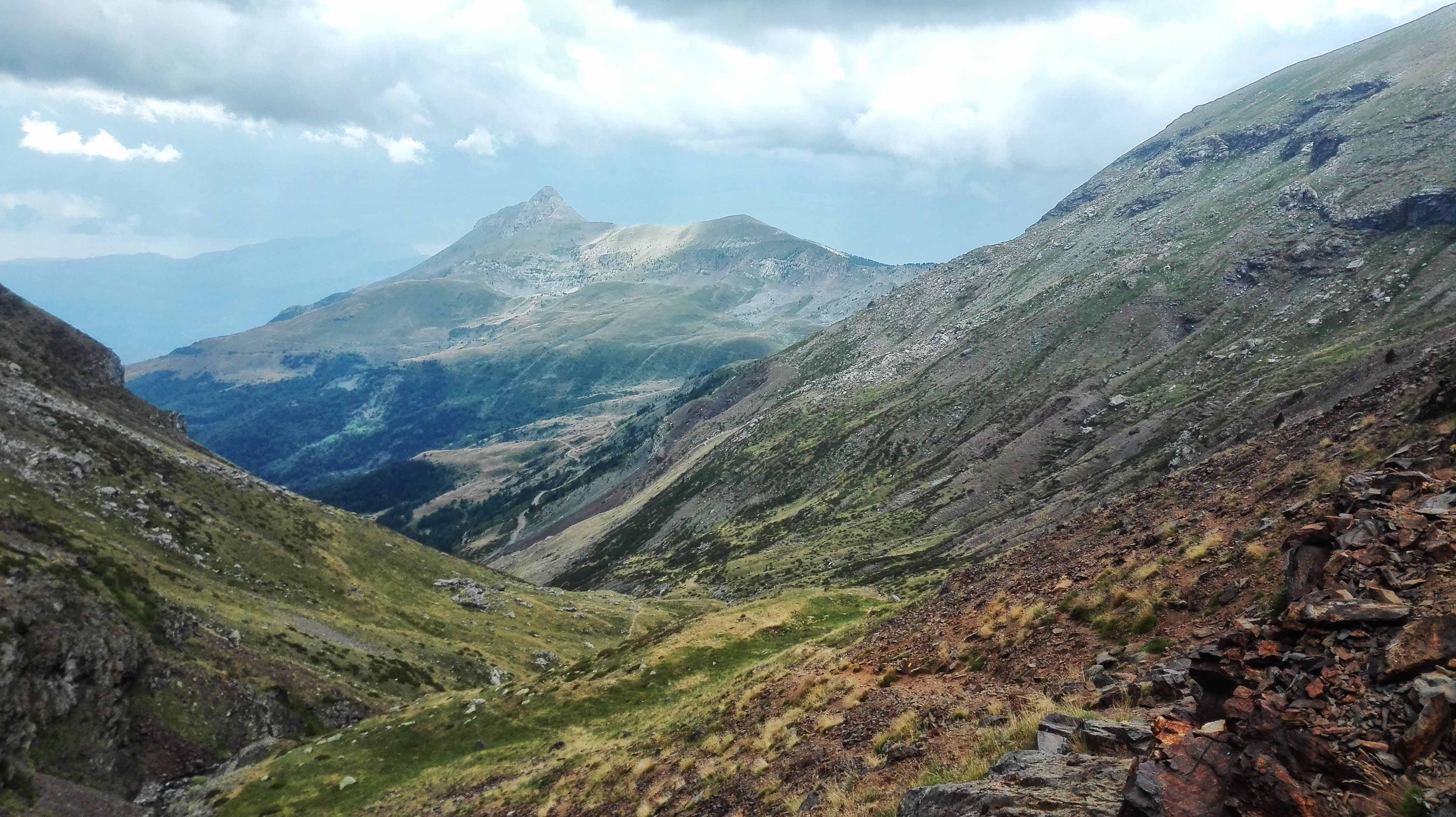 Una vez en este collado, ya sobre un camino bien marcado, descendemos al ibón de Barbarisa. Vistas al valle de Barbarisa desde el collado de la Ribereta.