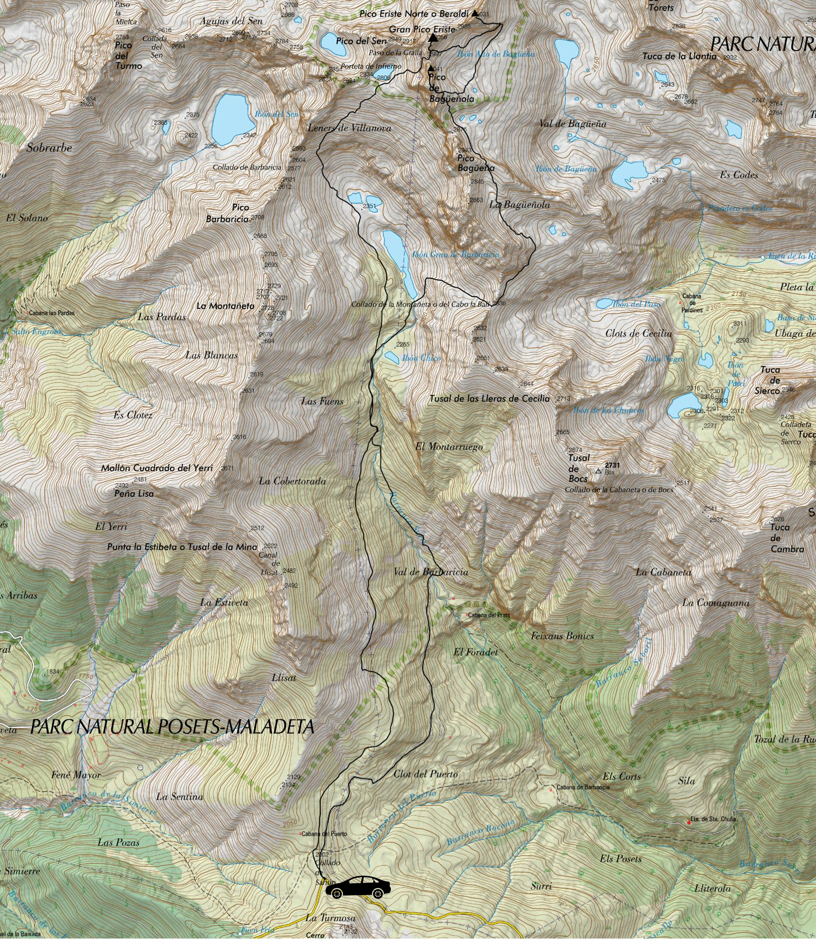 Las tres montañas que reciben el nombre de Eristes o Bagueñolas, cabecera del valle de Bagueña y Barbarisa, tienen cierta fama de montañas desagradables, lejanas y complicadas de ascender. No voy a ser yo el que refute estas opiniones, pues ciertamente son cumbres de accesos por terrenos podridos, eternos pedregales, largas y muy poco intuitivas ascensiones y con tramos finales que tienen su complicación, más aún si no encuentras el camino correcto, lo que suele ser habitual. Sin embargo, los montañeros que se decidan por ascender a estas montañas se van a encontrar con tres bellos tresmiles con una de las panorámicas más excelsas del Pirineo Central al estar desgajados hacia el sur del cuerpo principal del gigantesco Posets y tener una altura que supera a la mayoría de montañas de su alrededor, circunstancias que permiten que estas tres pequeñas cabezas graníticas puedan ser vistas desde la mayor parte del Pirineo. Su propia dificultad y mala fama hacen de filtro y provocan que nos encontremos en la mayoría de ocasiones en una soledad absoluta, apenas acompañados de algún grupo de cabras sorprendidas por hallar a humanos en semejante terreno de alta montaña.