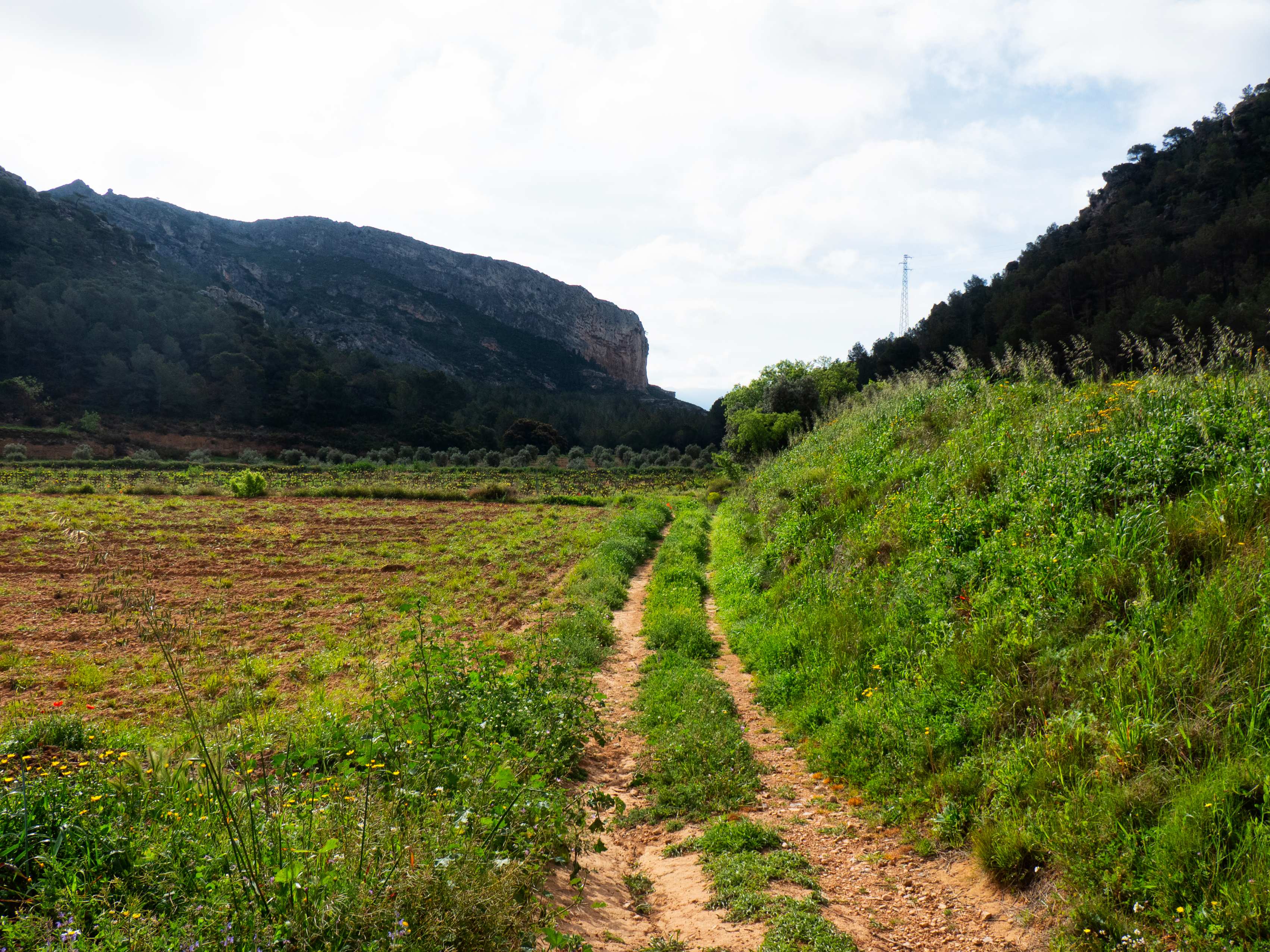 El sendero nos deja en una pista que tomamos hacia la izquierda, llegando al collado culminante de la Vall de les Carroves.