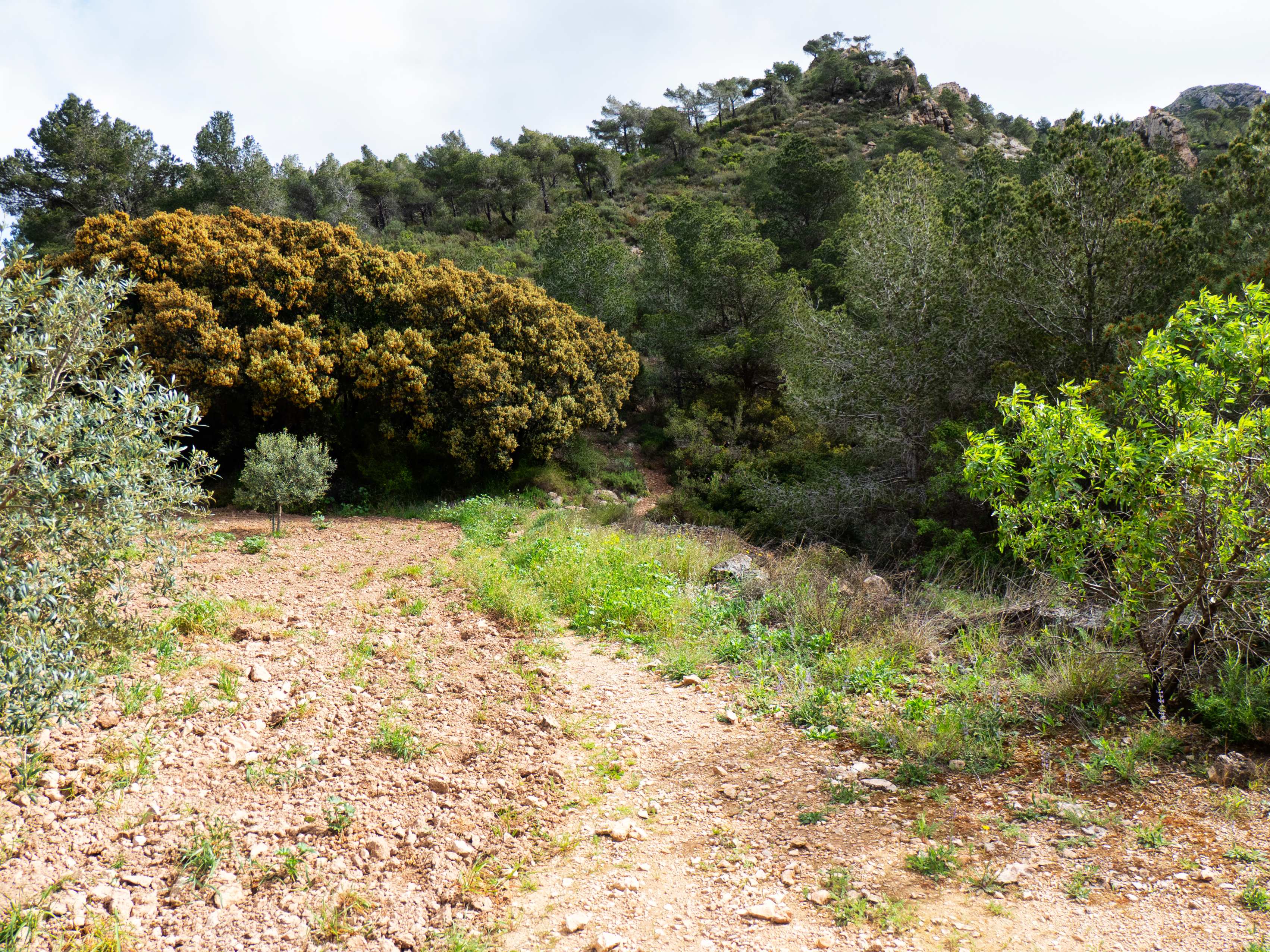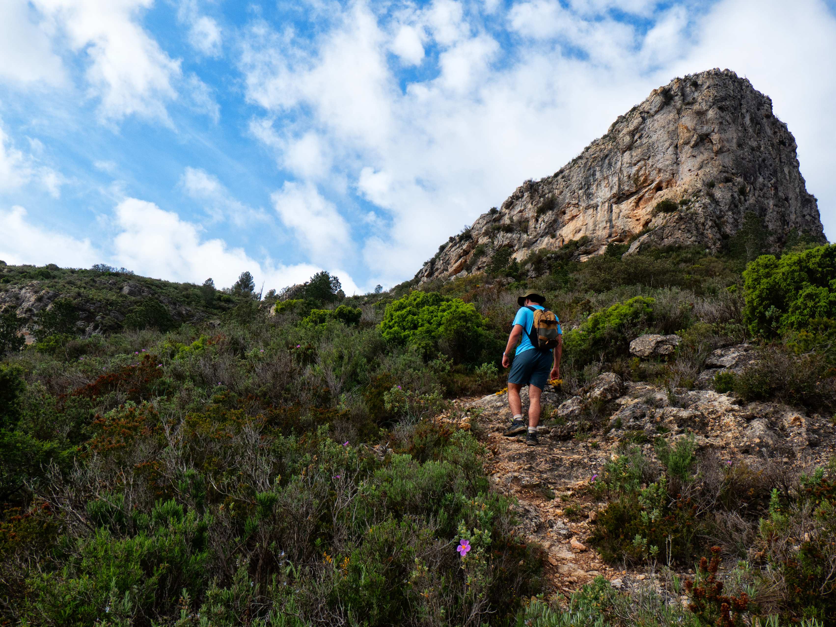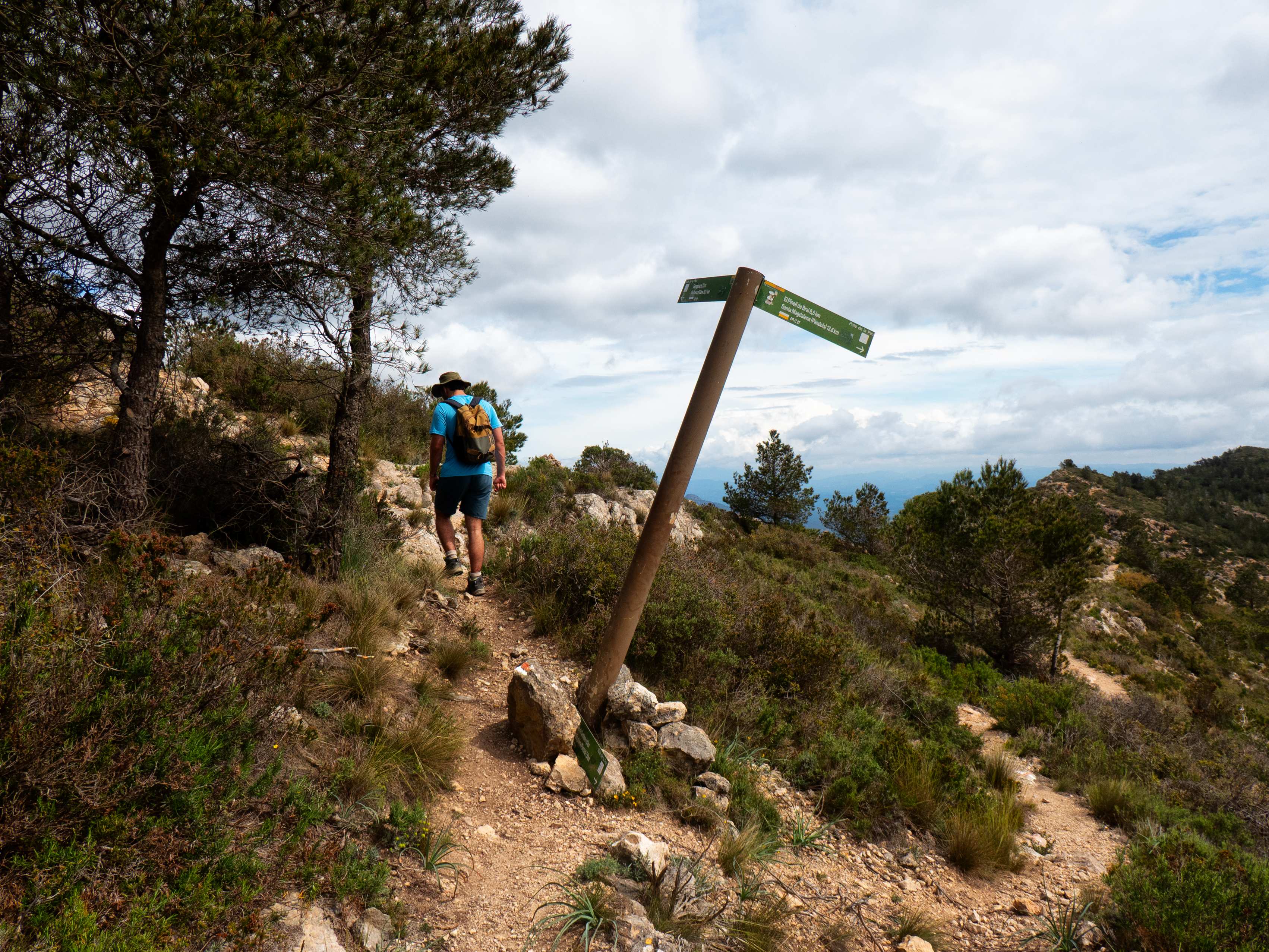 La cumbre de la Mola está situada a mano derecha, a unos 40 metros de donde estamos. Un estrecho sendero, que apenas consigue abrirse paso entre la vegetación espinosa, conduce hasta el crestón calizo donde se encuentra la cima.
