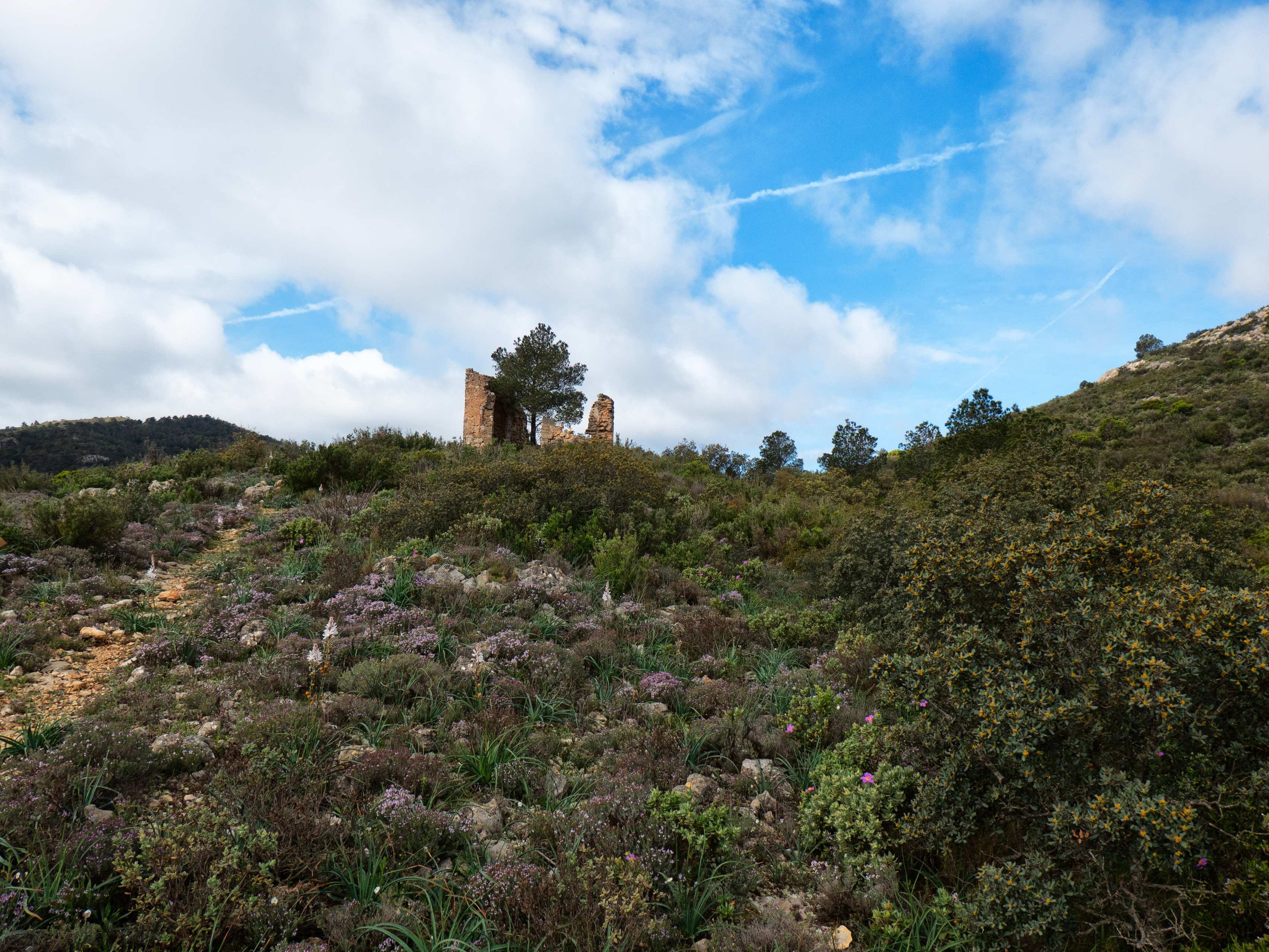 Sin apenas poner las manos en el suelo, llegamos al interior de la Mola d'Irto que, como toda muela que se precie, es suave y llano. En el centro de la montaña se alzan las ruinas de la ermita de Sant Marc, destruida durante los combates de finales de 1938, en plena Batalla del Ebro.