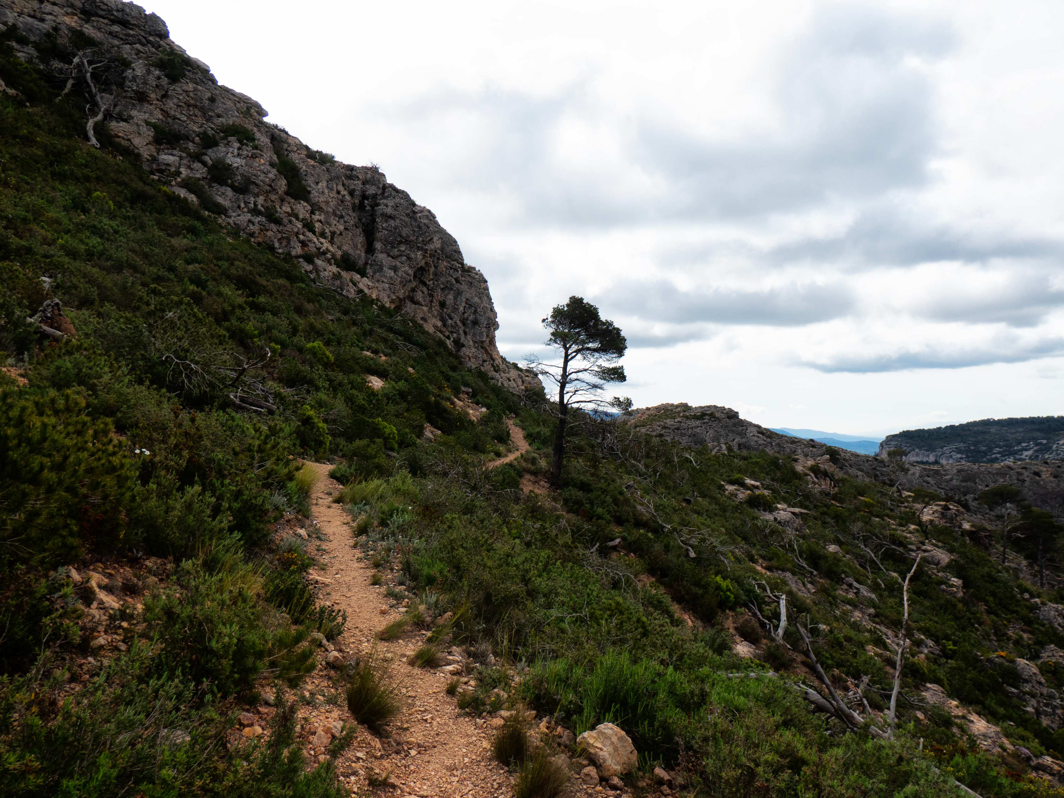 Después, el sendero traza una diagonal para superar la debilidad de la muralla, en un paso algo pedregoso pero sin dificultad.