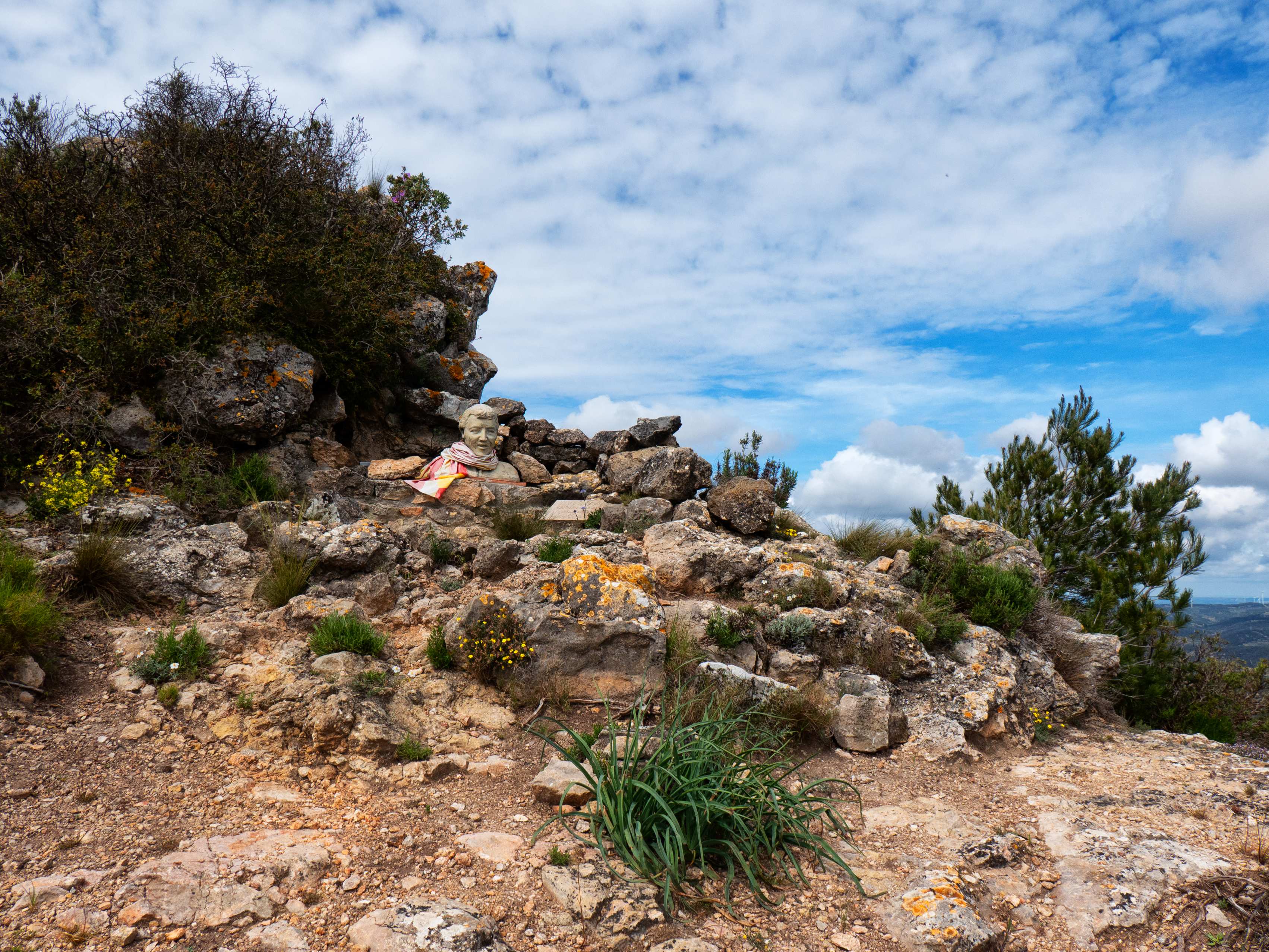 Empezamos el descenso siguiendo la arista hacia el norte, pasando junto a un memorial a un soldado republicano y cruzando numerosas trincheras, otra cicatriz de la lucha que hubo en la Serra de Cavalls durante la Guerra Civil.