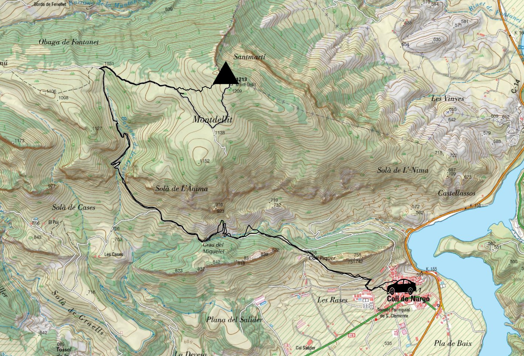 Por encima de Coll de Nargó, se levanta una montaña que es toda una excepción en este abrupto entorno. La Muntanya de Nargó o Montdellit es una montaña que destaca no precisamente por su airosidad, más bien por su gran volumen y suaves proporciones, a diferencia de todo lo que la rodea. Aún así, se trata de un buen mirador de la parte inferior de esta región, especialmente de las grandes montañas que delimitan el Congost dels Espluvins y también de lo que seguramente sea el rincón más magnífico de esta inhóspita región, el precioso y solitario valle de Perles. Por ello, vale la pena conocer, en una matinal desde Coll de Nargó, esta montaña que, aunque sea muy poco conocida, tiene sus peculiaridades que convierten su ascenso en una bonita jornada.