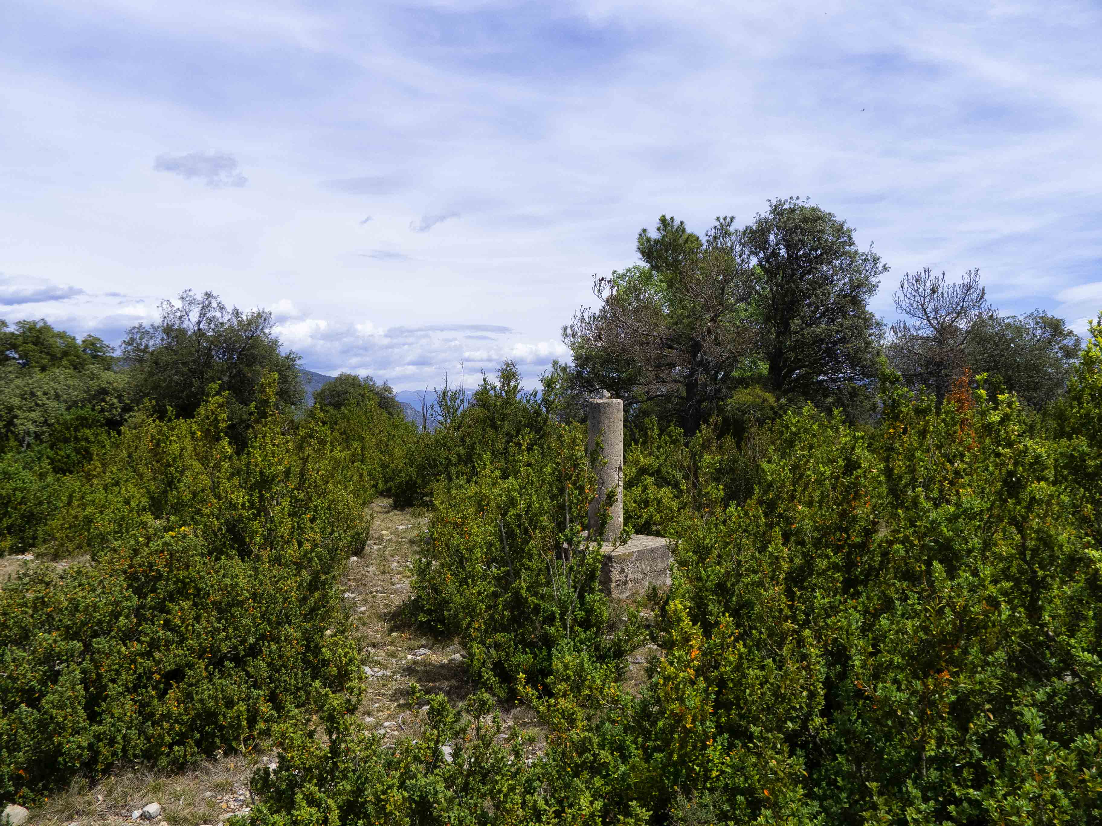 Cumbre de la que nos separan apenas unos 70 metros de desnivel y a la que llegamos en pocos minutos. El vértice geodésico de la Muntanya de Nargó se encuentra rodeado de vegetación y su panorámica es escasa, pero si andamos unos metros hacia el norte...