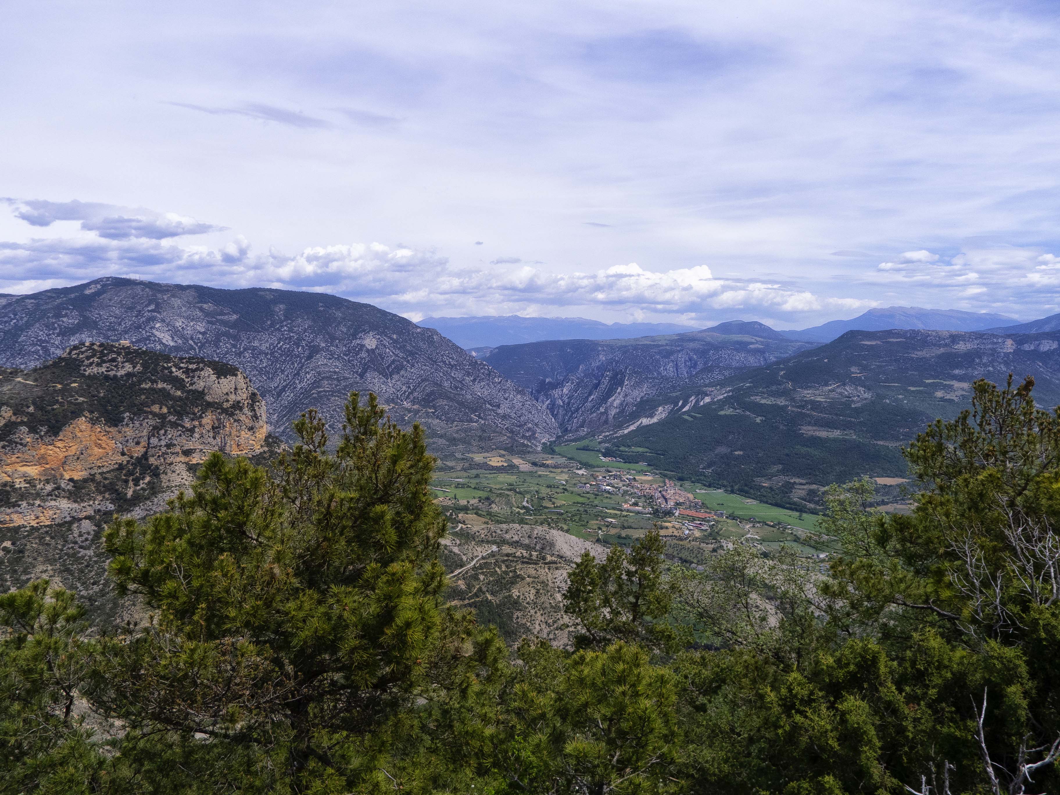 ...se nos abre la vista hacia esa dirección. El Segre, tras atravesar el profundo Congost de Tresponts, se encuentra con el verde rellano donde se asienta Organyá, que vemos al pie de...