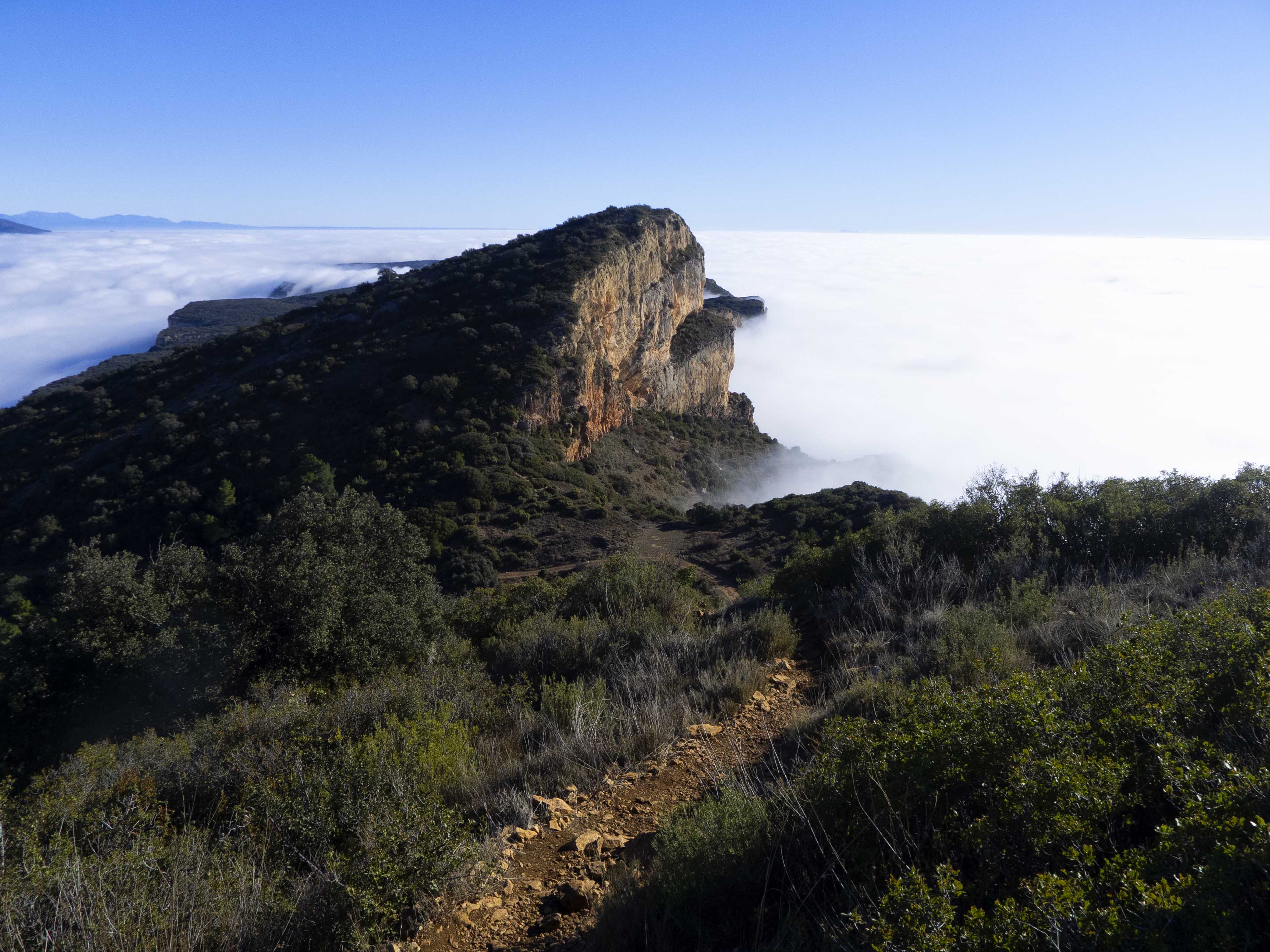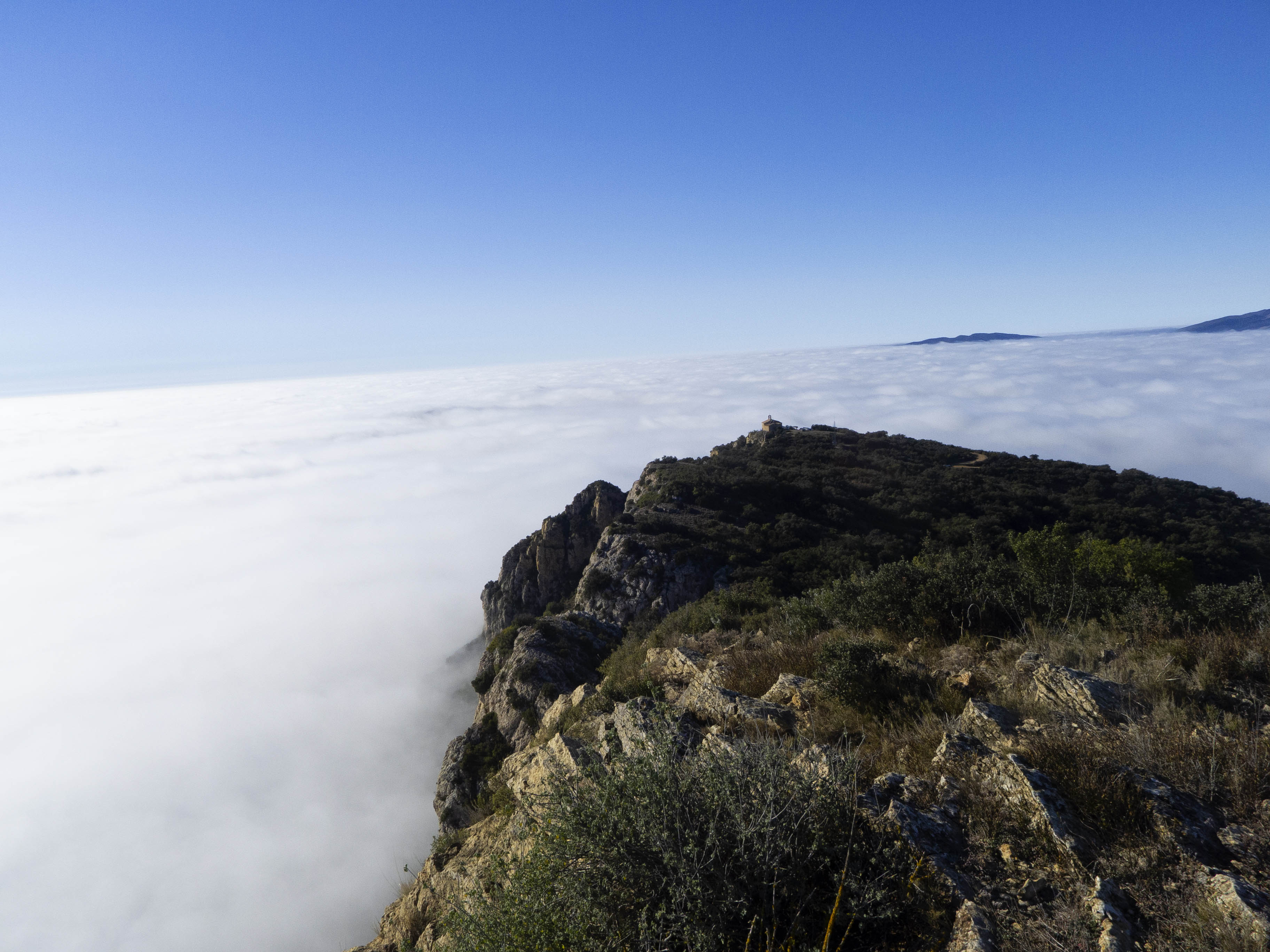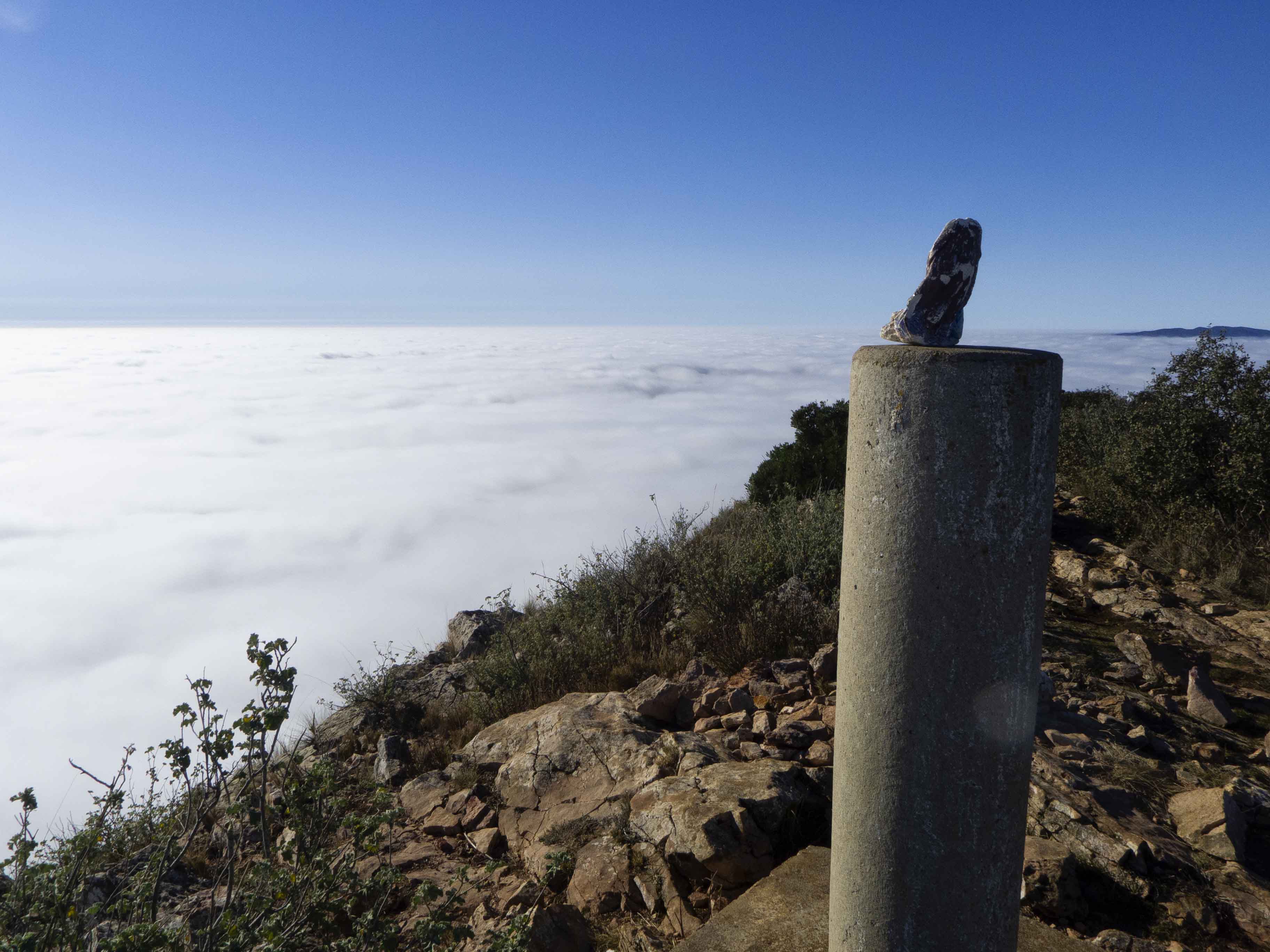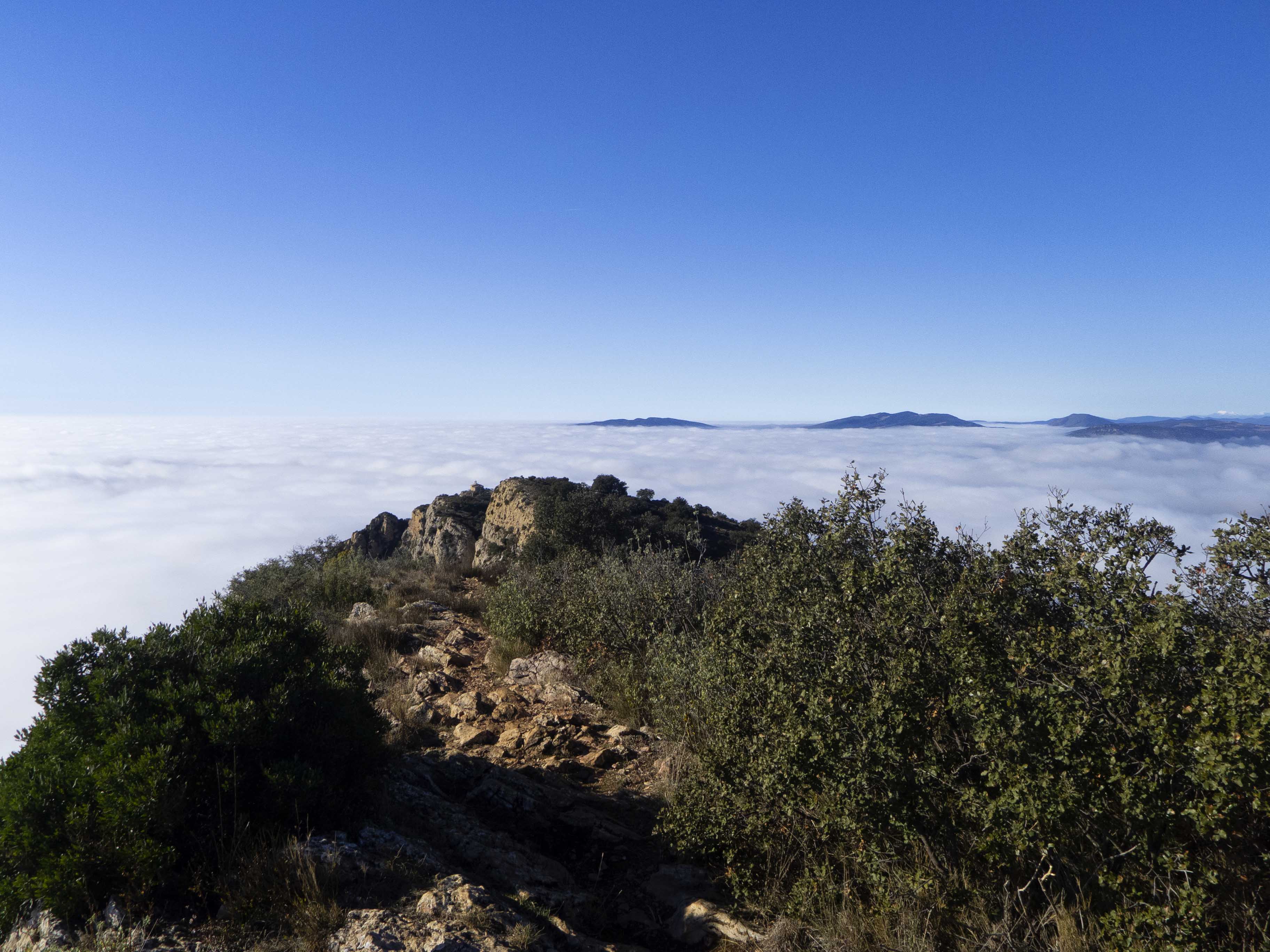 Tal como suponíamos, la niebla es baja y las cumbres del Mont-Roig quedan por encima de la misma, como monolitos en medio del mar.