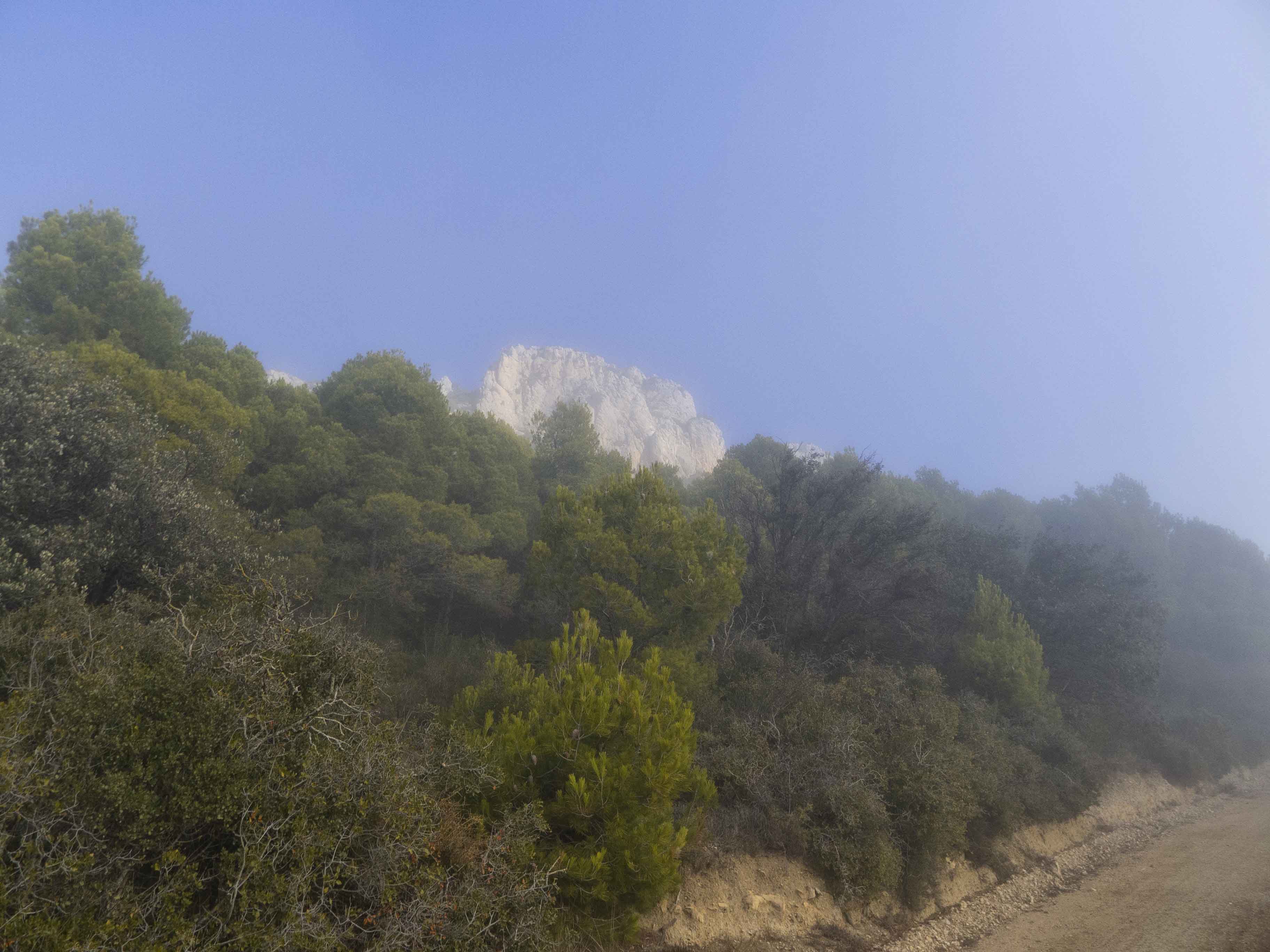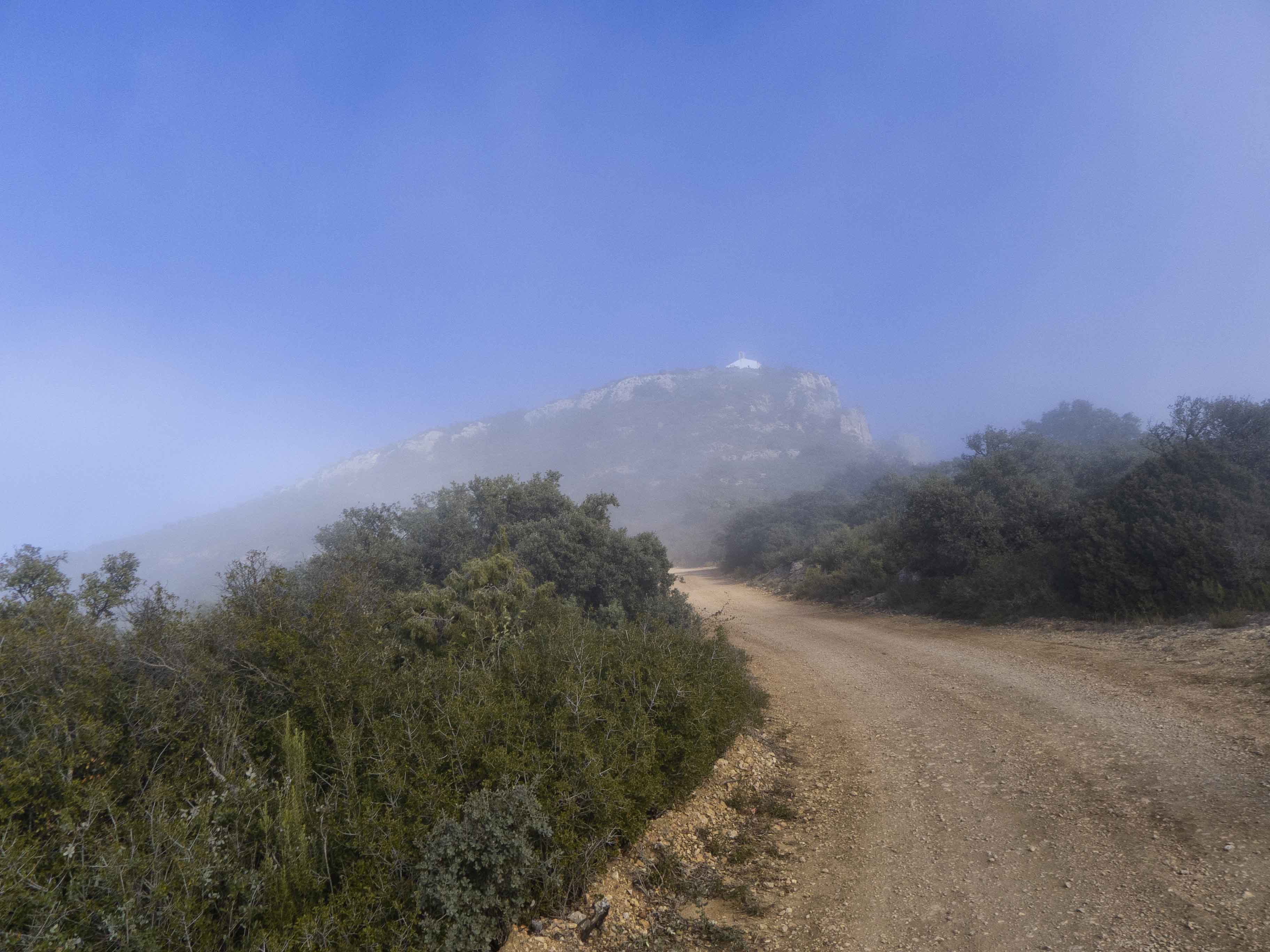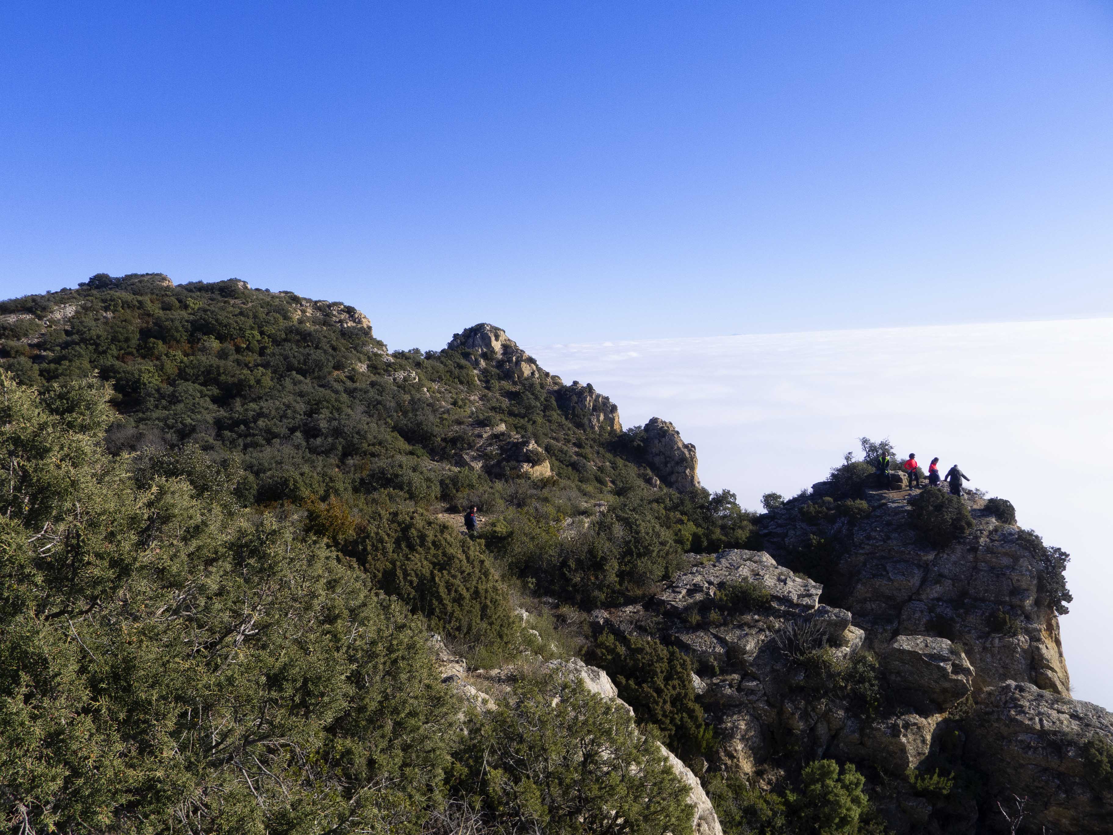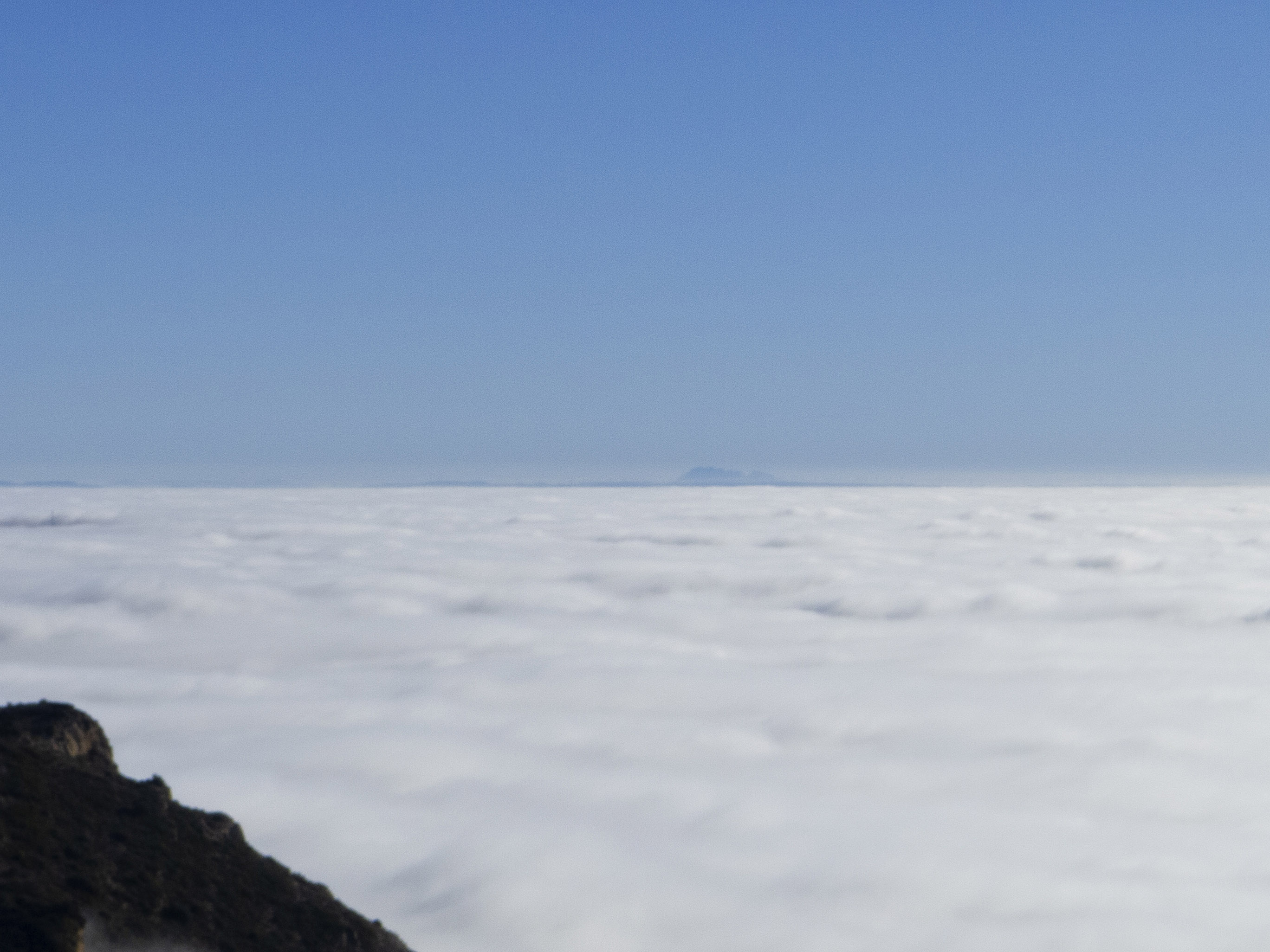 Tal como suponíamos, la niebla es baja y las cumbres del Mont-Roig quedan por encima de la misma, como monolitos en medio del mar.