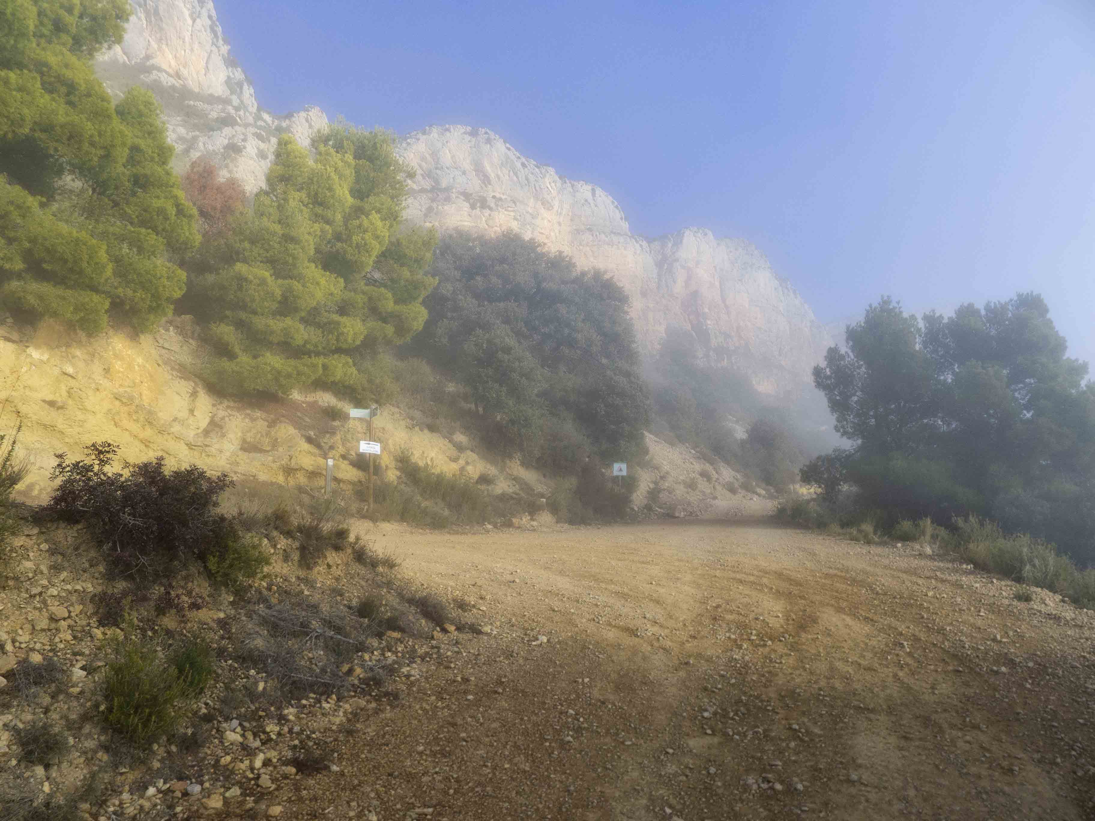 Como muchas jornadas invernales en Lleida, la densa niebla lo cubre todo, también la Collada de Llorenç, donde empezamos a andar. Los árboles están llenos de escarcha y el suelo está duro como una piedra por el frío. Sin embargo, tenemos la firme esperanza de que la parte alta del Mont-Roig marque la frontera entre el cielo azul y la niebla, como suele pasar.