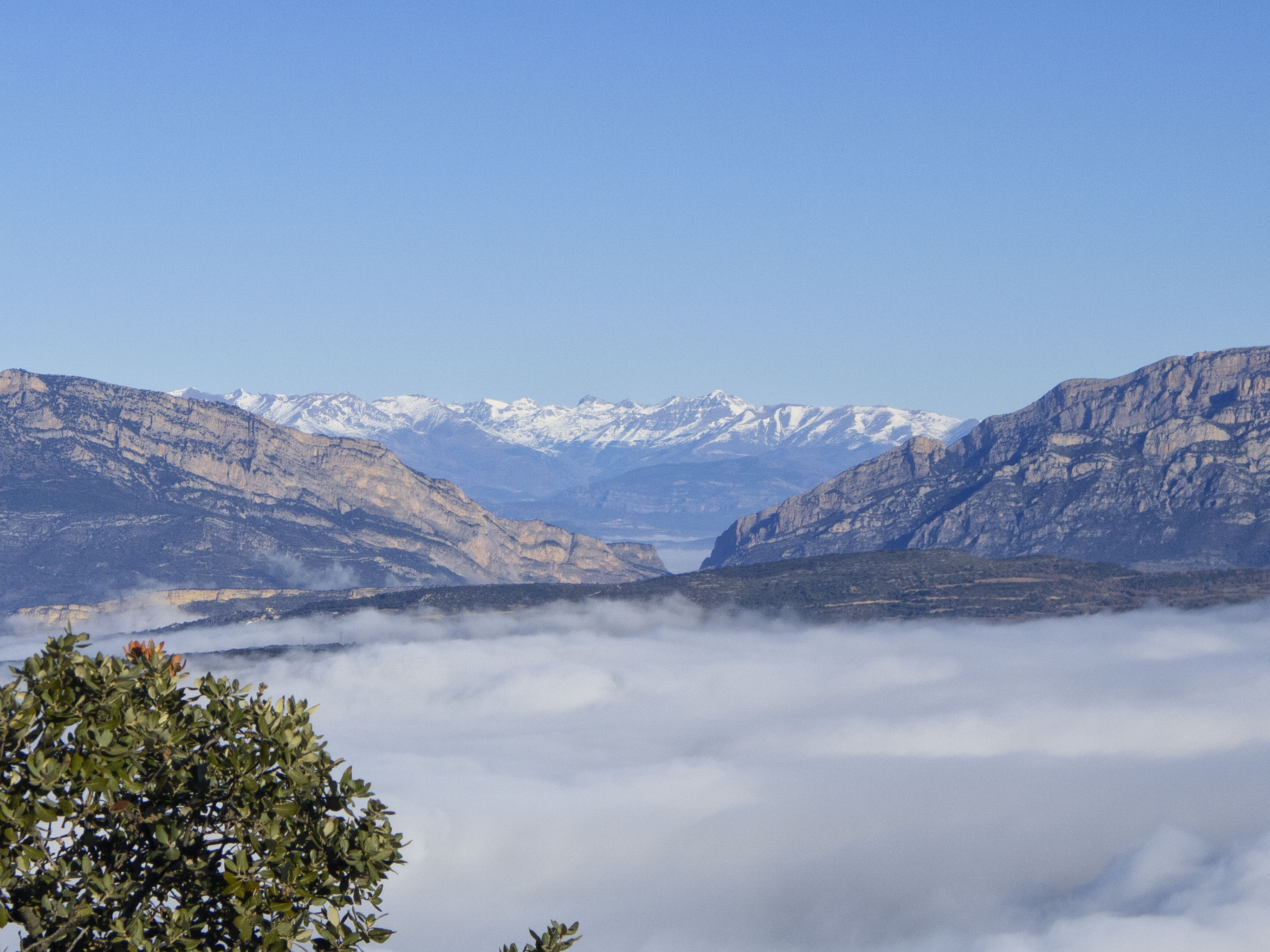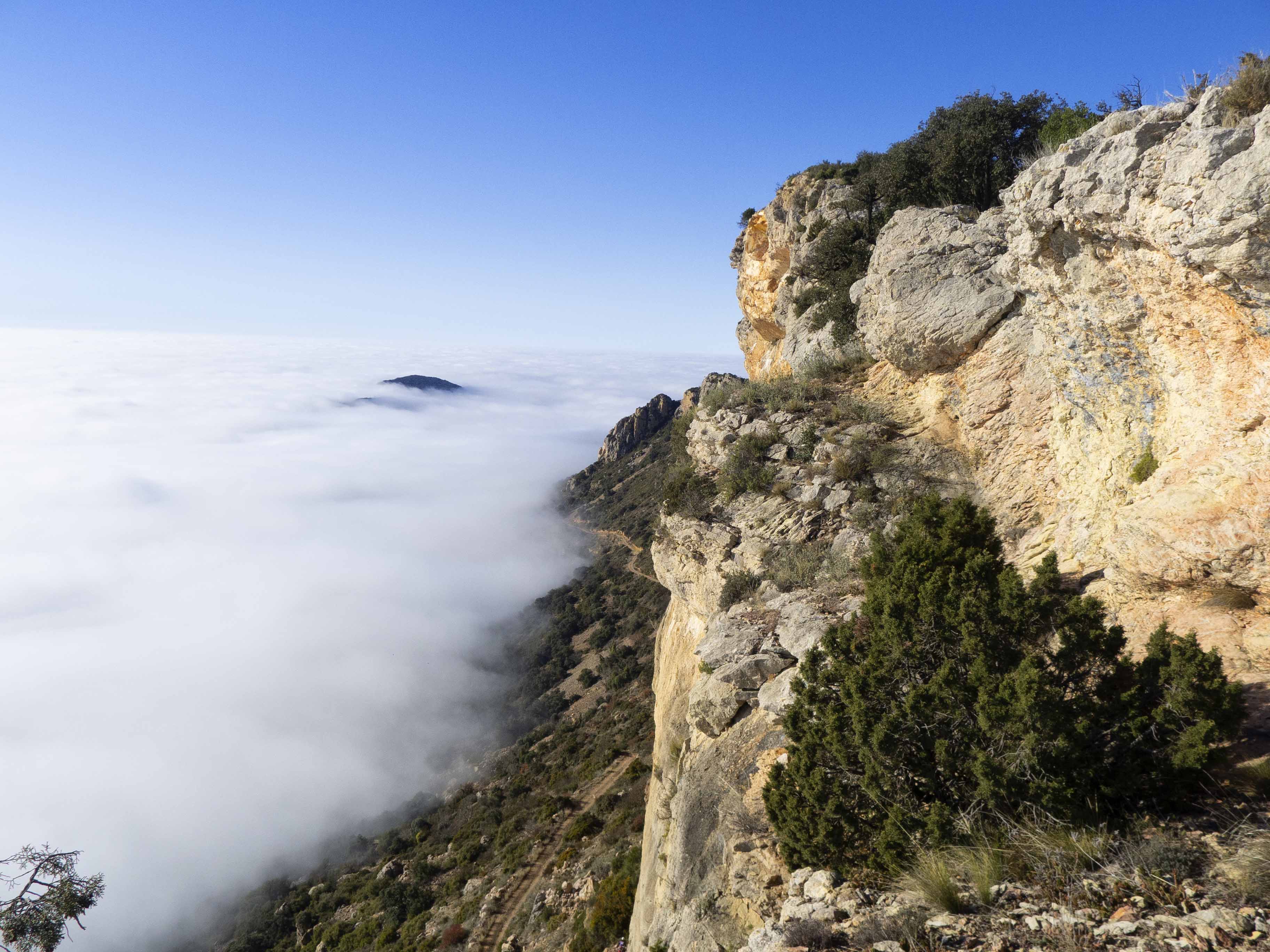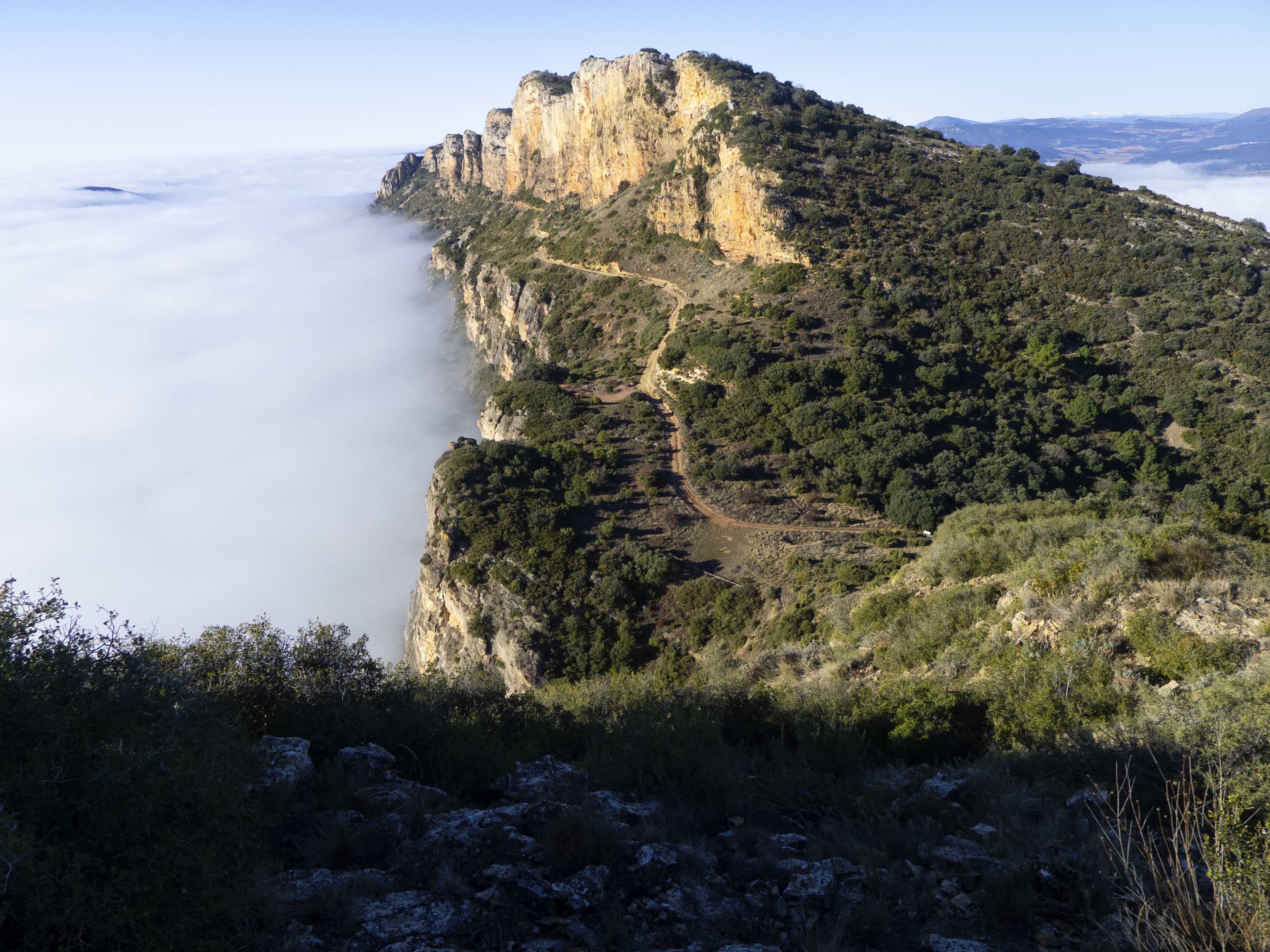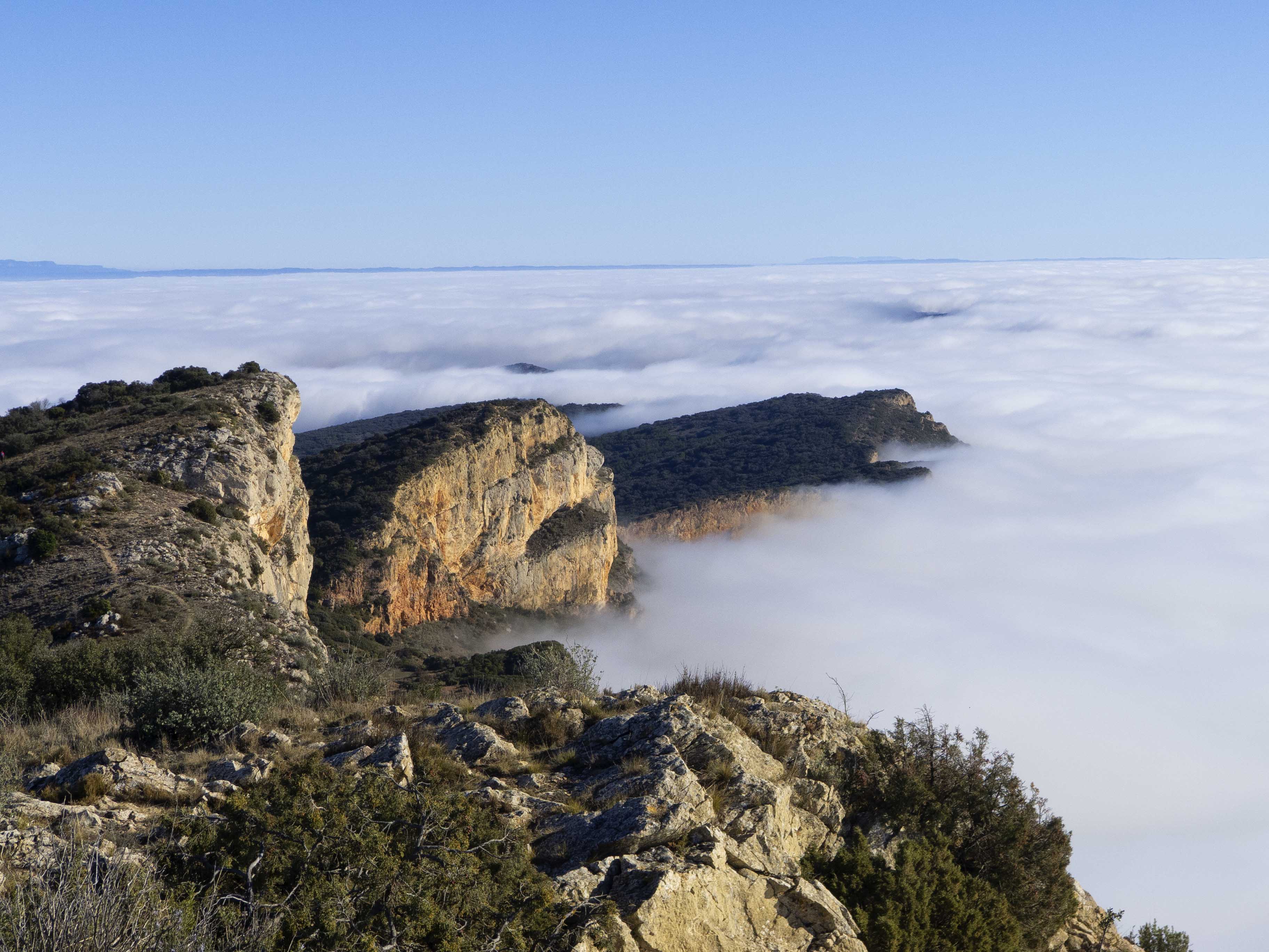 Pero la presencia de la niebla nos permite observar este maravilloso paisaje que hace del Mont-Roig una sierra especial, pues suele ejercer de primer dique de contención de la bruma que suele cubrir las tierras bajas de Lleida en invierno.