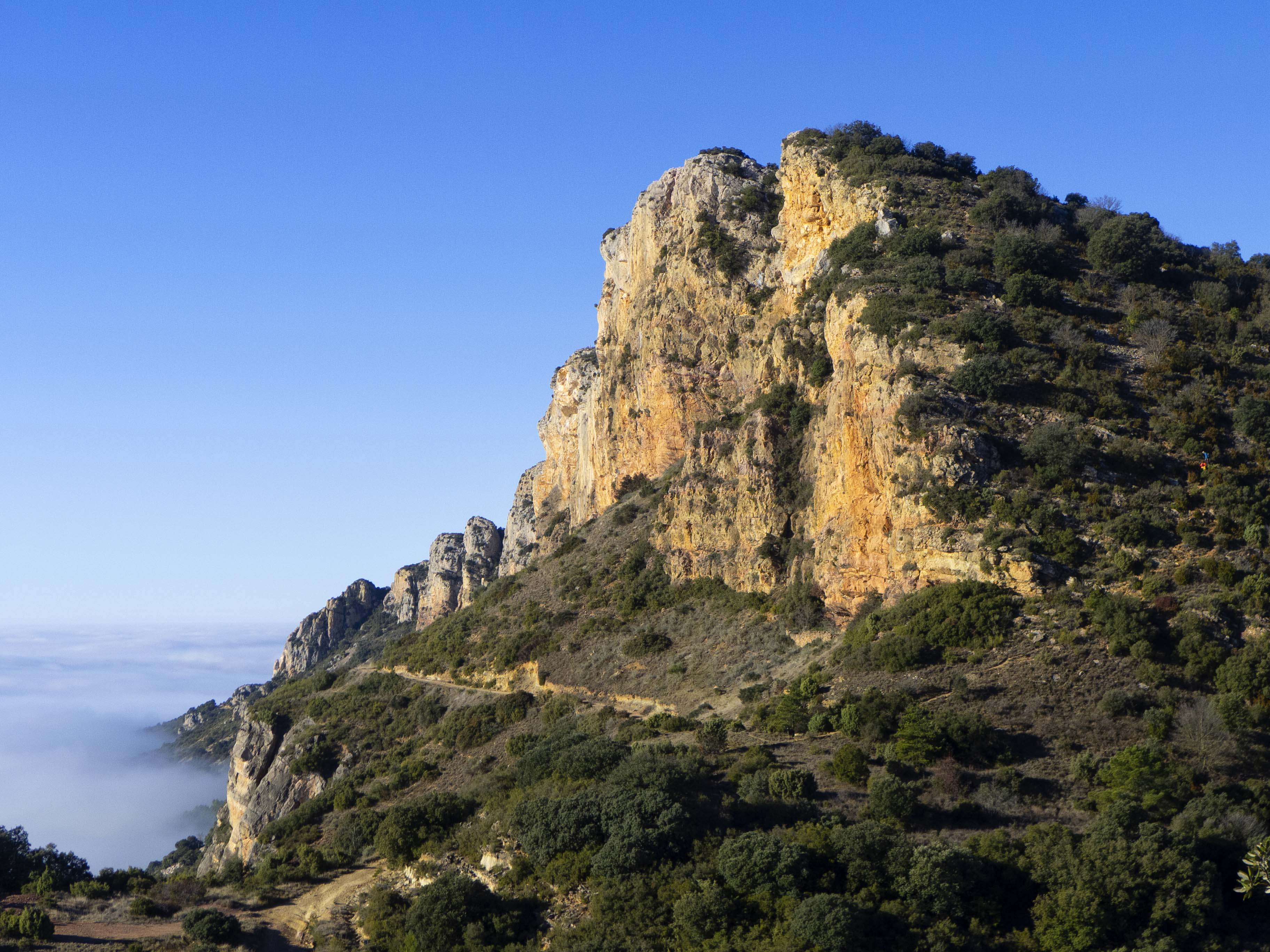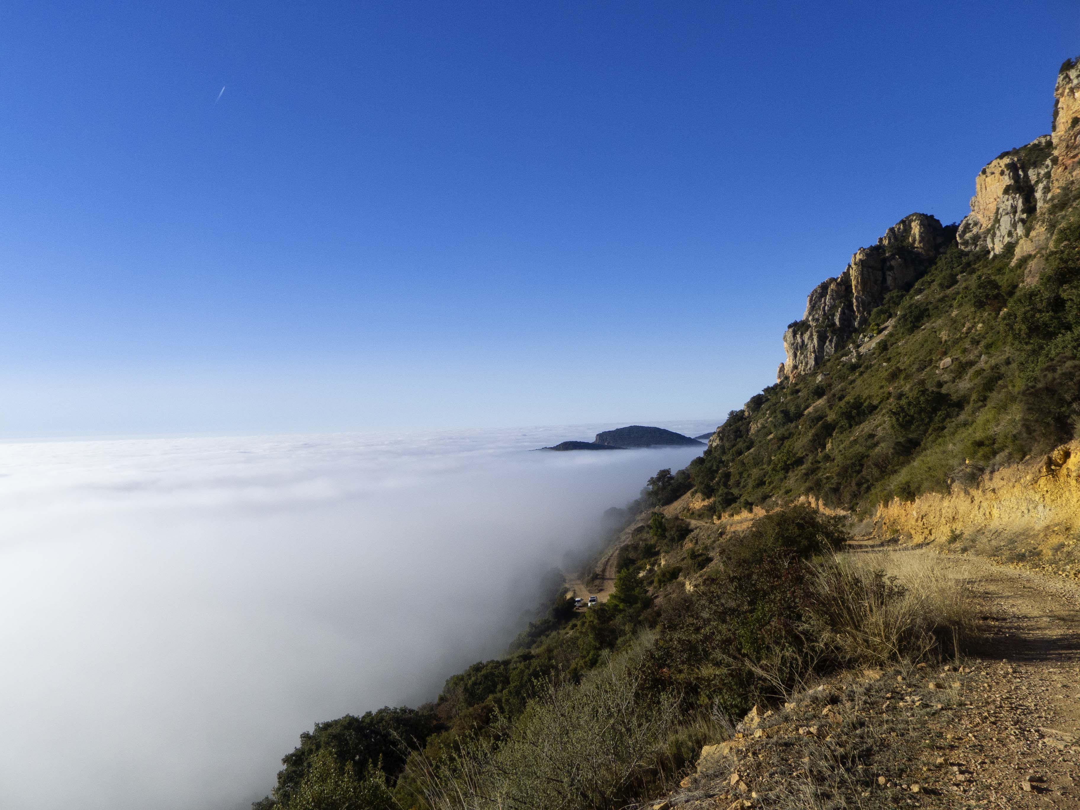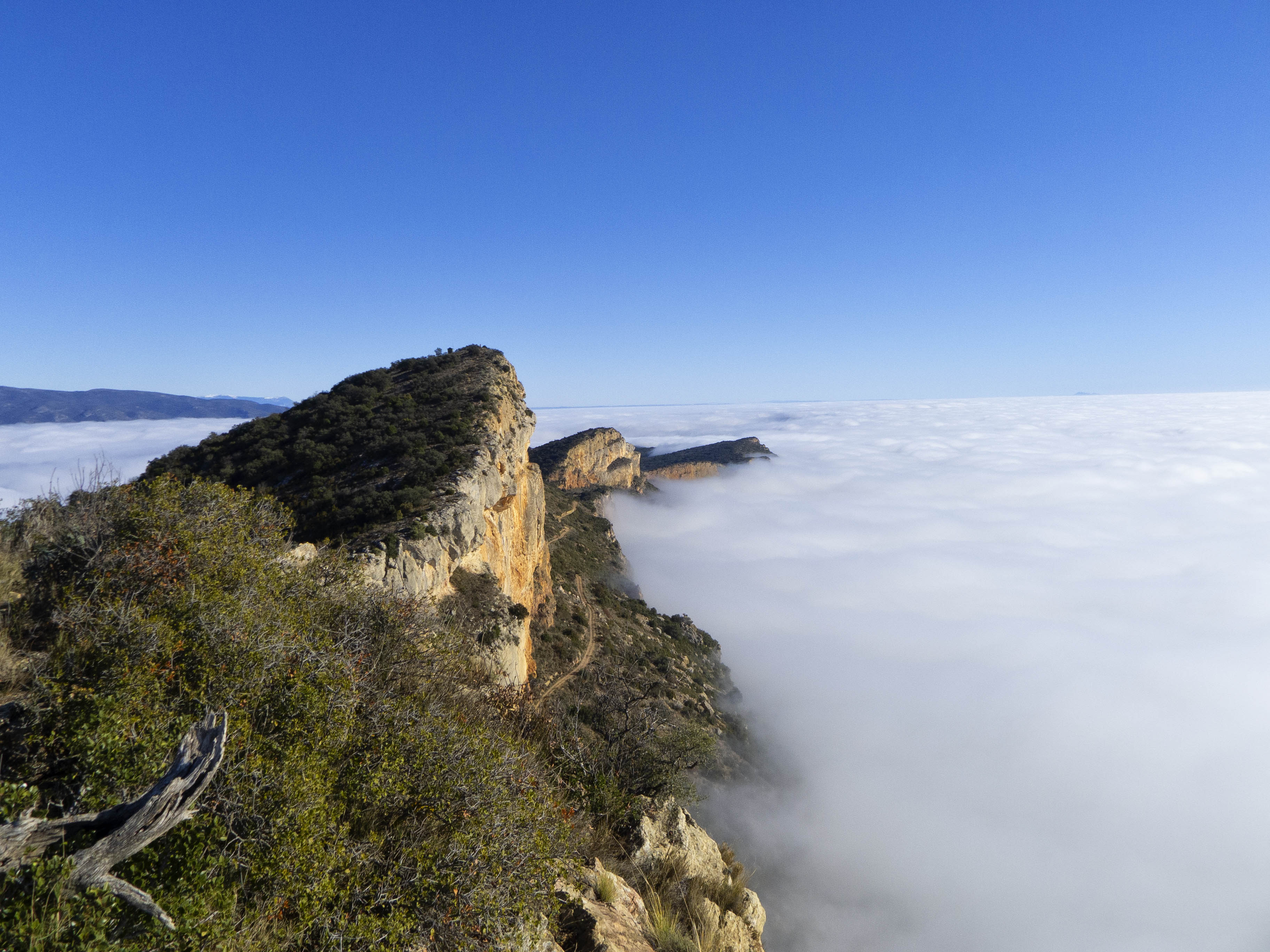 Pero la presencia de la niebla nos permite observar este maravilloso paisaje que hace del Mont-Roig una sierra especial, pues suele ejercer de primer dique de contención de la bruma que suele cubrir las tierras bajas de Lleida en invierno.