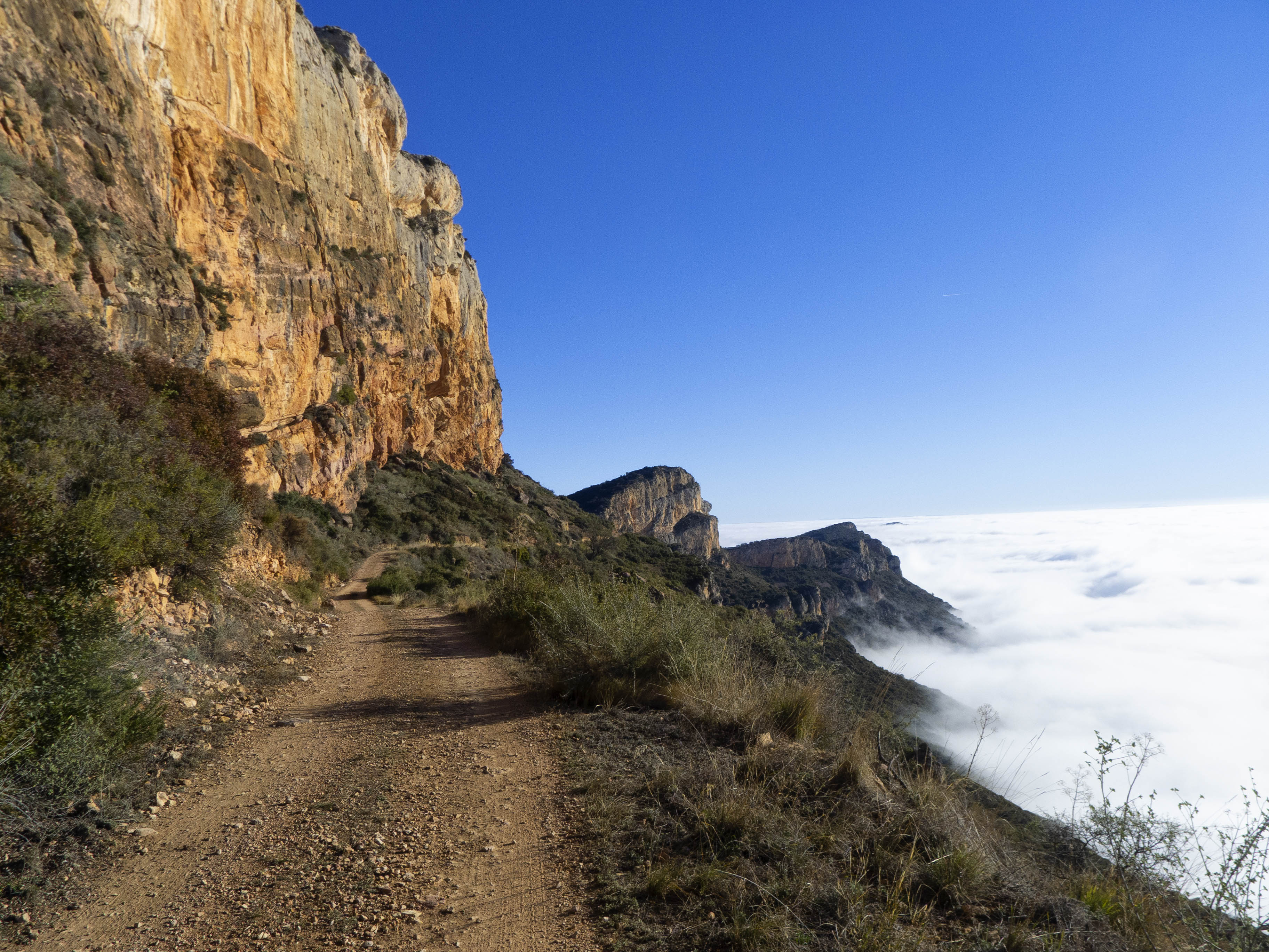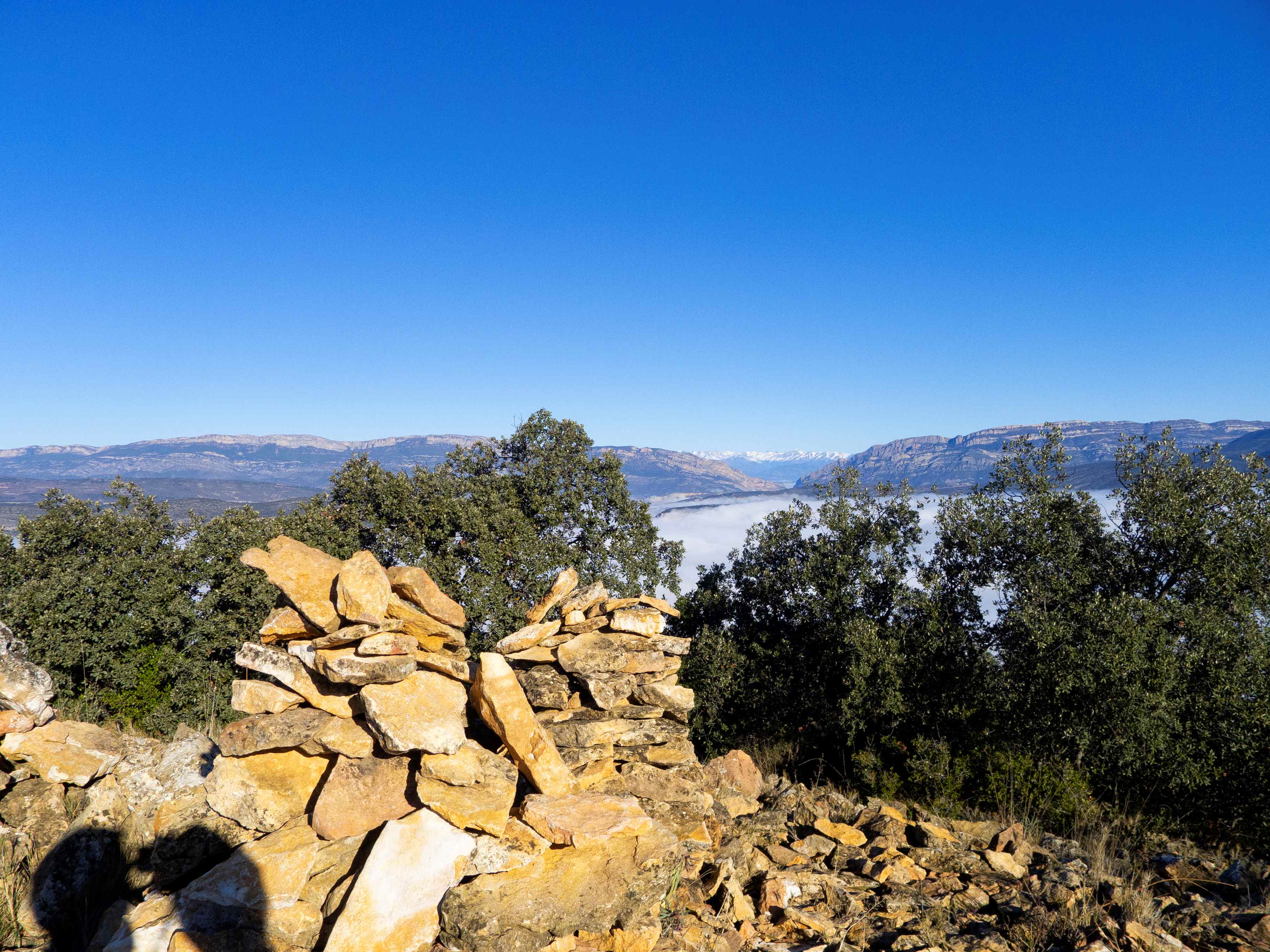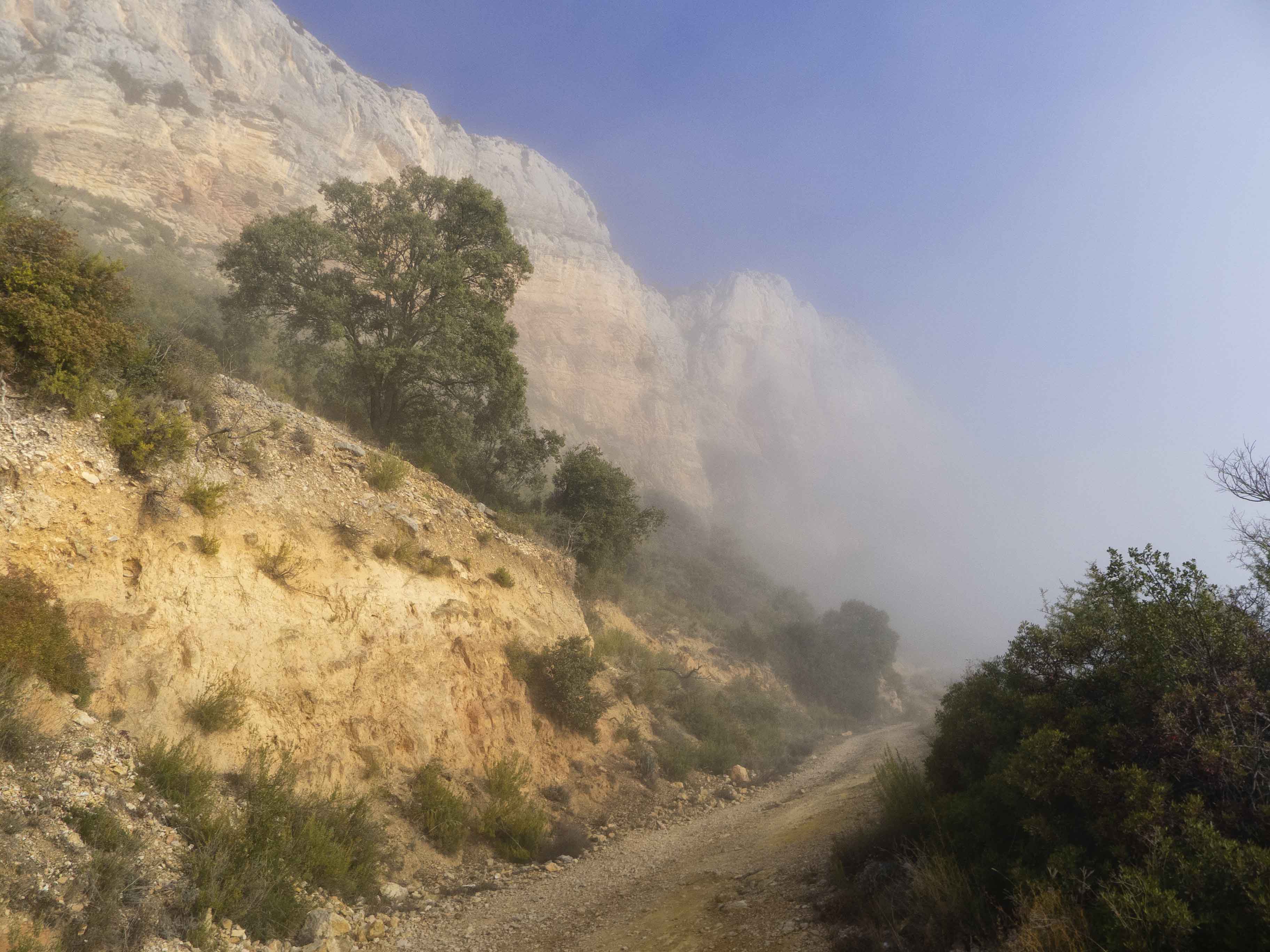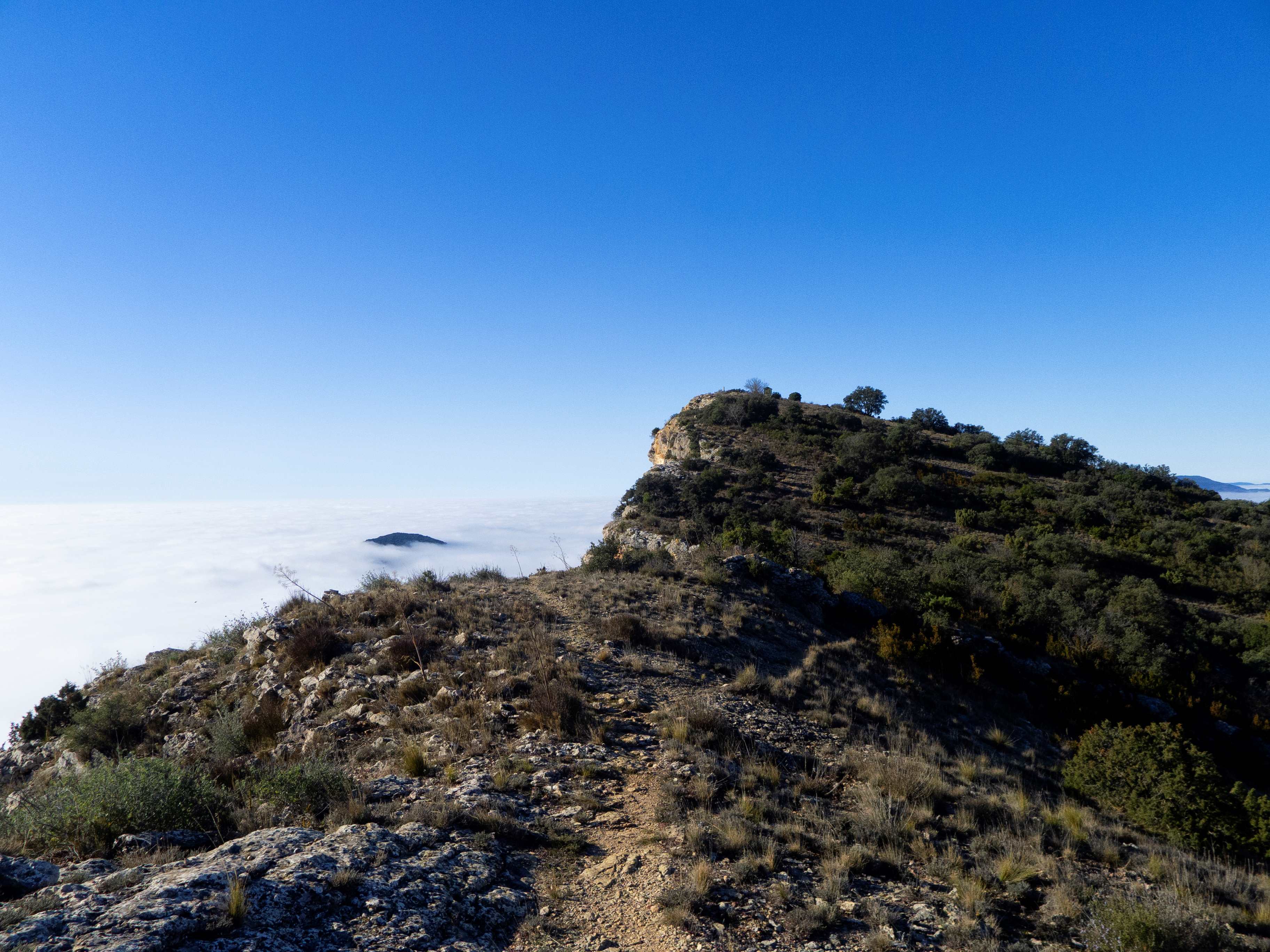 Pero la presencia de la niebla nos permite observar este maravilloso paisaje que hace del Mont-Roig una sierra especial, pues suele ejercer de primer dique de contención de la bruma que suele cubrir las tierras bajas de Lleida en invierno.
