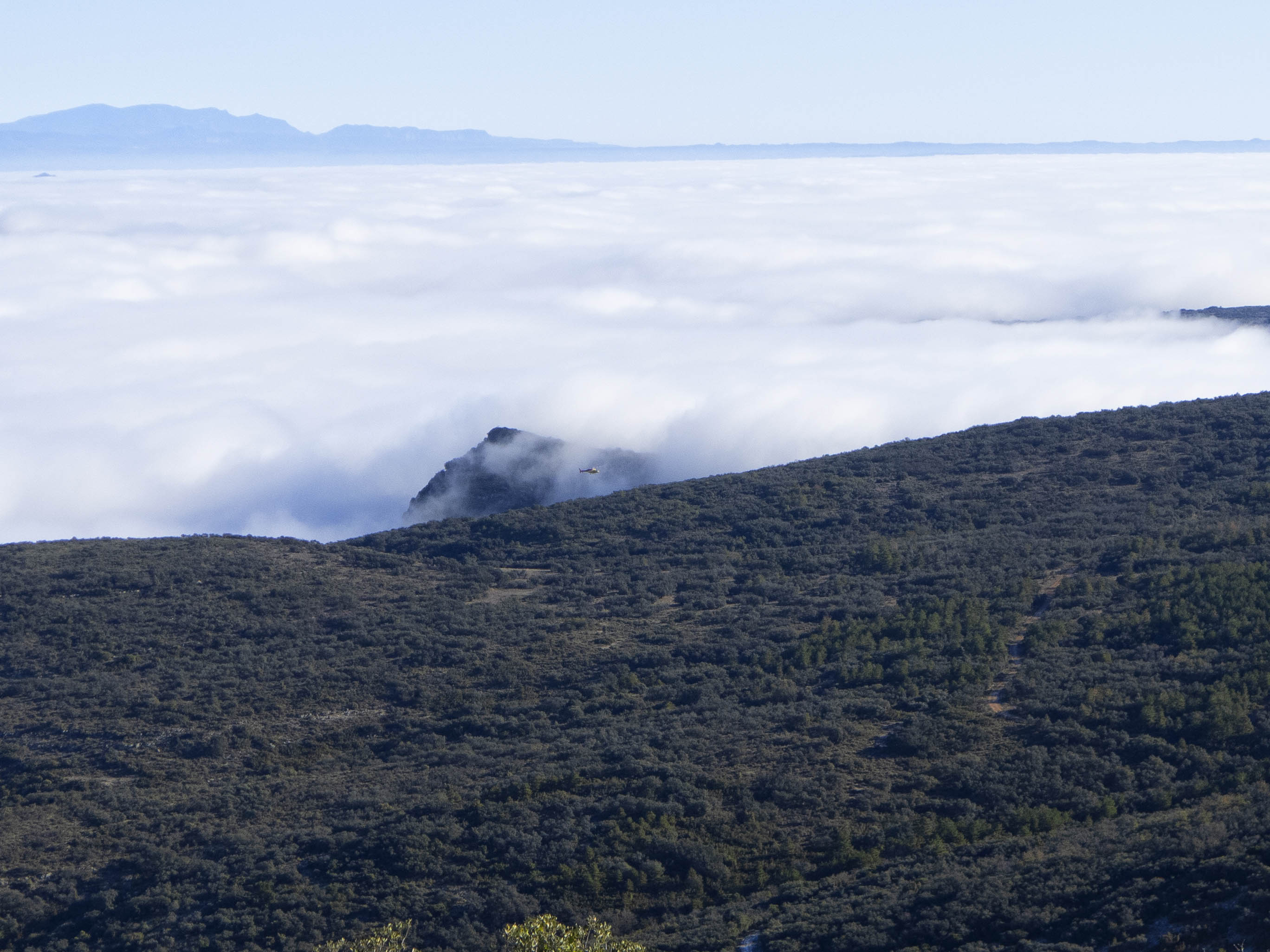 Un helicóptero busca algo por los confines orientales del Mont-Roig, mientras la cumbre de la Proa se resiste a desaparecer.