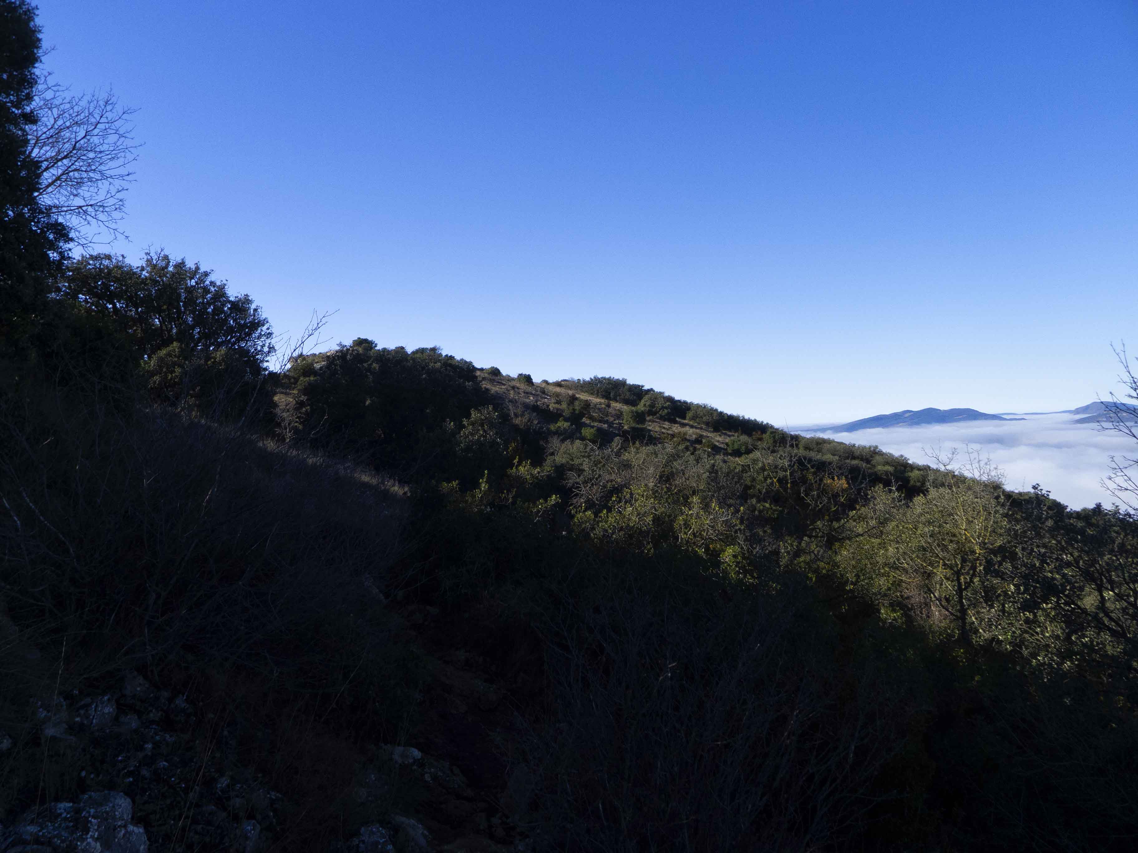 La frontera con la niebla queda a apenas unas decenas de metros por debajo, sobre la cota 800. Todo lo que está por debajo queda cubierto por el gris elemento.