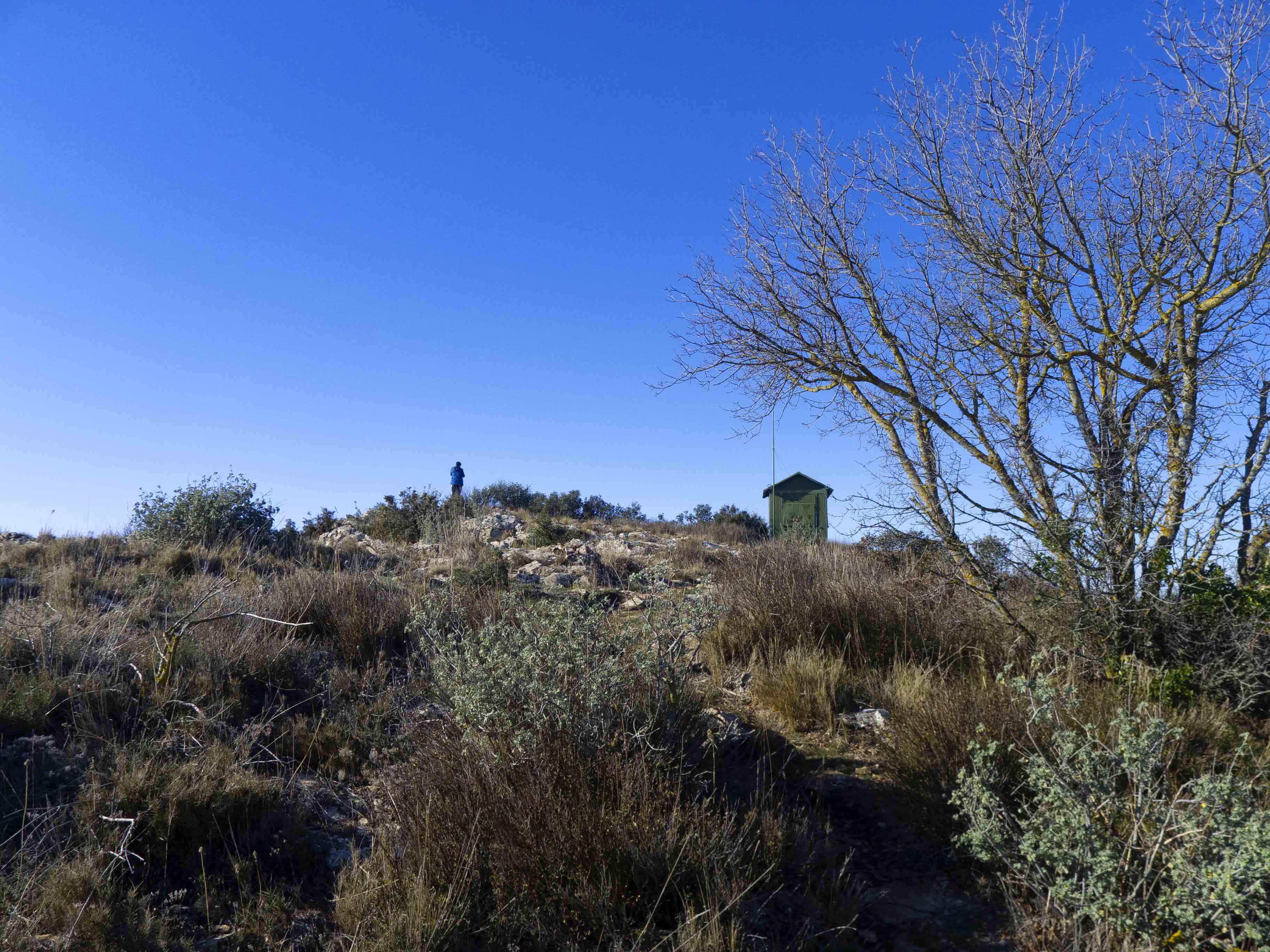 Siguiendo el filo del abismo no tardamos en llegar al vértice geodésico y la caseta que señalan la cumbre de la Pala Alta del Mont-Roig, cumbre de mayor altura de la sierra homónima.