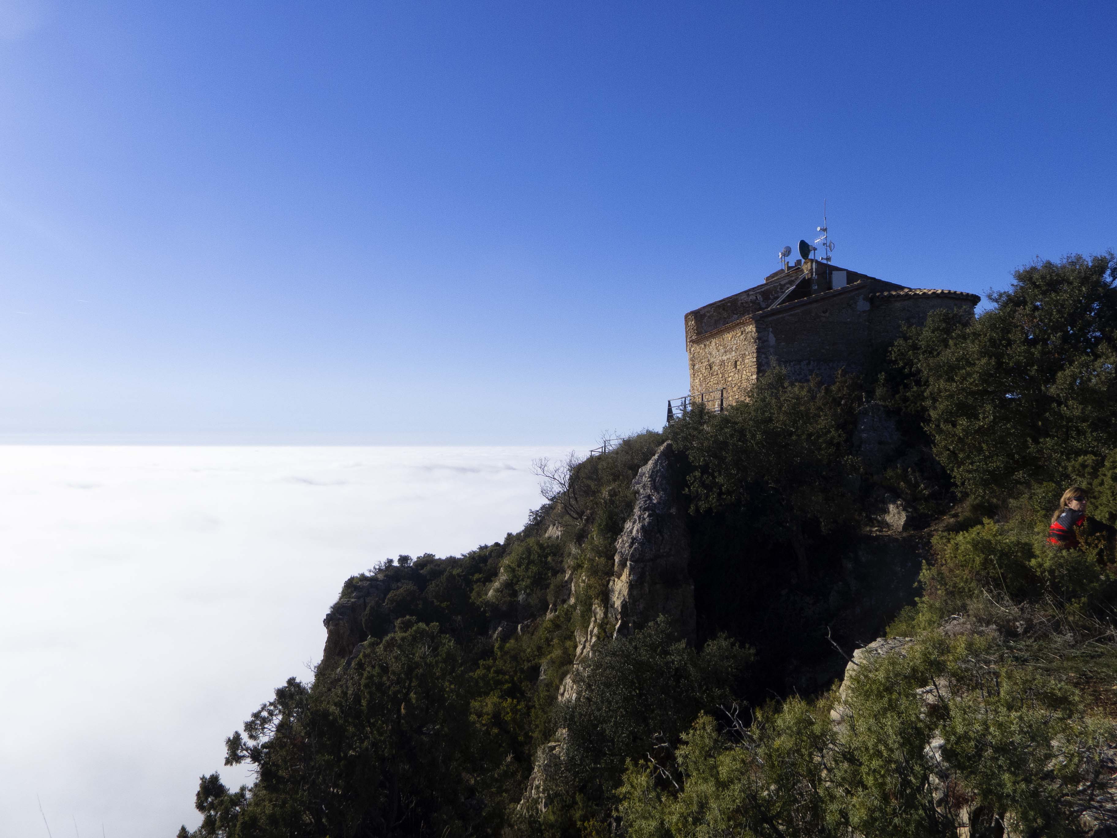Las paredes del Mont-Roig flotando por encima de la niebla invernal.