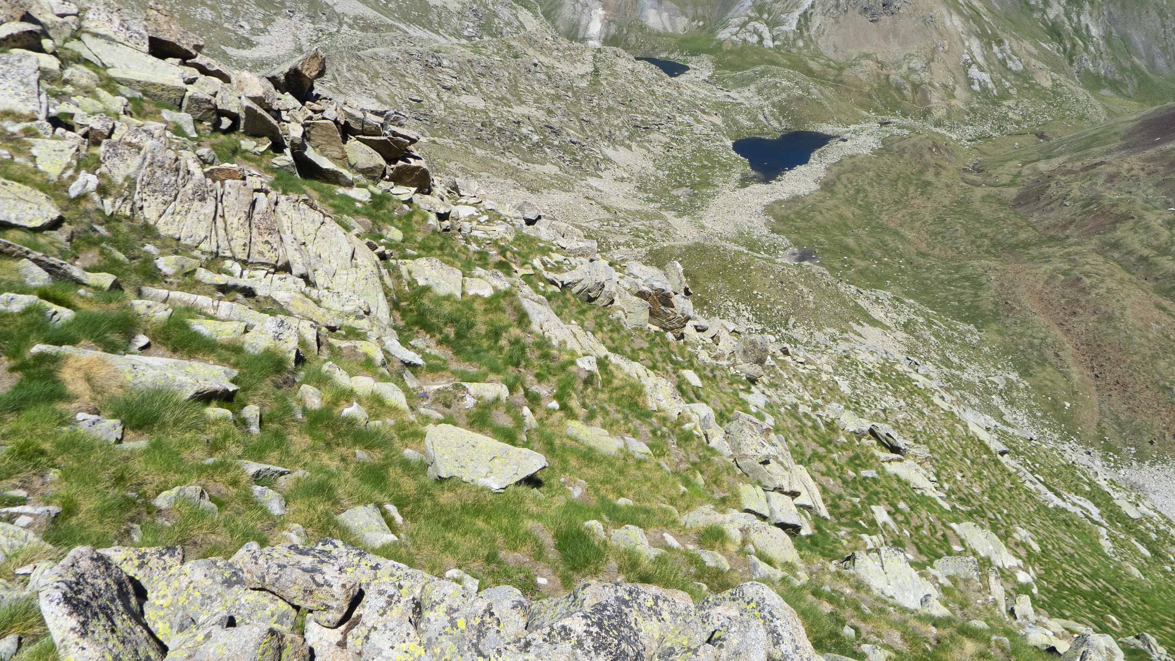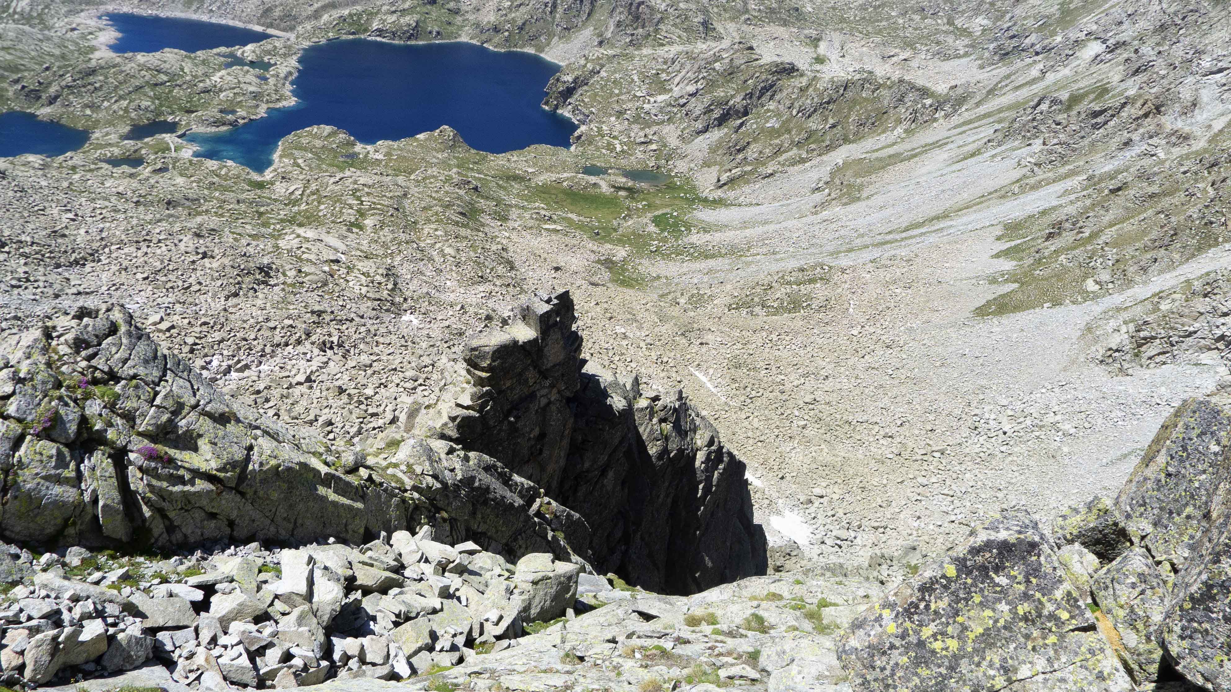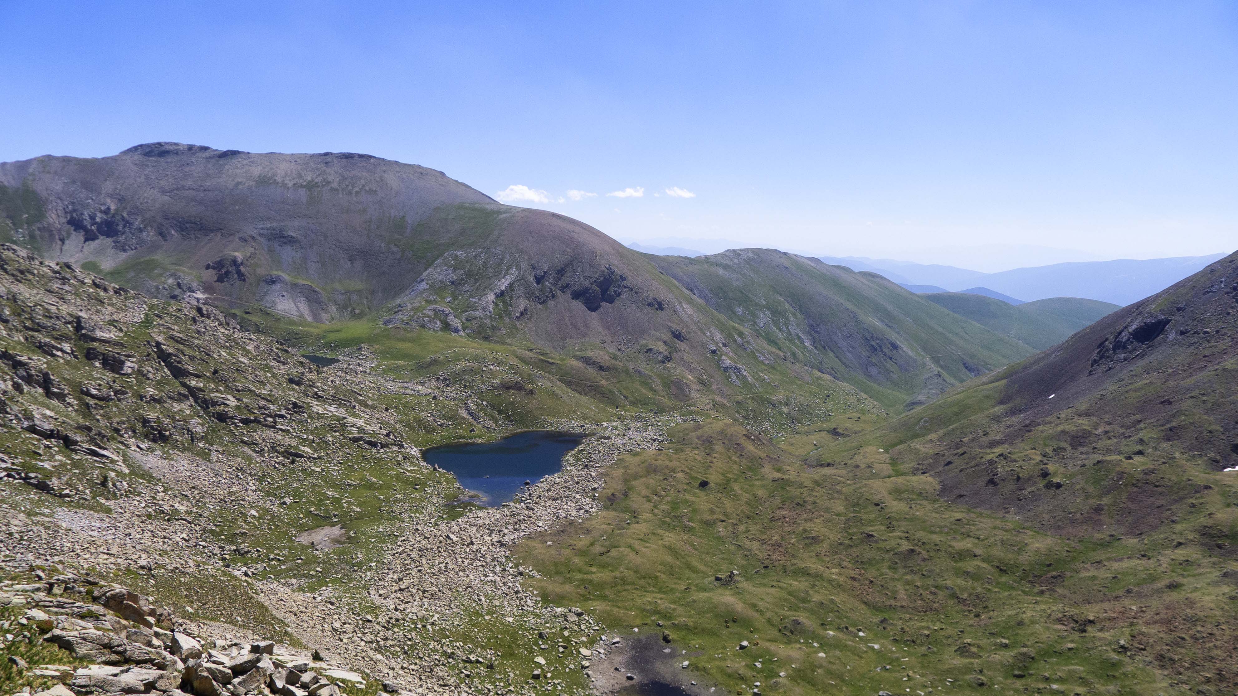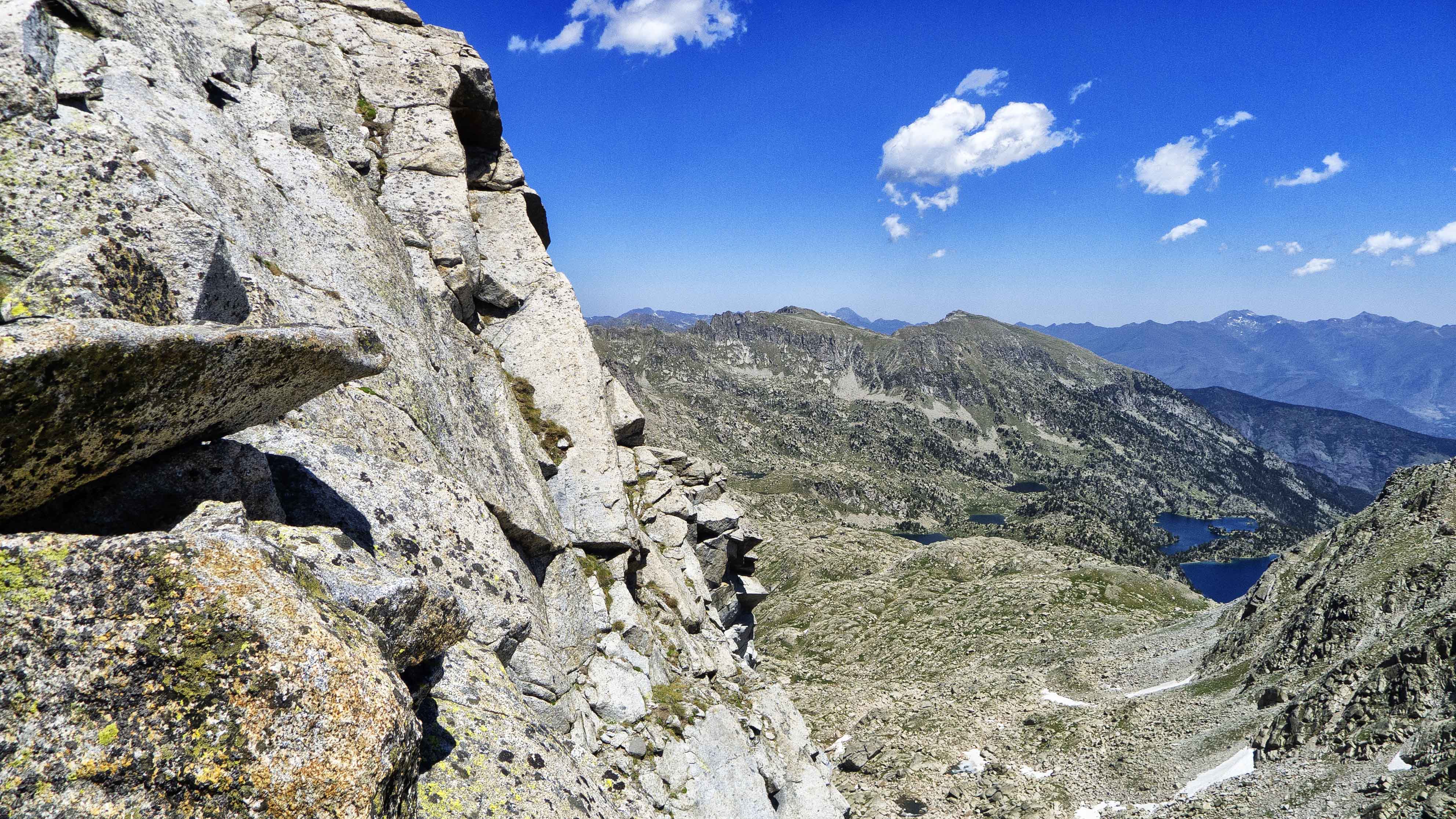 El panorama hacia los grandes lagos orientales de la Vall Fosca es mejor que desde la Mainera, puesto que quedan en una posición más centrada.