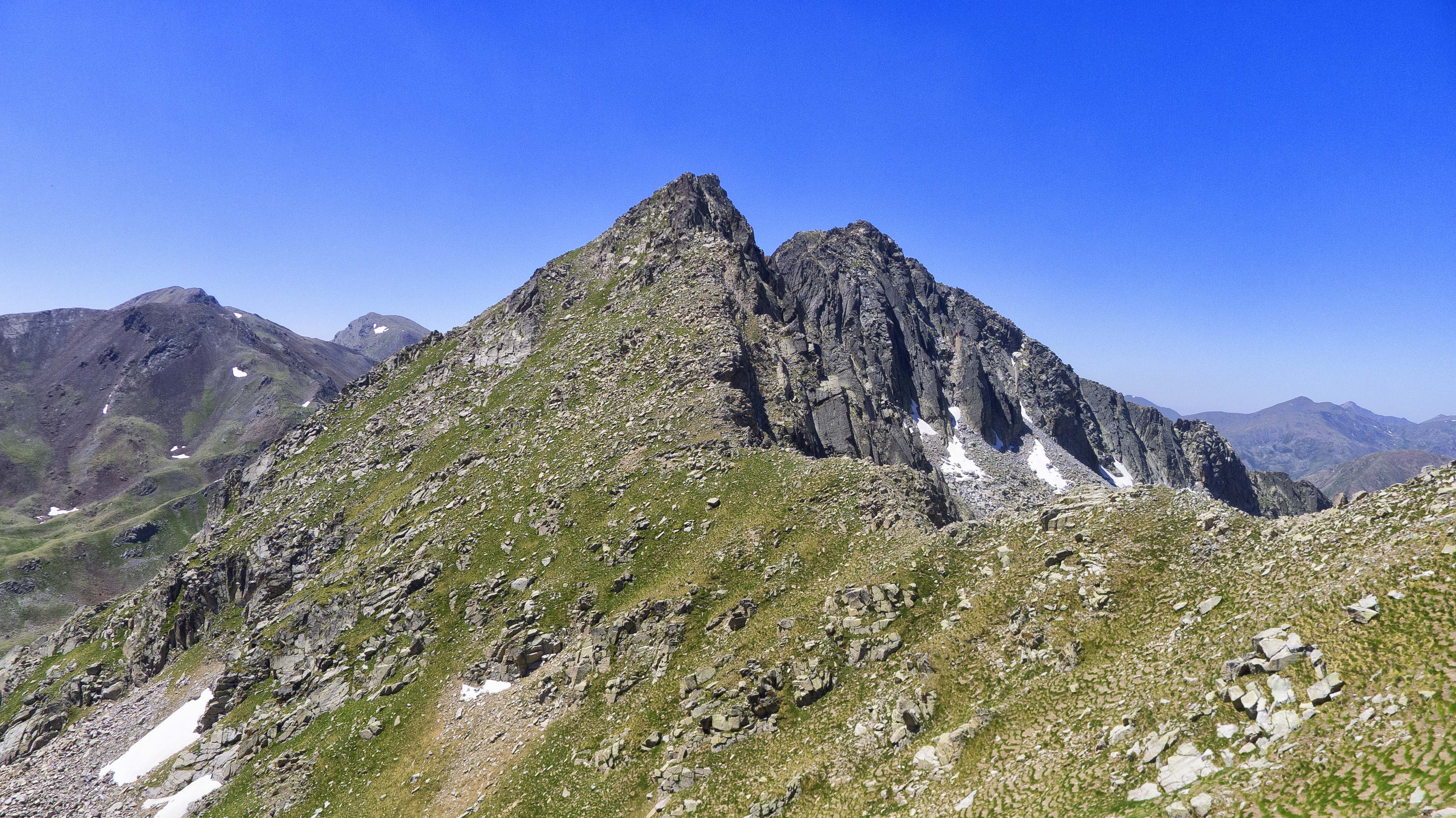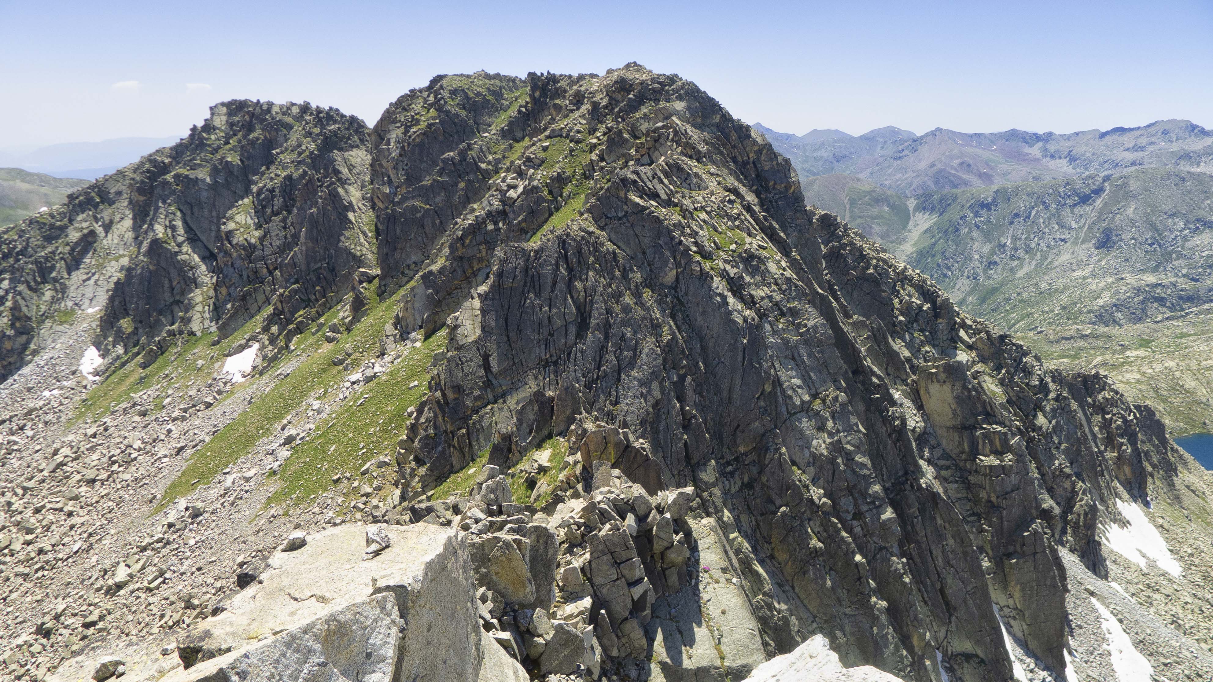 A la derecha el Pic de la Mainera, con las dos aristas utilizadas para ascender y descender a la izquierda de la cumbre.