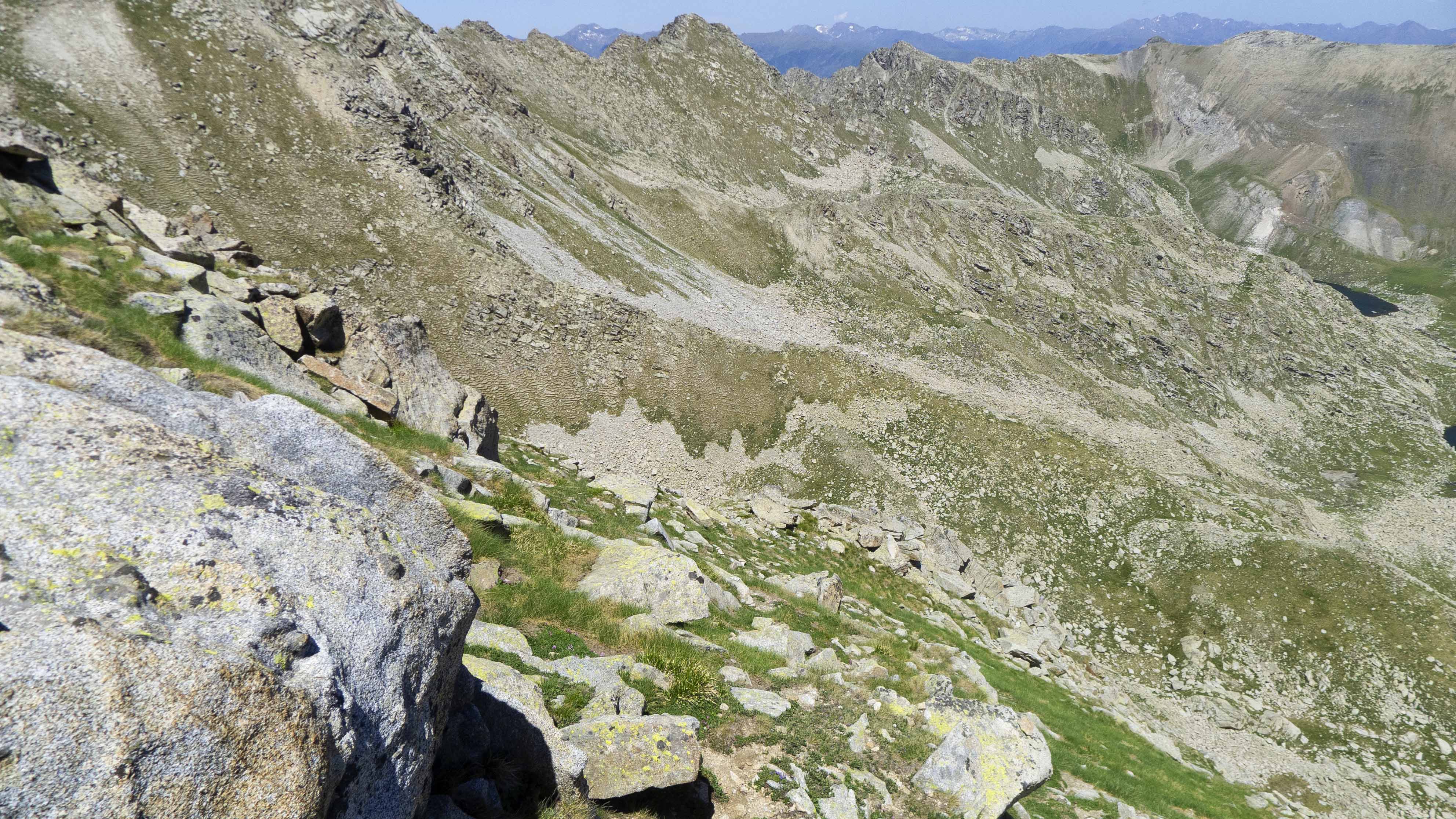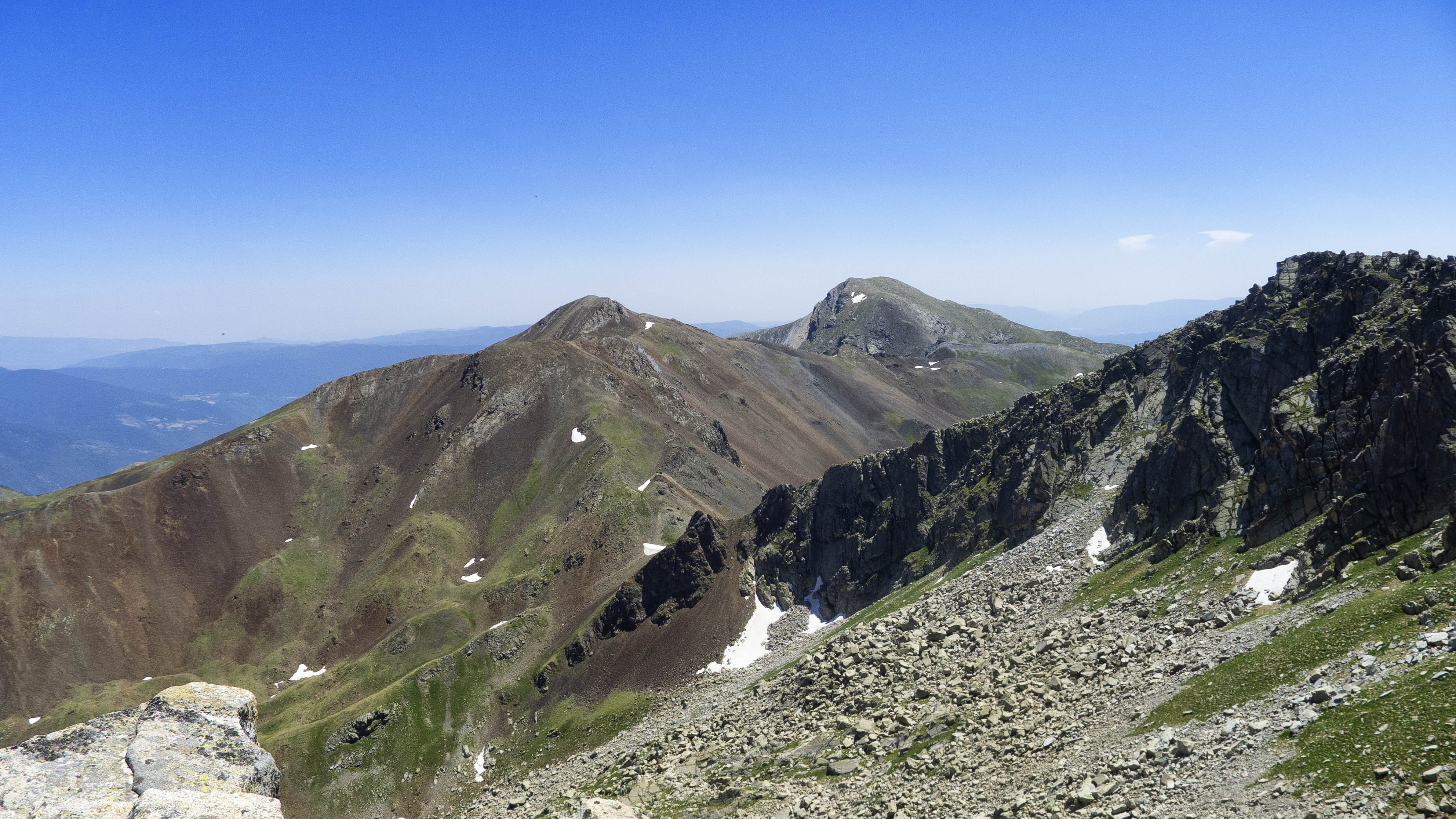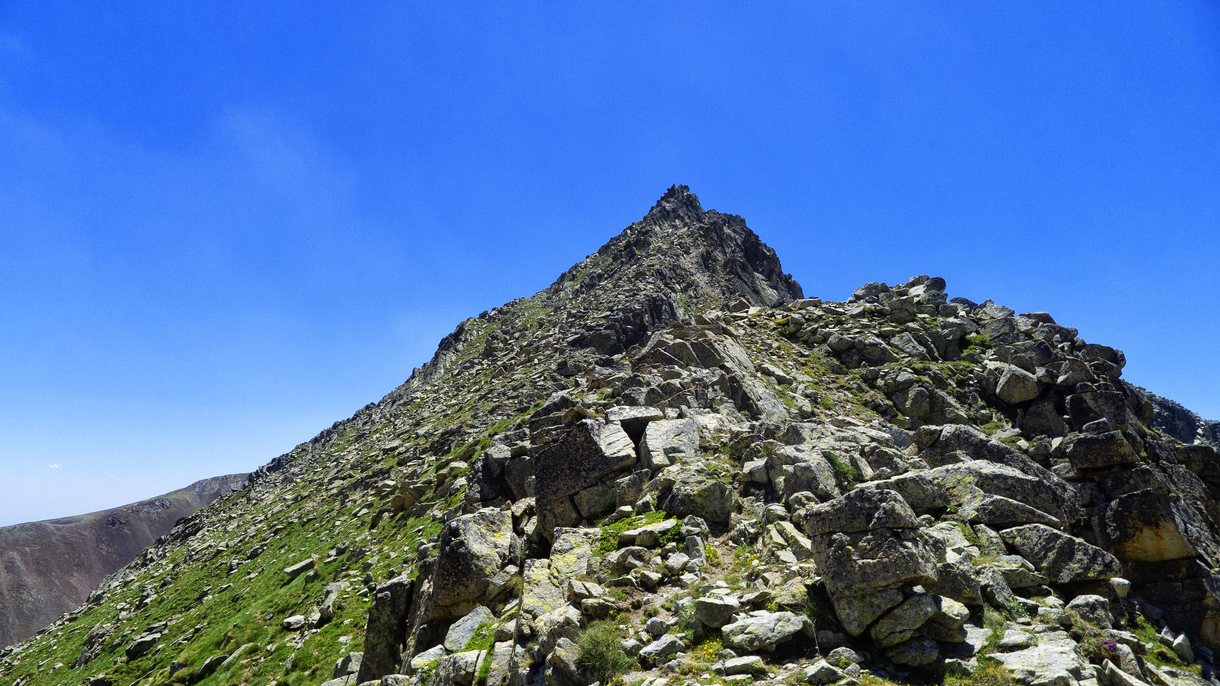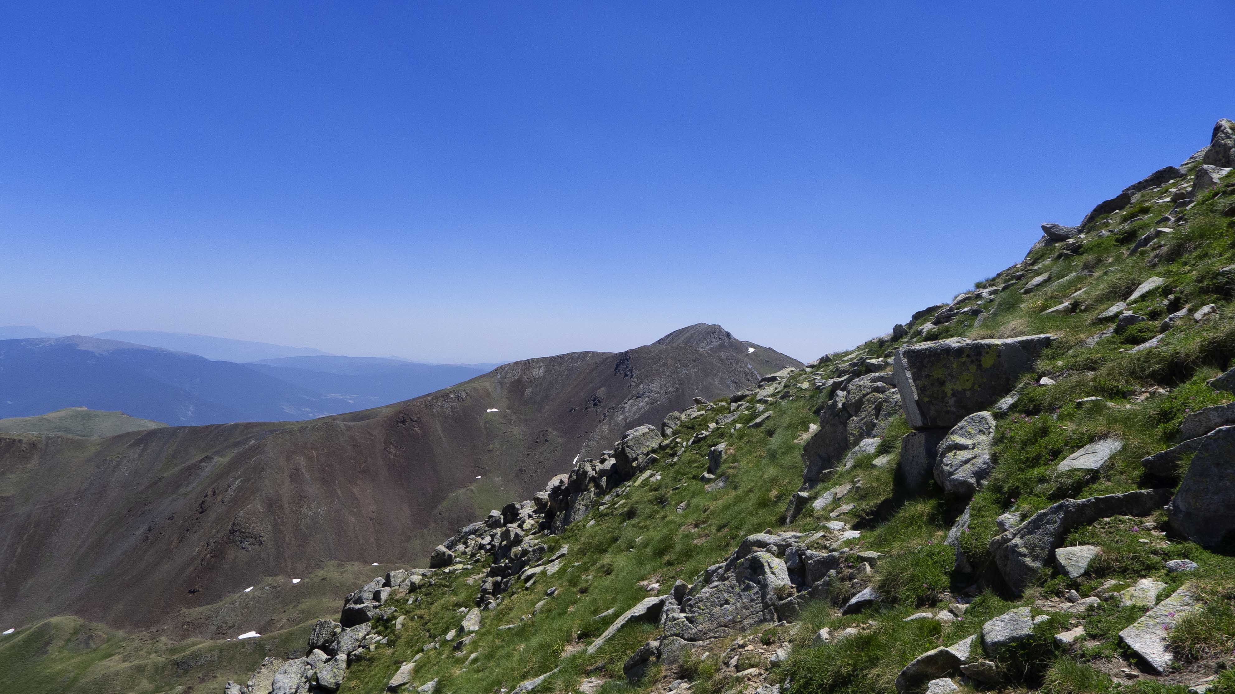 Cumbre del Pic del Clot de Mainera, una de las más desconocidas y salvajes del parque nacional. Al norte el panorama queda tapado en gran parte por el Pic de Mainera, de donde venimos.
