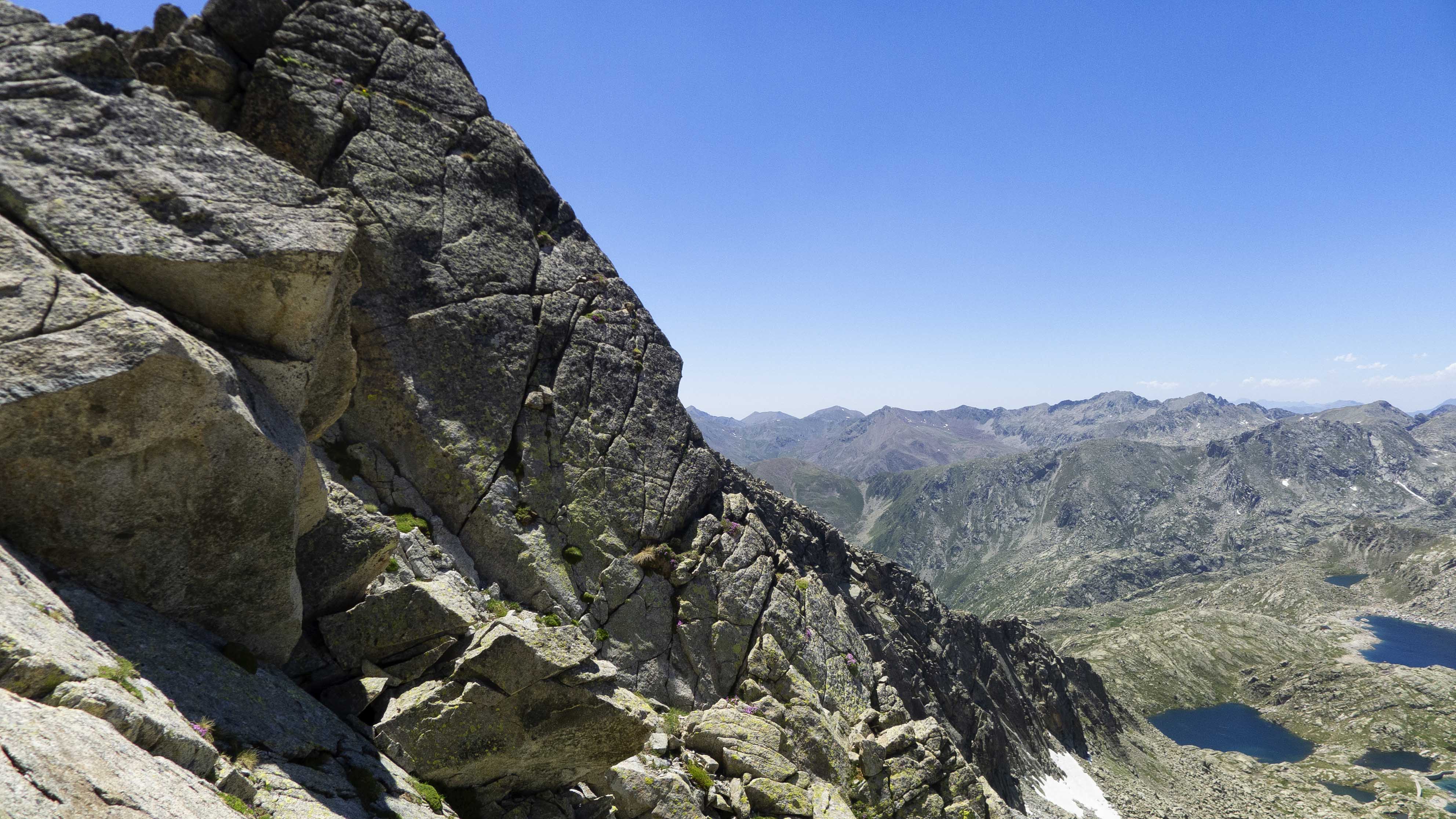 Una vez superado este paso, ya solo queda saltar entre bloques para llegar a la aérea cumbre del Clot de Mainera mientras observamos airosas torres desprenderse del cuerpo principal del Clot de Mainera con la Tartera de Mar a sus pies.