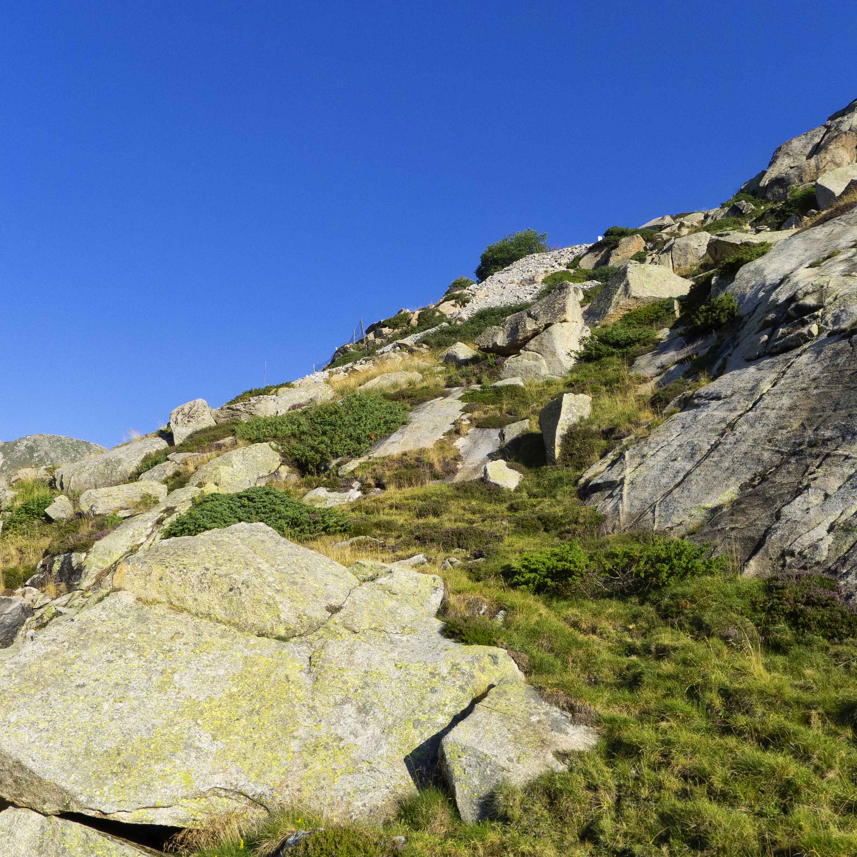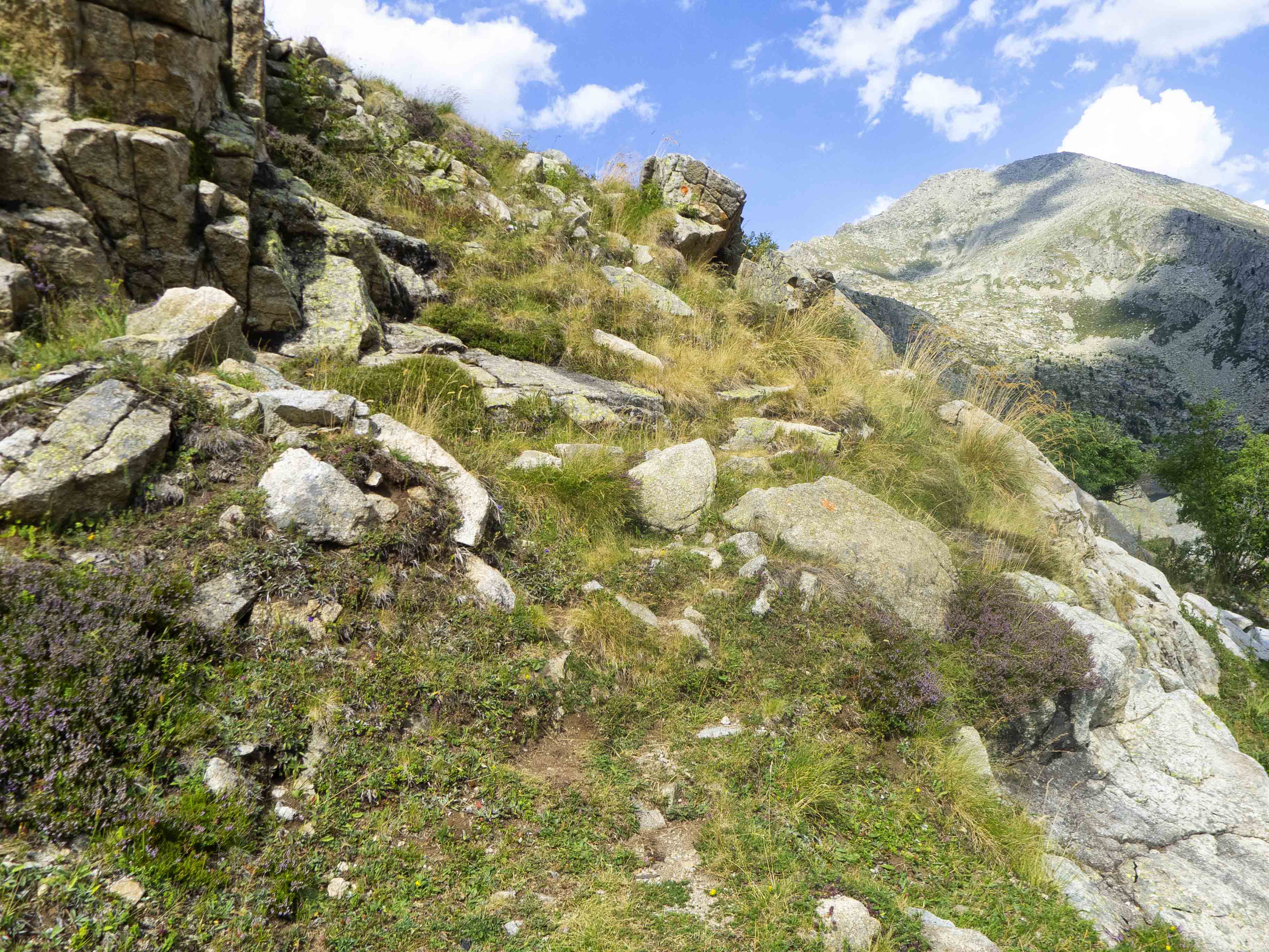 Desde el final del Carrilet, bajamos directamente por los prados hasta recuperar el camino que nos conducirá a la canal por la que llegaremos al Estany Gento.