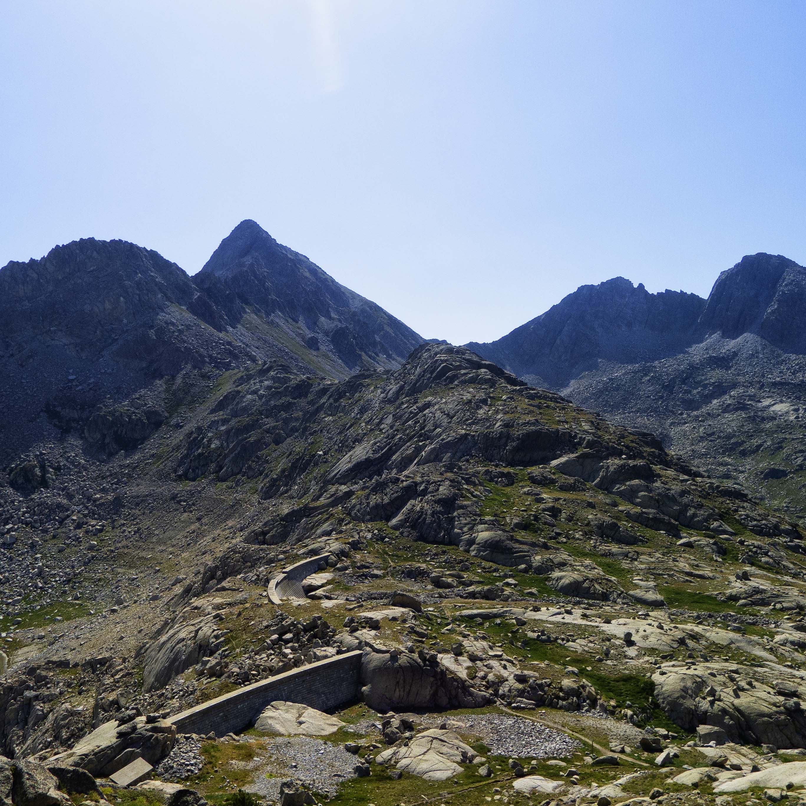 Tras una corta subida llegamos a la presa del Estany de Mar que debemos rodear a su vez por la izquierda.
